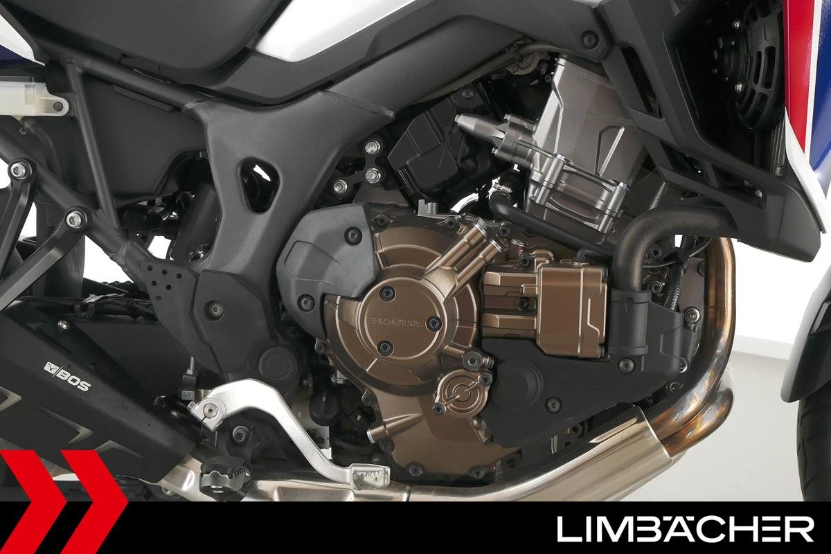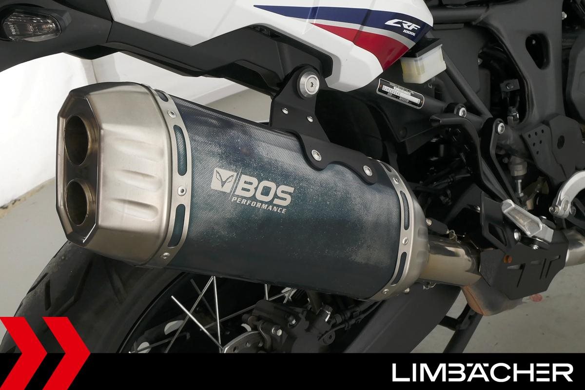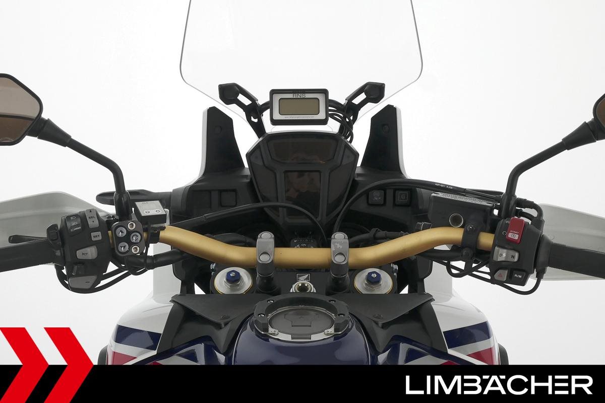 Eine Honda CRF 1000 L Africa Twin DCT in gepflegtem Zustand u.a. mit BOS-Endschalldämpfer sowie DCT-Automatik.