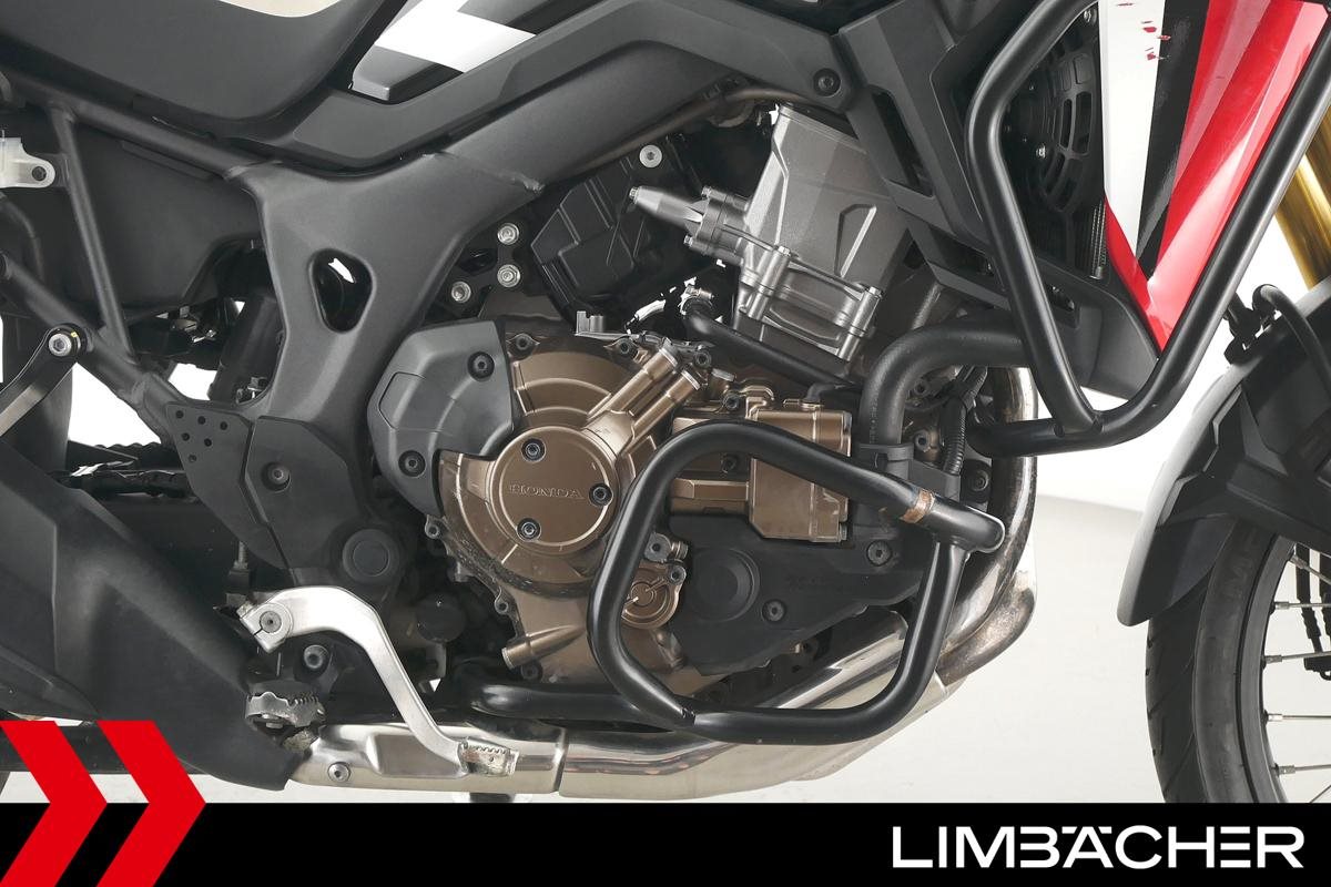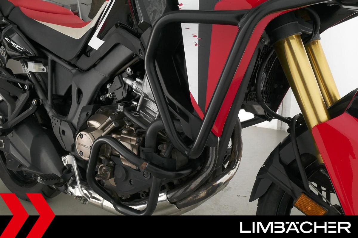 Eine Honda CRF 1000 L Africa Twin DCT aus zweiter Hand in gebrauchtem Zustand u.a. mit Sturzbügel 4teilig sowie Koffernhalter.