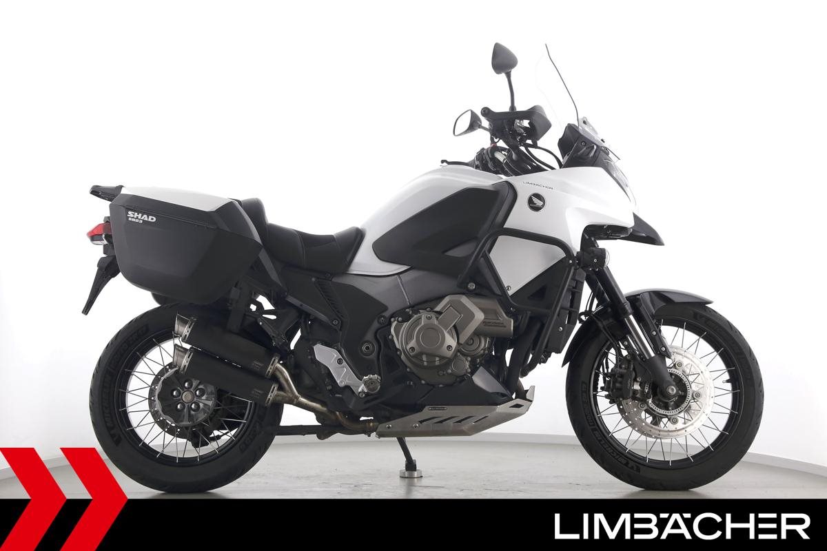 Eine scheckheftgepflegte Honda VFR 1200 X Crosstourer DCT in gepflegtem Zustand u.a. mit Bodis Doppel-Endschalldämpfer sowie Shad-Koffersystem.