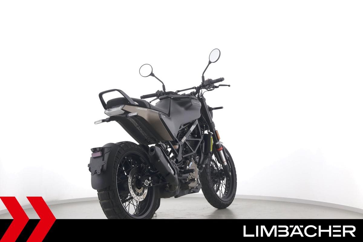 Eine scheckheftgepflegte Husqvarna Svartpilen 125 in gepflegtem Zustand u.a. mit Originalausstattung sowie LED-Blinkern und -Rücklicht.