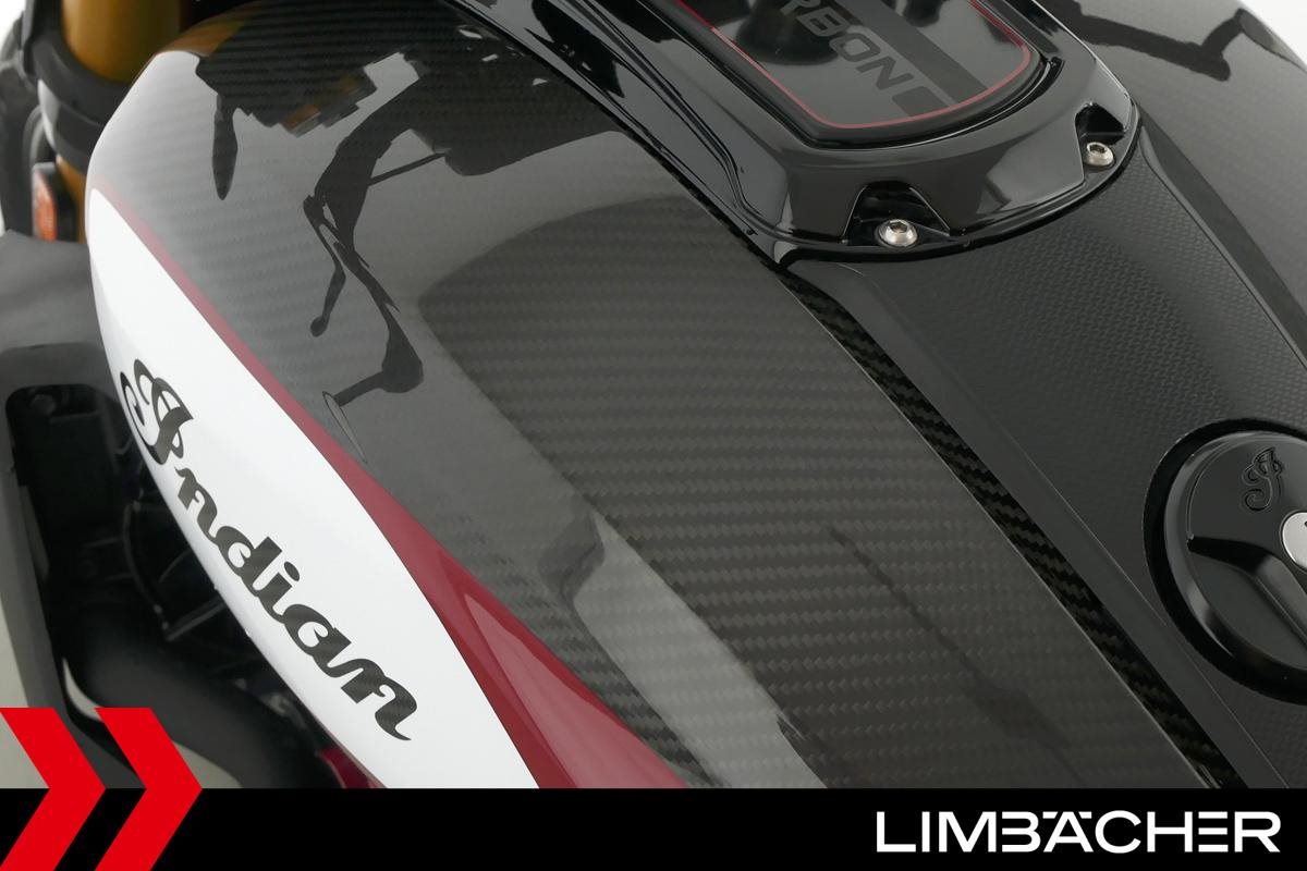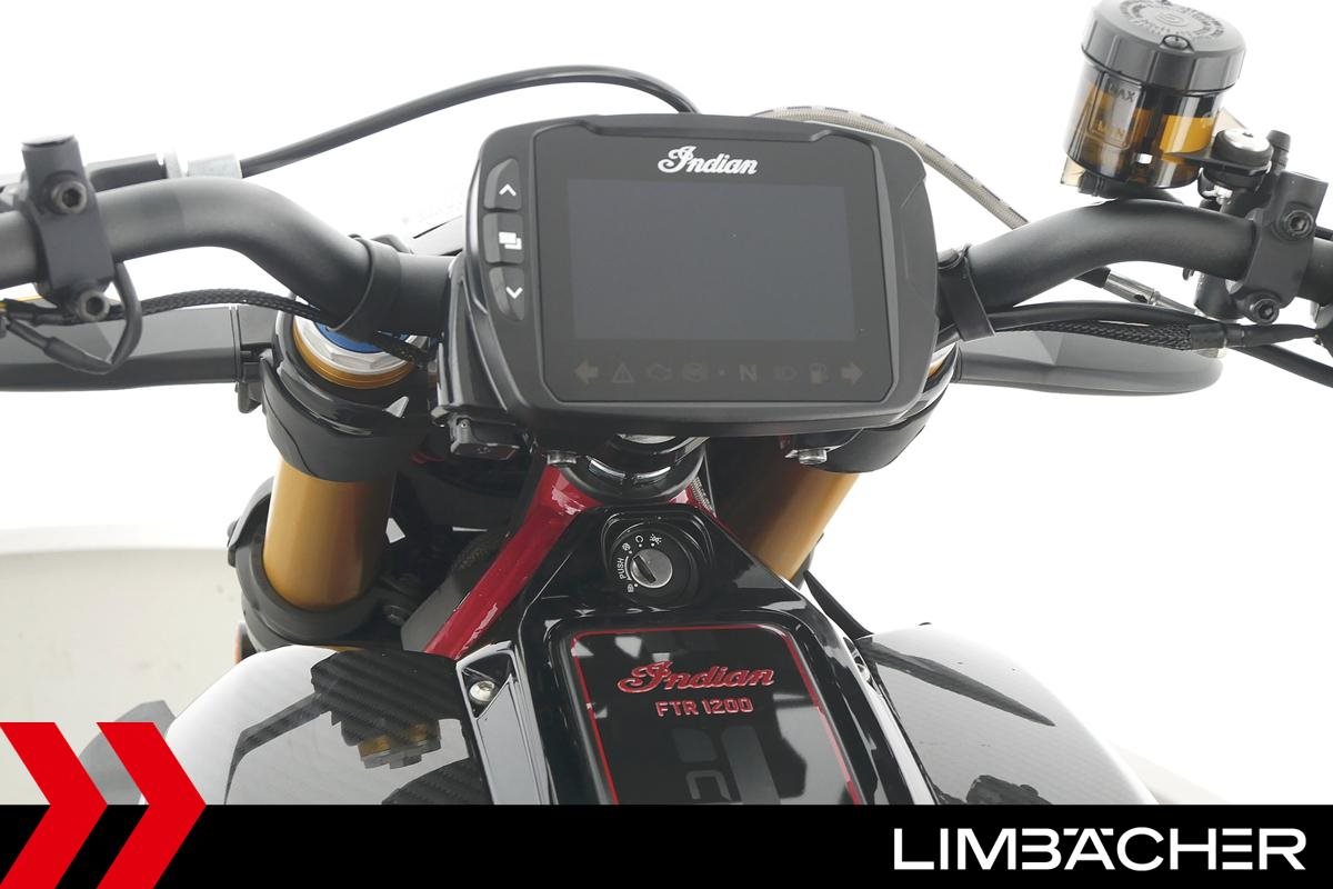 Eine scheckheftgepflegte Indian FTR 1200 S Carbon aus zweiter Hand in sehr gepflegtem Zustand u.a. mit Akrapovic-Endschalldämpfer sowie Carbon-Teilen.