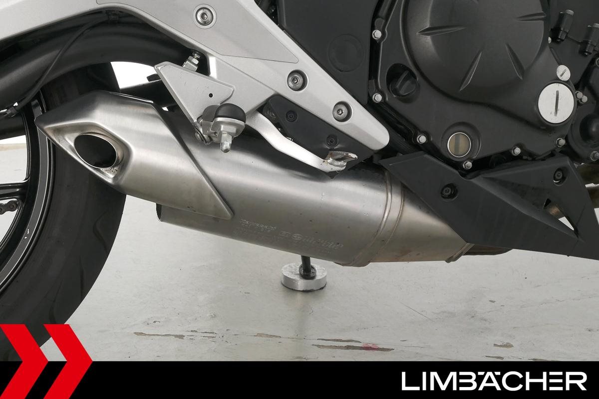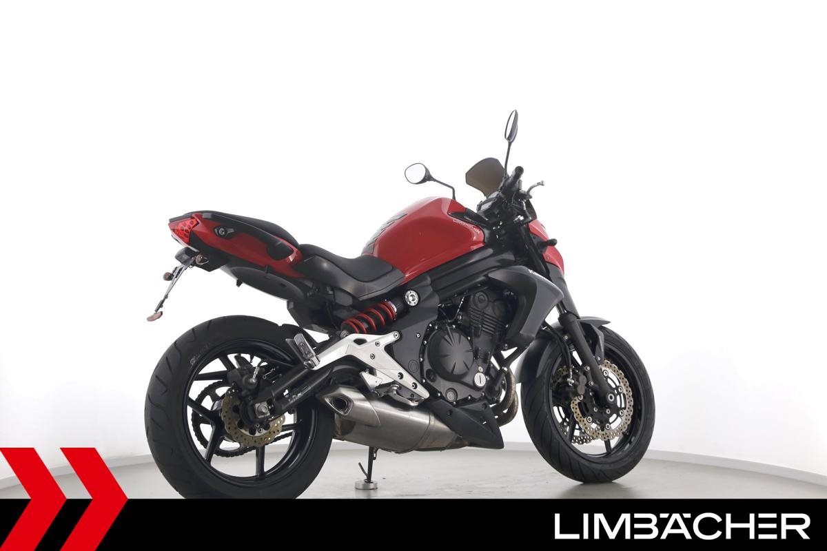 Eine scheckheftgepflegte Kawasaki ER-6n in gepflegtem Zustand u.a. mit kurzem Kennzeichenhalter sowie Ganganzeige.