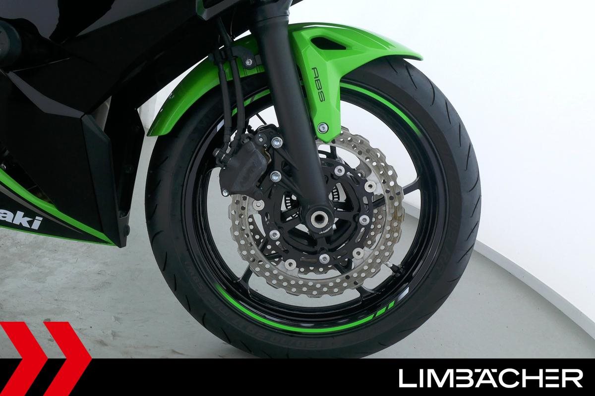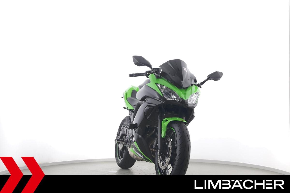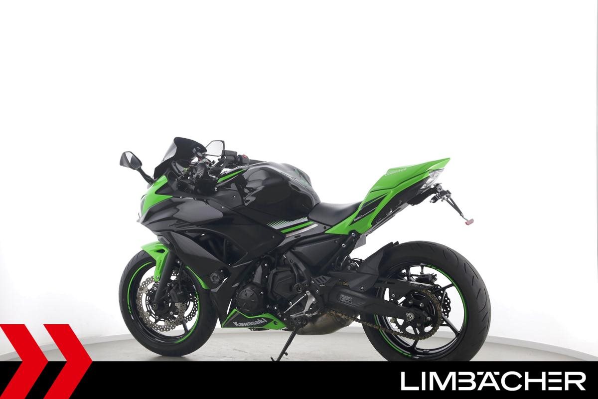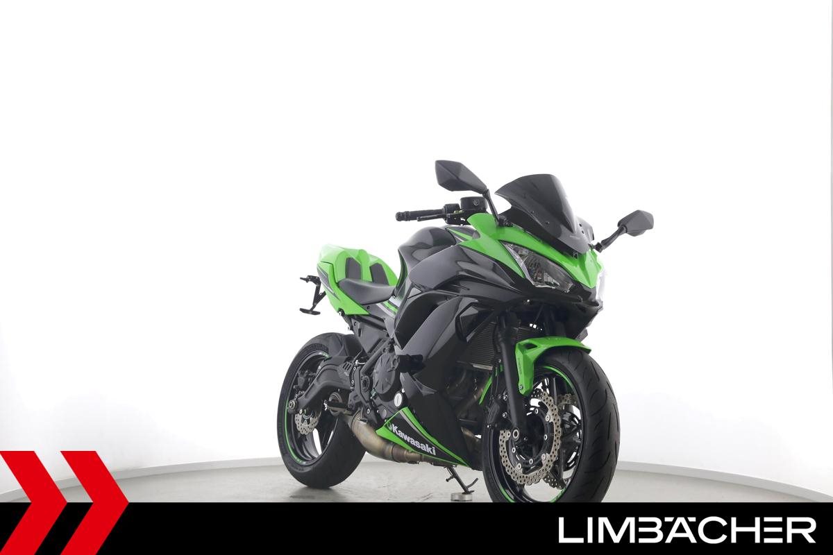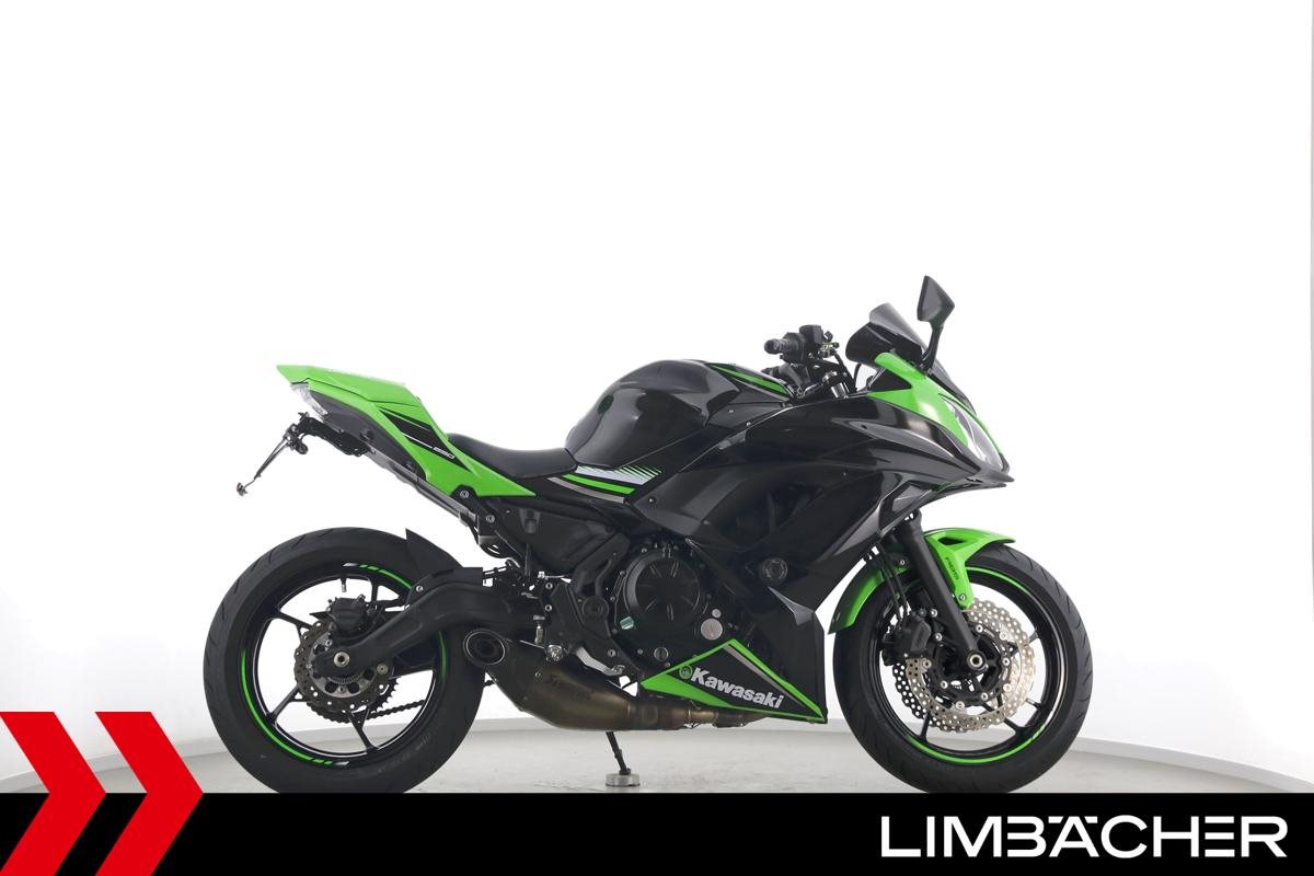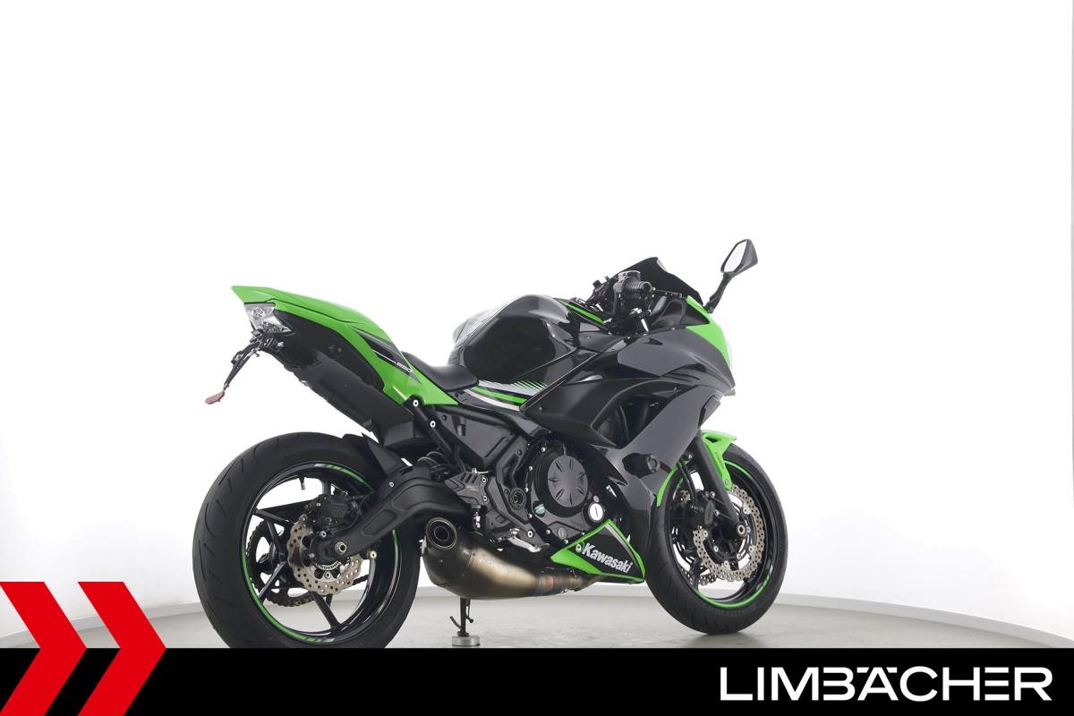Eine scheckheftgepflegte Kawasaki Ninja 650 in gepflegtem Zustand u.a. mit Akrapovic-Endschalldämpfer sowie kurzem Kennzeichenhalter.