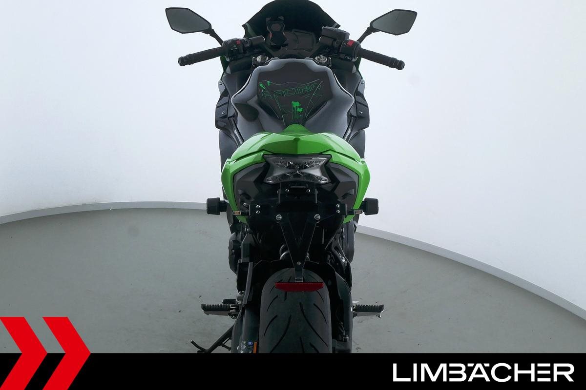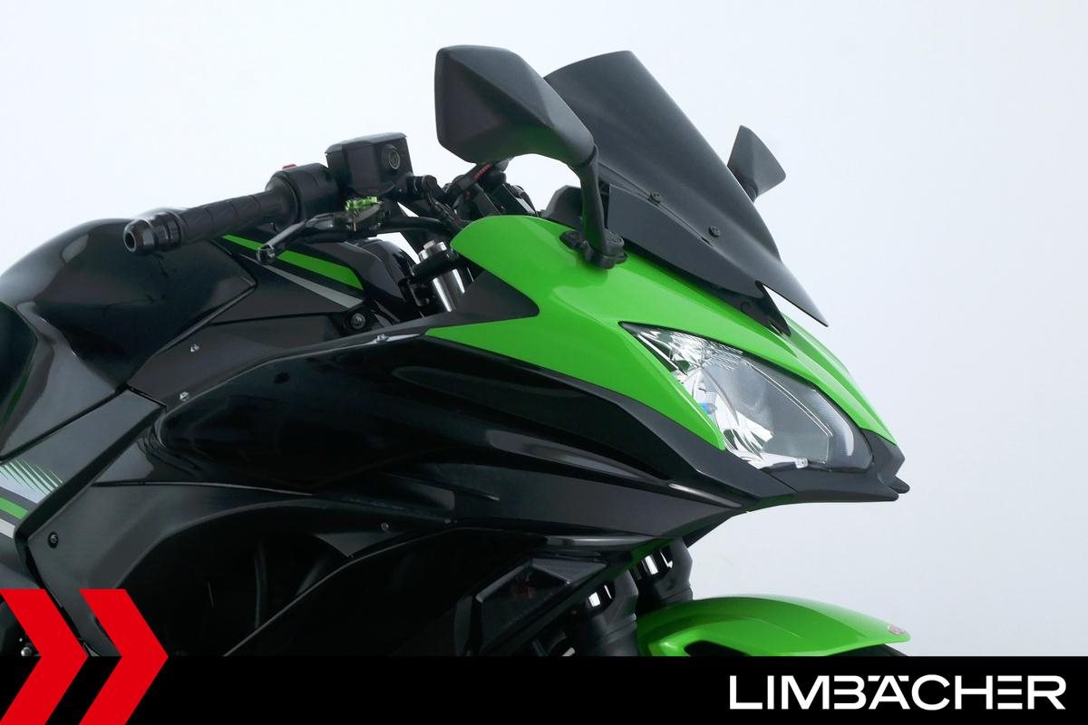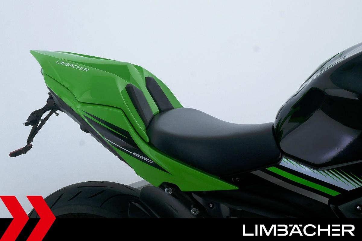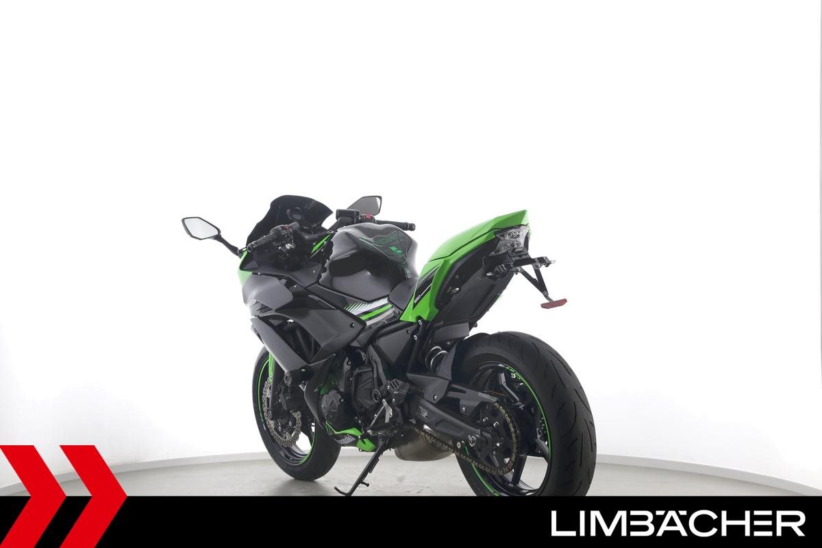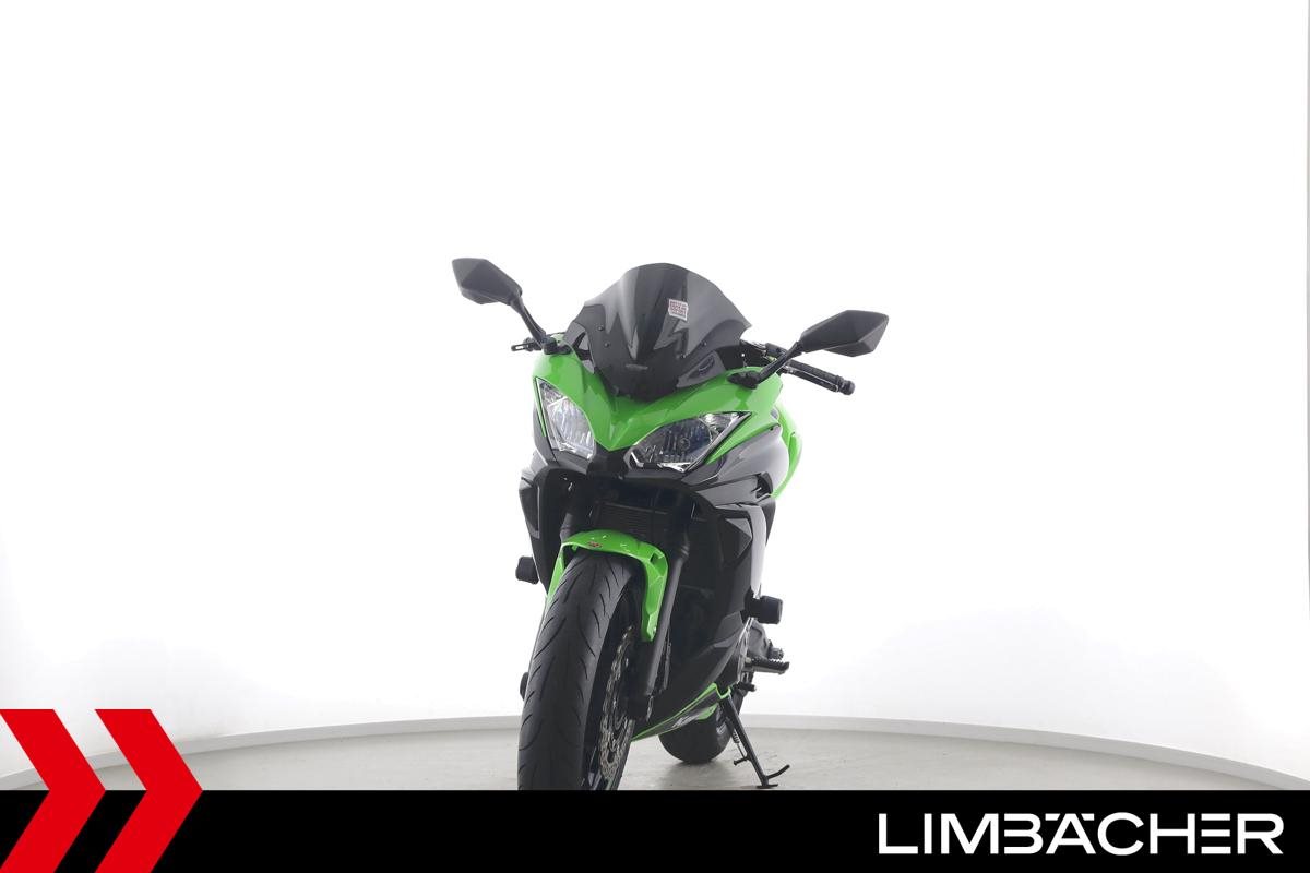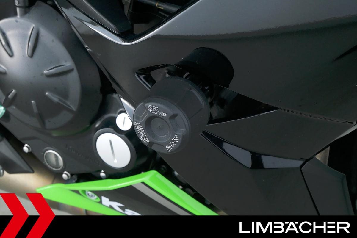 Eine scheckheftgepflegte Kawasaki Ninja 650 in gepflegtem Zustand u.a. mit Akrapovic-Endschalldämpfer sowie kurzem Kennzeichenhalter.
