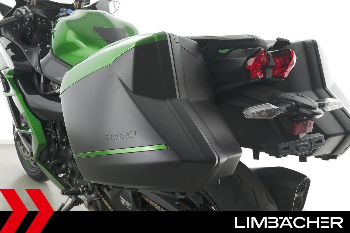Eine Kawasaki Ninja H2 SX SE in gepflegtem Zustand u.a. mit Akrapovic-Endschalldämpfer sowie Kawasaki-Koffersystem gleichschliessend.