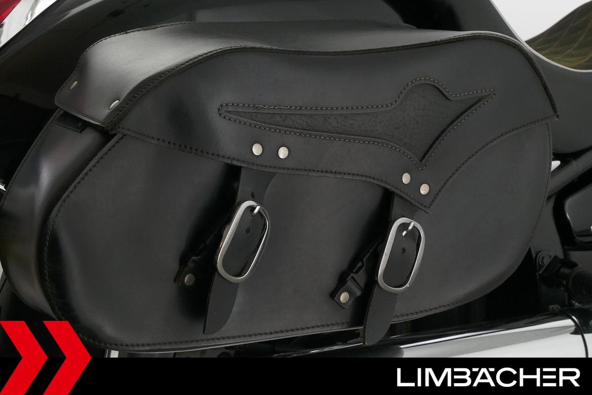 Eine Kawasaki VN 900 Custom in sehr gepflegtem Zustand u.a. mit Leder-Satteltaschen und Sondersitzbank.