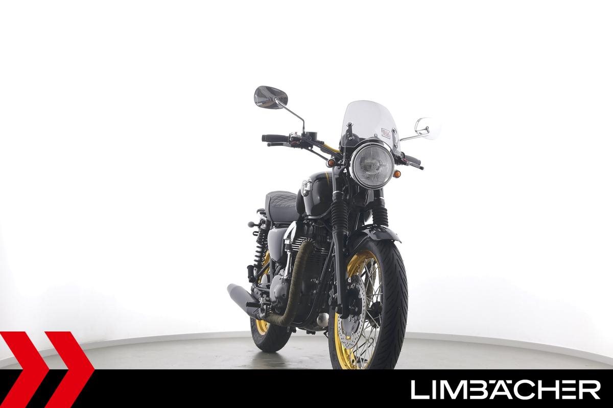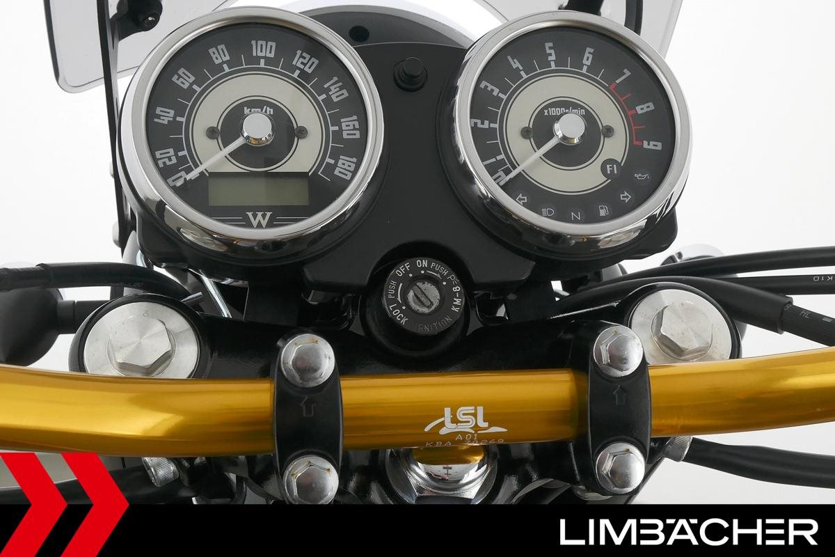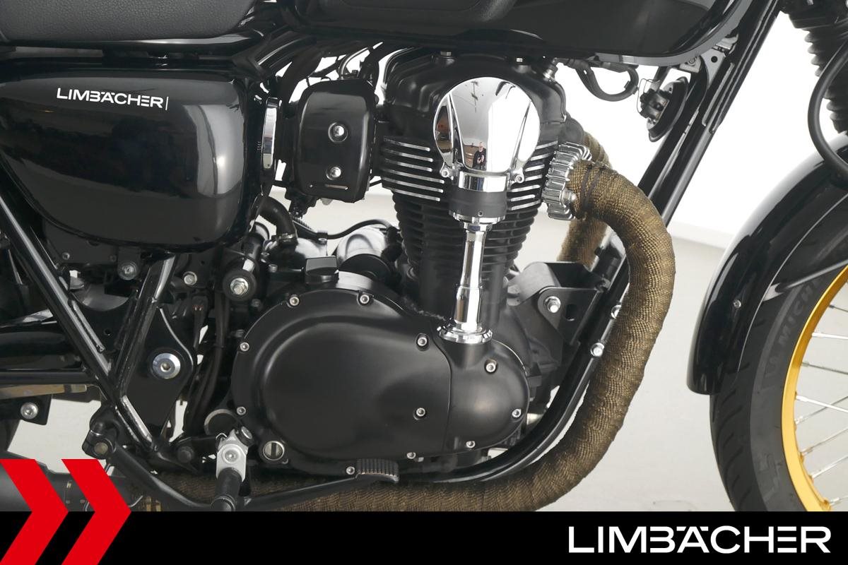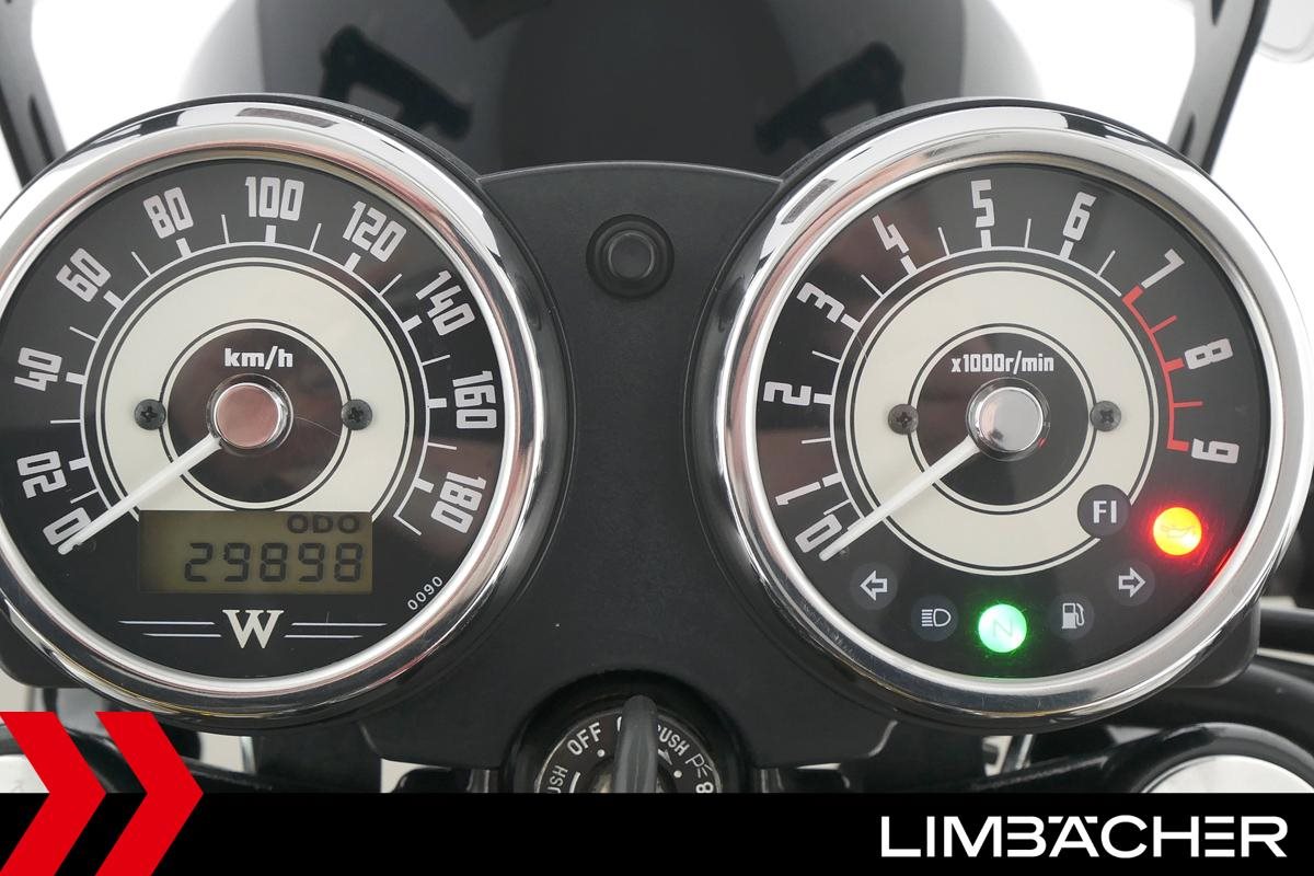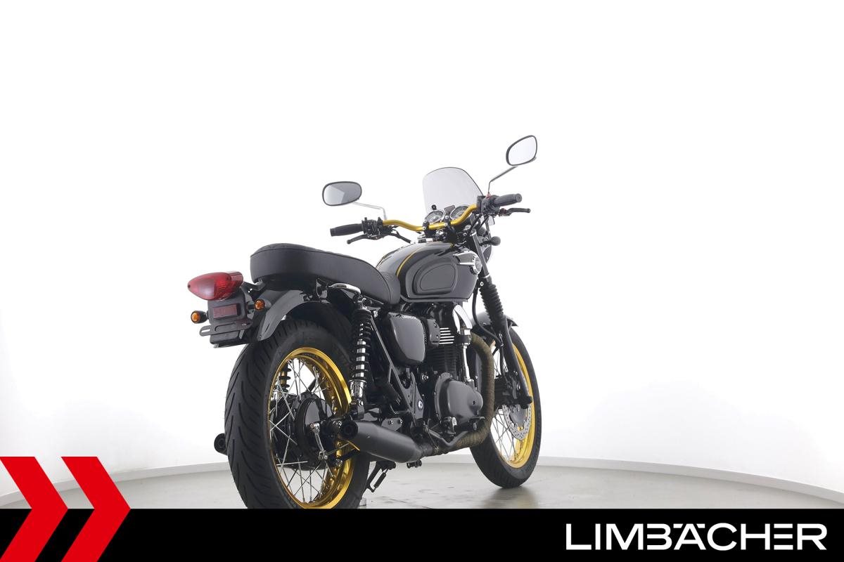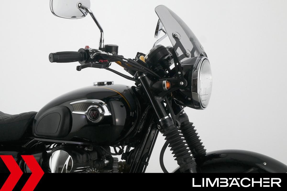 Eine Kawasaki W 800 Special Edition in gepflegtem Zustand u.a. mit gesteppter Komfort-Sitzbank sowie LSL-Brems- und -Kupplungshebel.