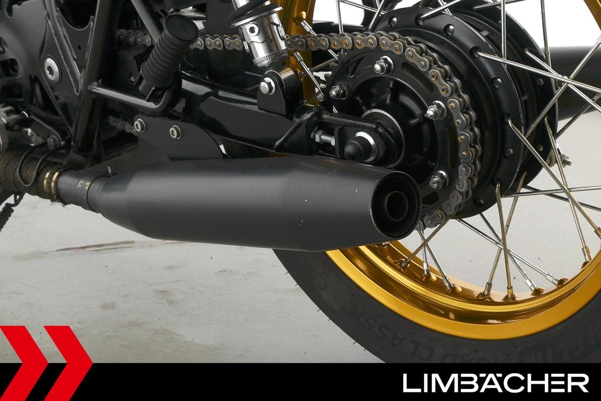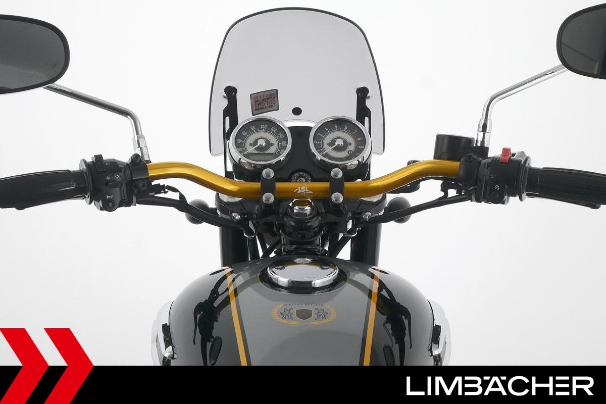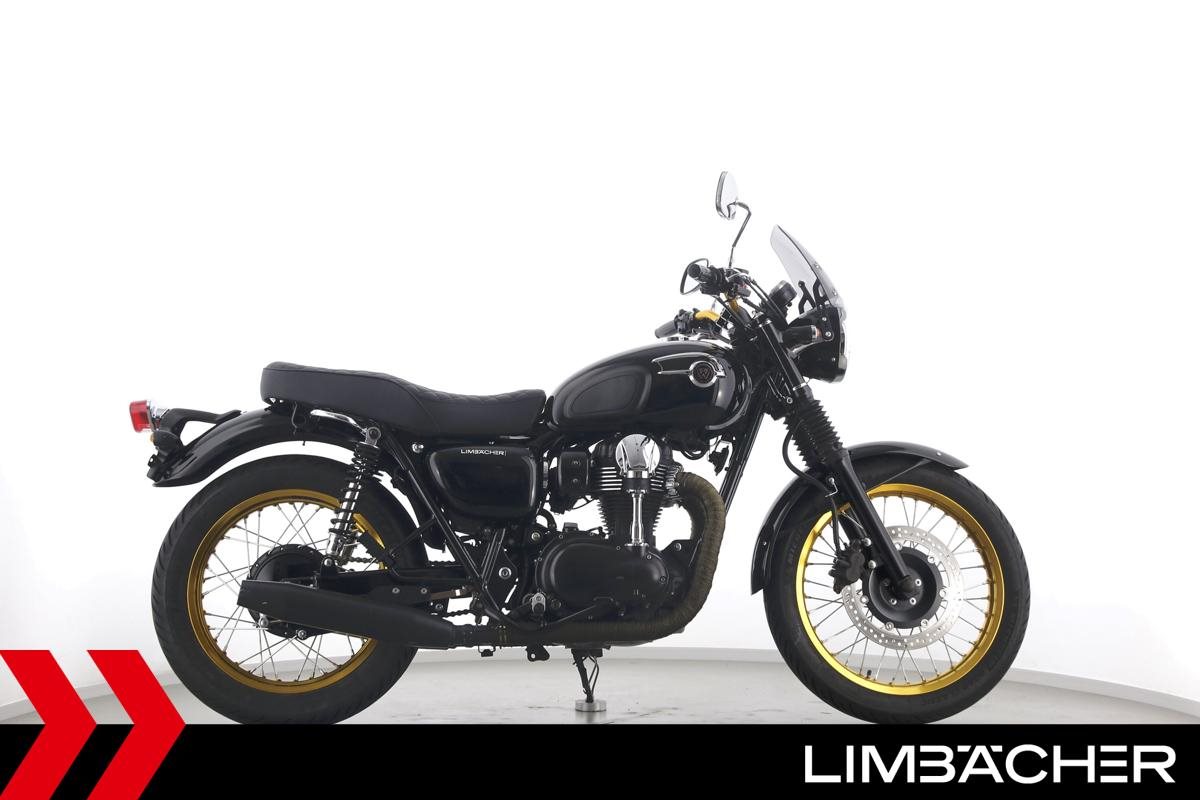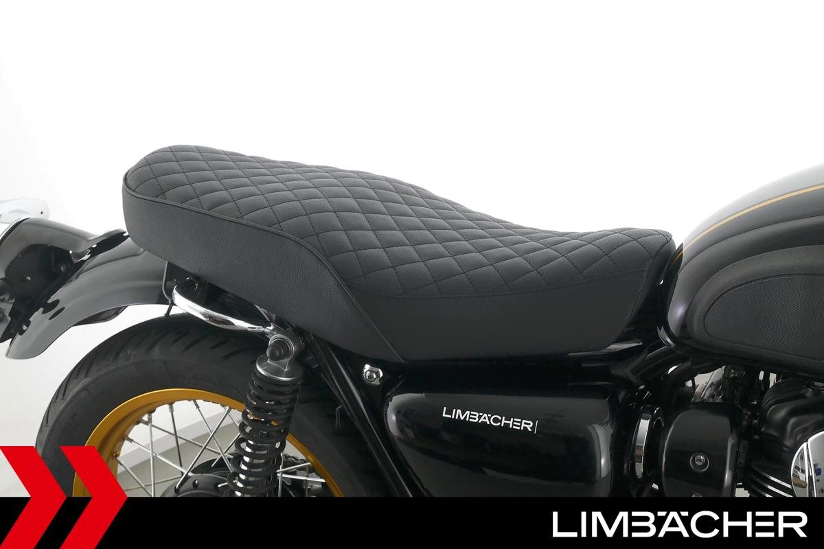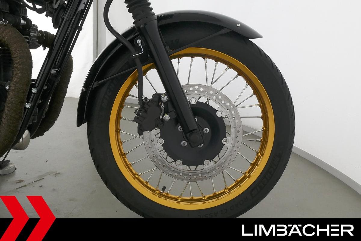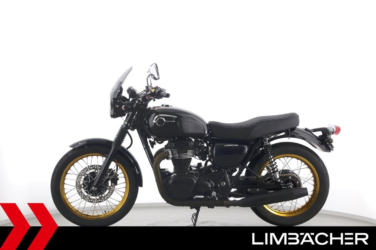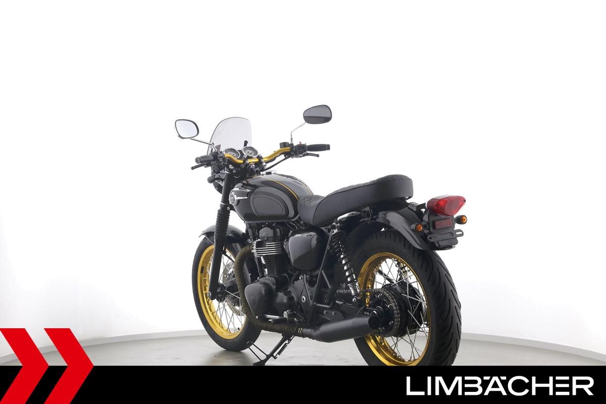 Eine Kawasaki W 800 Special Edition in gepflegtem Zustand u.a. mit gesteppter Komfort-Sitzbank sowie LSL-Brems- und -Kupplungshebel.