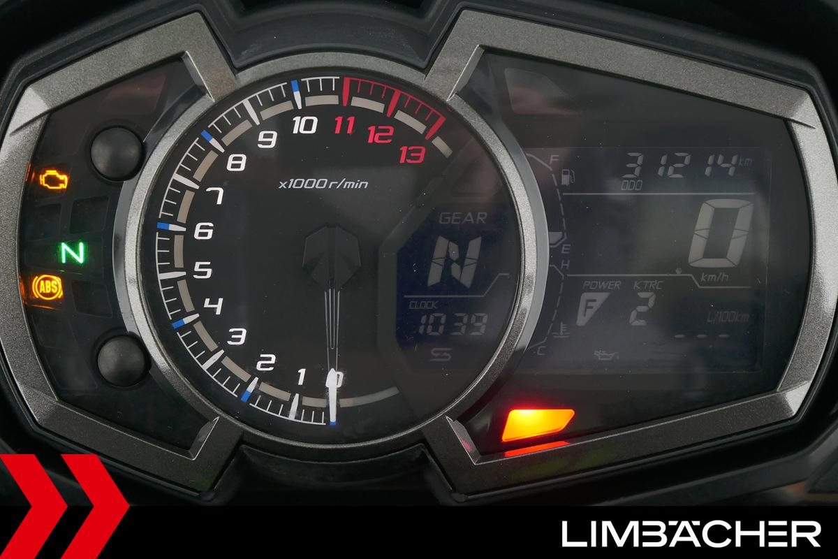 Eine Kawasaki Z 1000 SX in gebrauchtem Zustand u.a. mit LeoVince-Endschalldämpfer sowie kurzem Kennzeichenhalter.