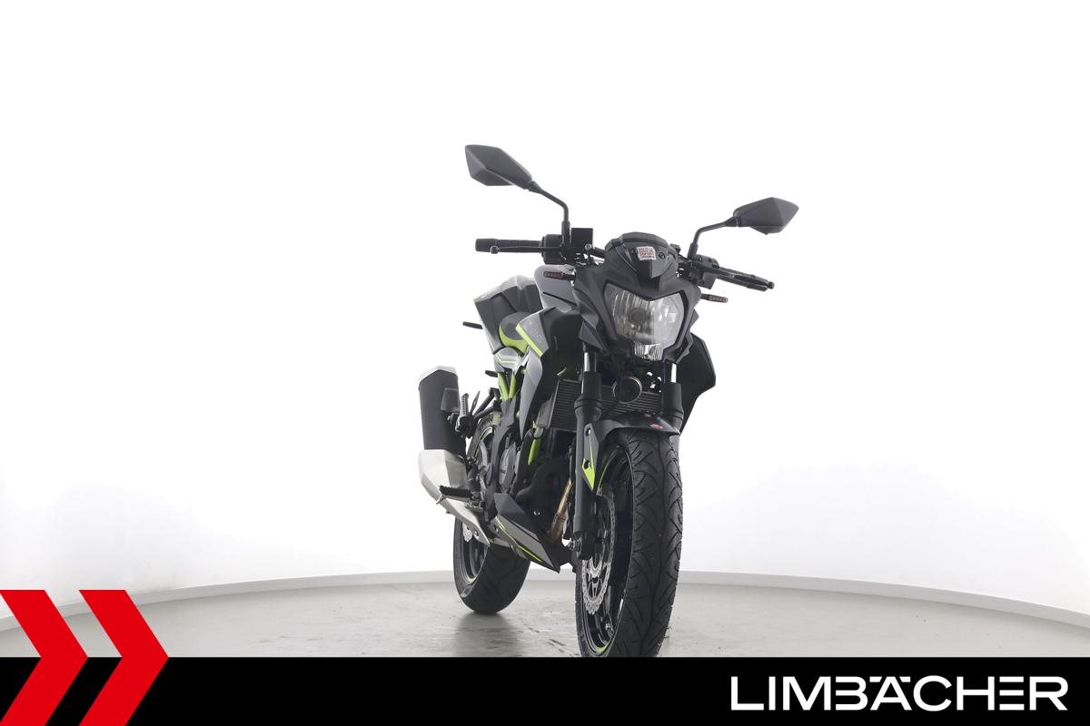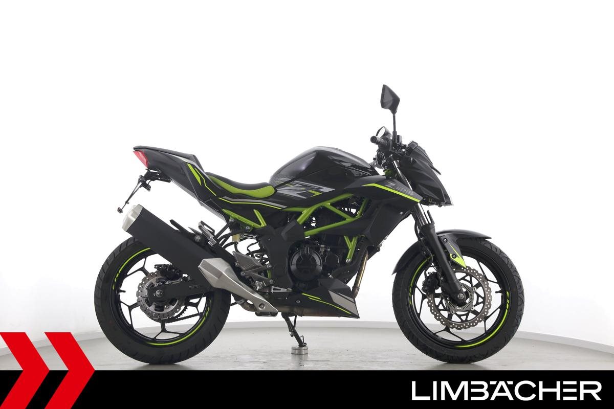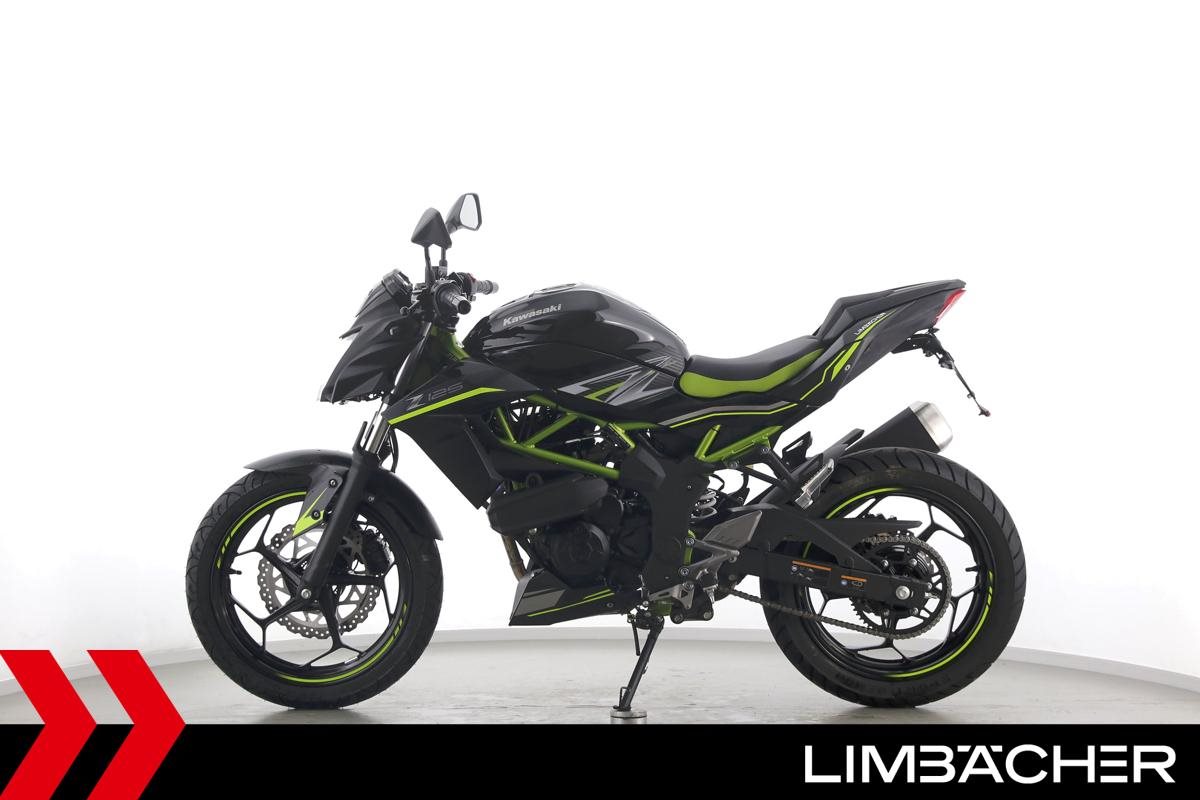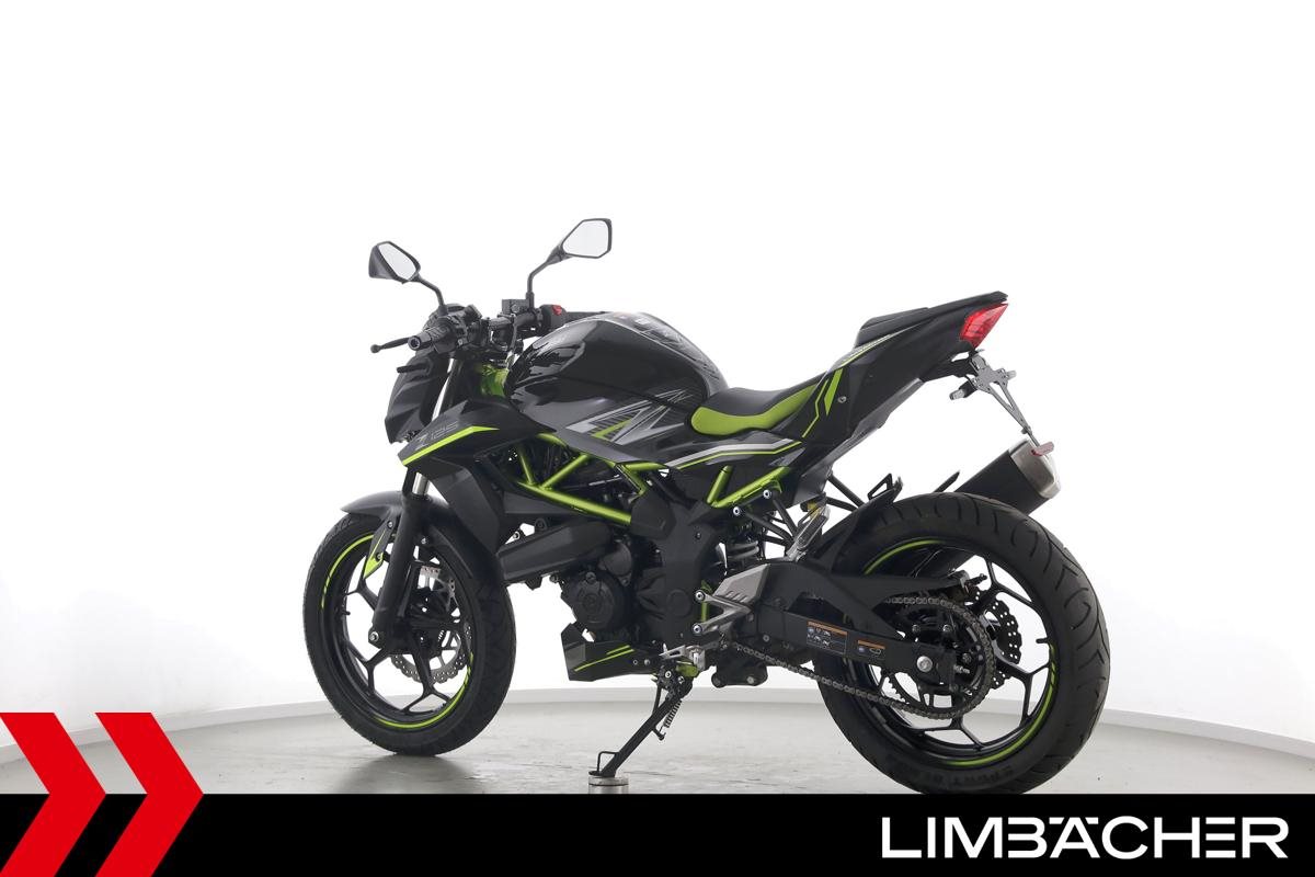 Eine scheckheftgepflegte Kawasaki Z 125 in gepflegtem Zustand u.a. mit kurzem Kennzeichenhalter sowie Custom-Ganganzeige.
