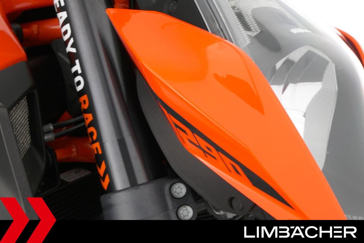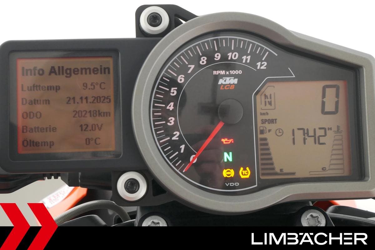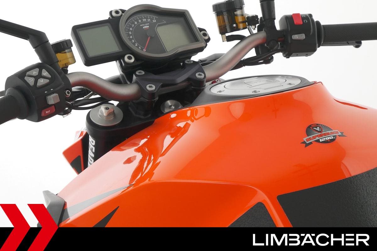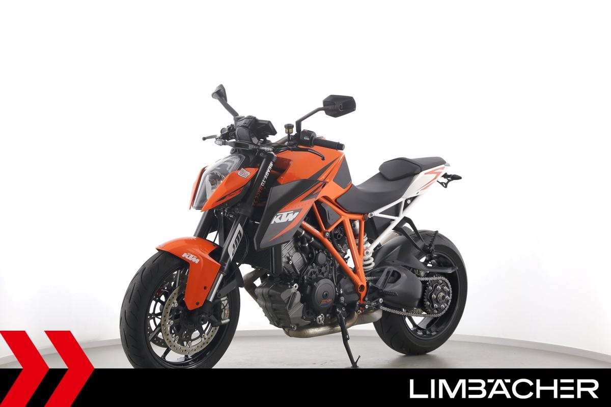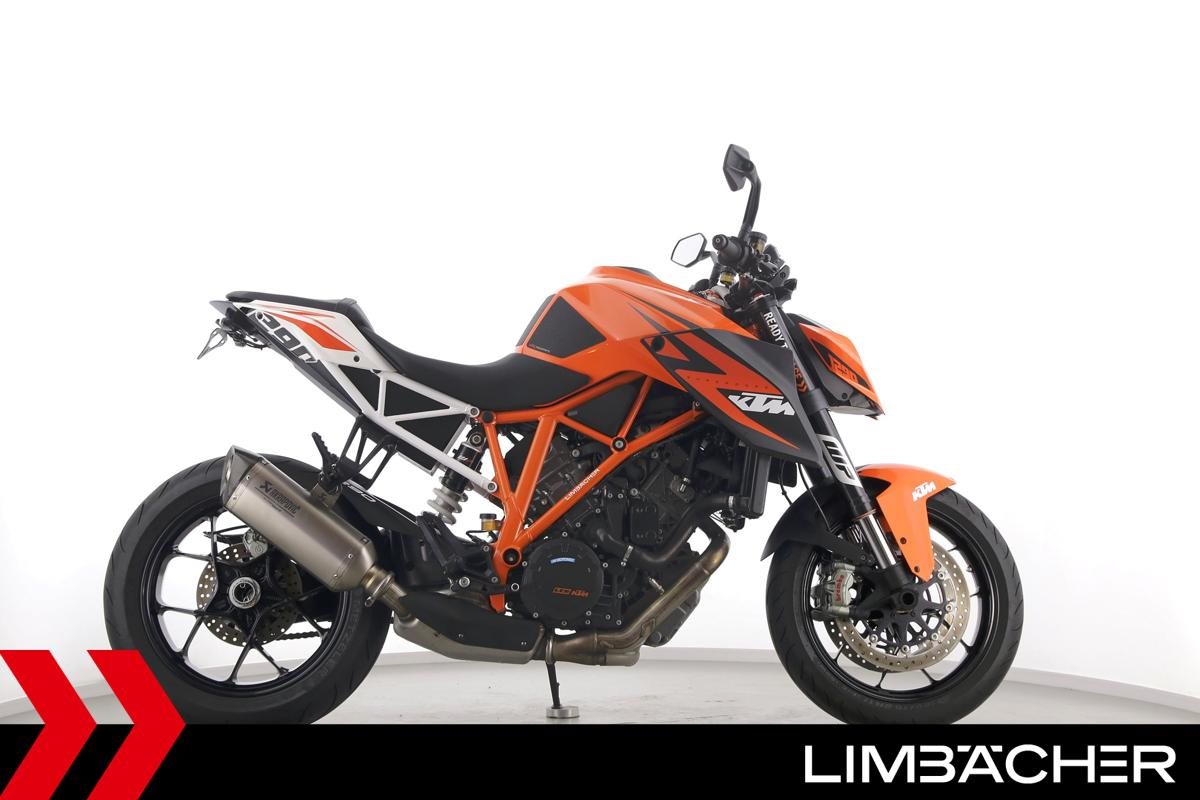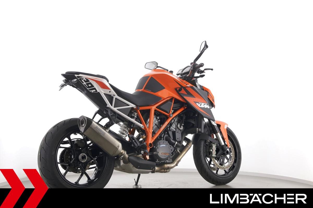 Eine KTM 1290 Super Duke R in sehr gepflegtem Zustand u.a. mit Akrapovic-Endschalldämpfer und kurzem Kennzeichenhalter.