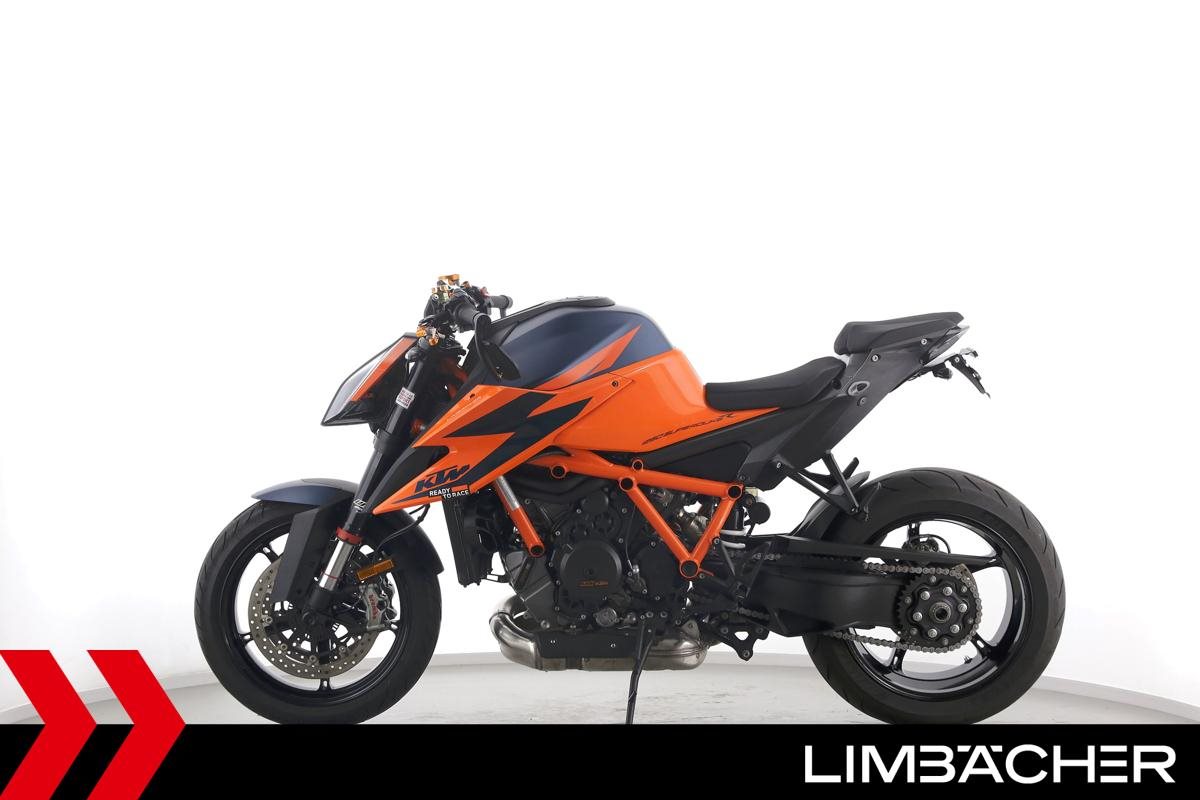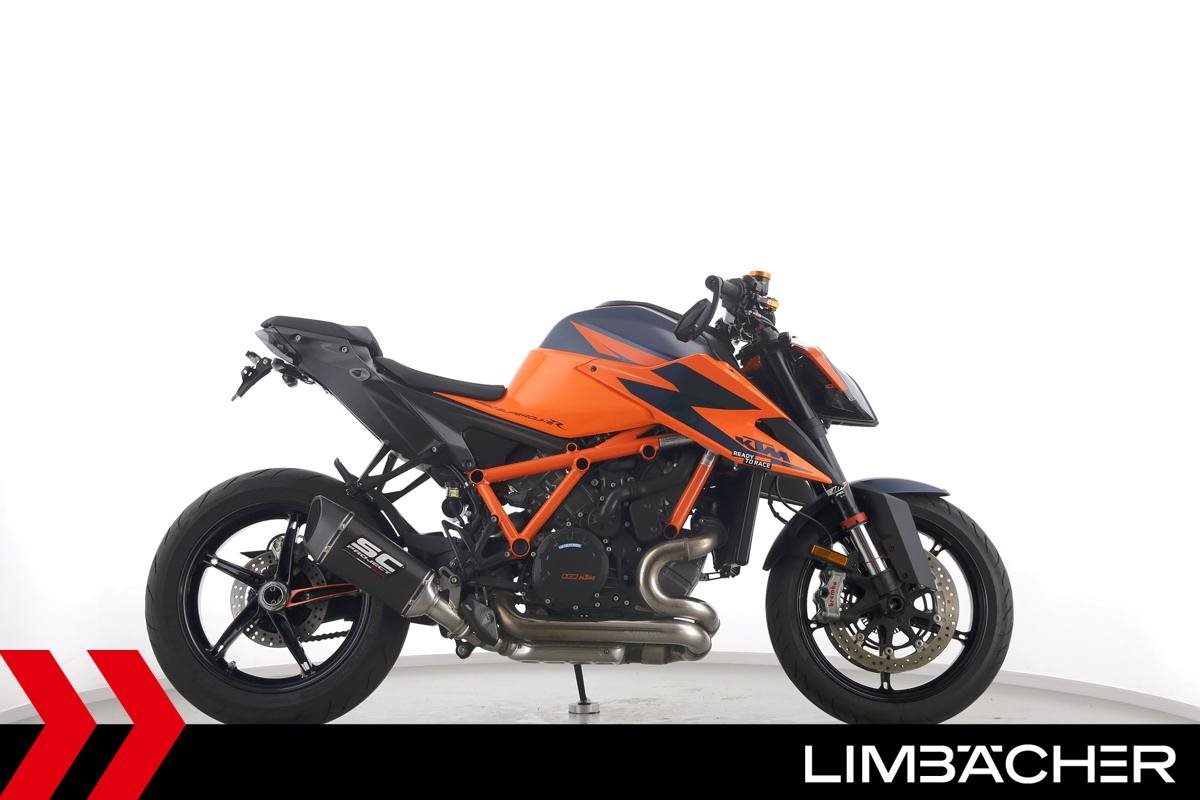 Eine KTM 1290 Super Duke R in sehr gepflegtem Zustand u.a. mit SC-Project-Endschalldämpfer sowie kurzem Kennzeichenhalter.