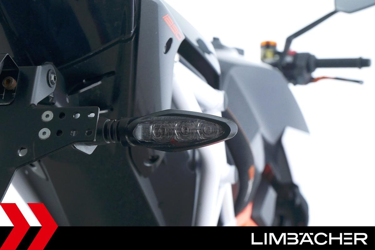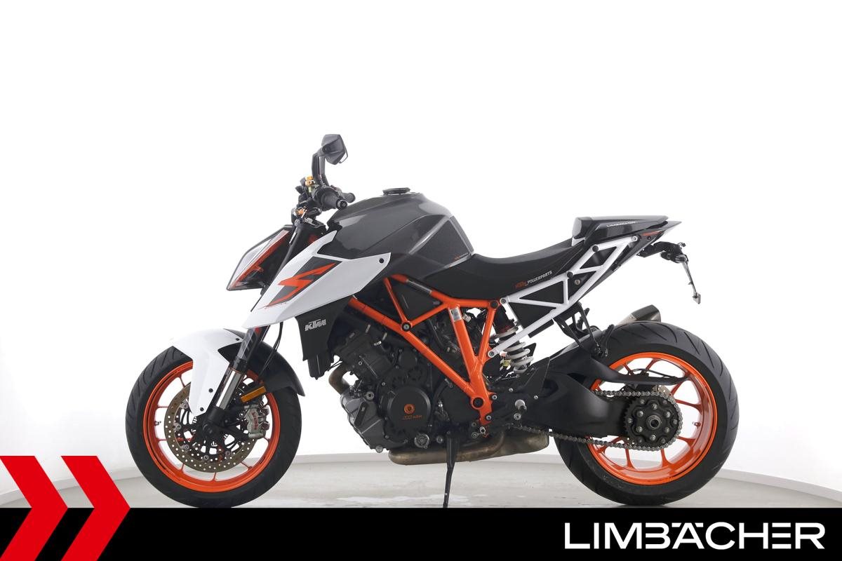 Eine KTM 1290 Super Duke R aus zweiter Hand in sehr gepflegtem Zustand u.a. mit Akrapovic-Endschalldämpfer und kurzem Kennzeichenhalter.