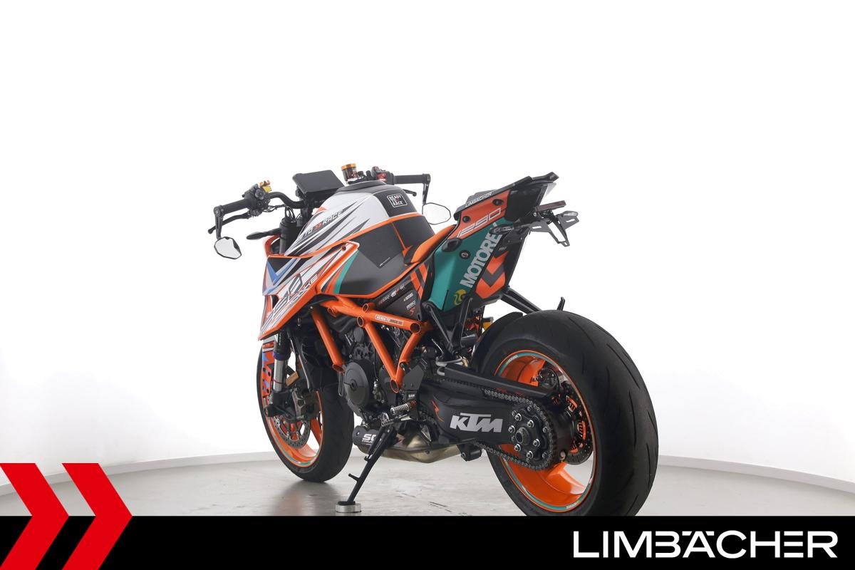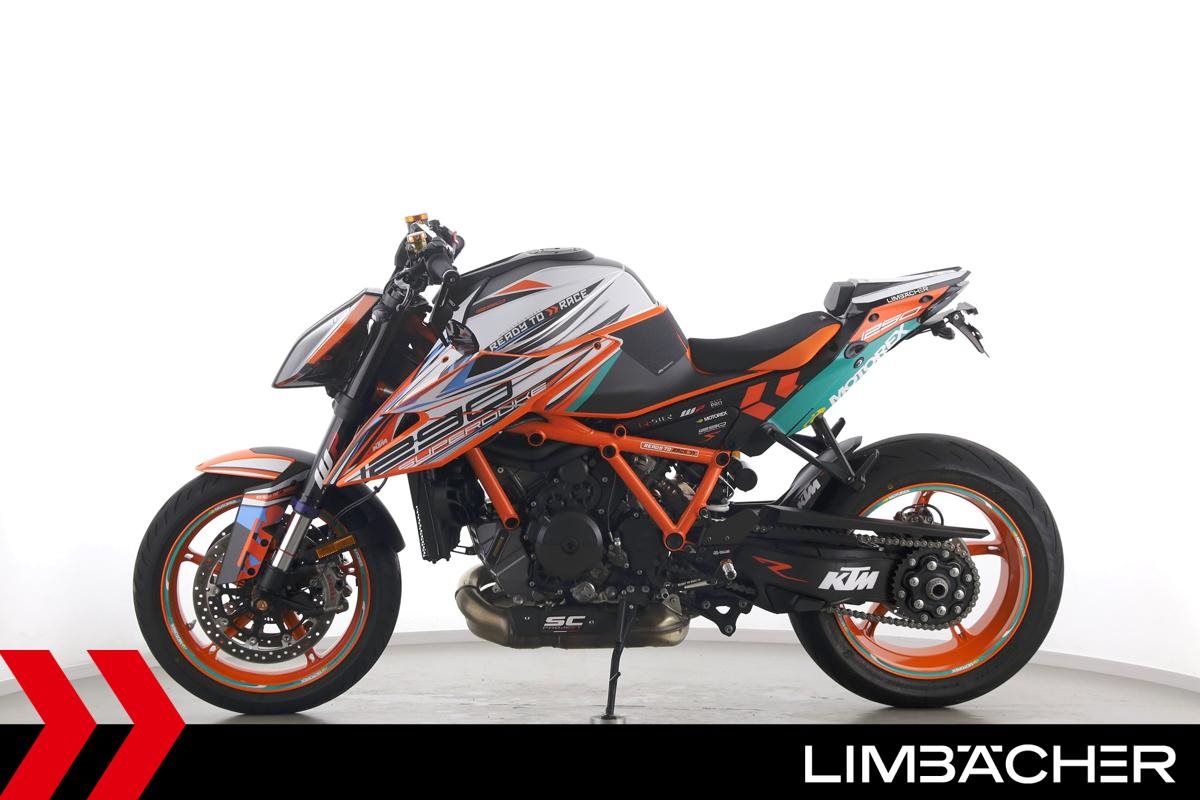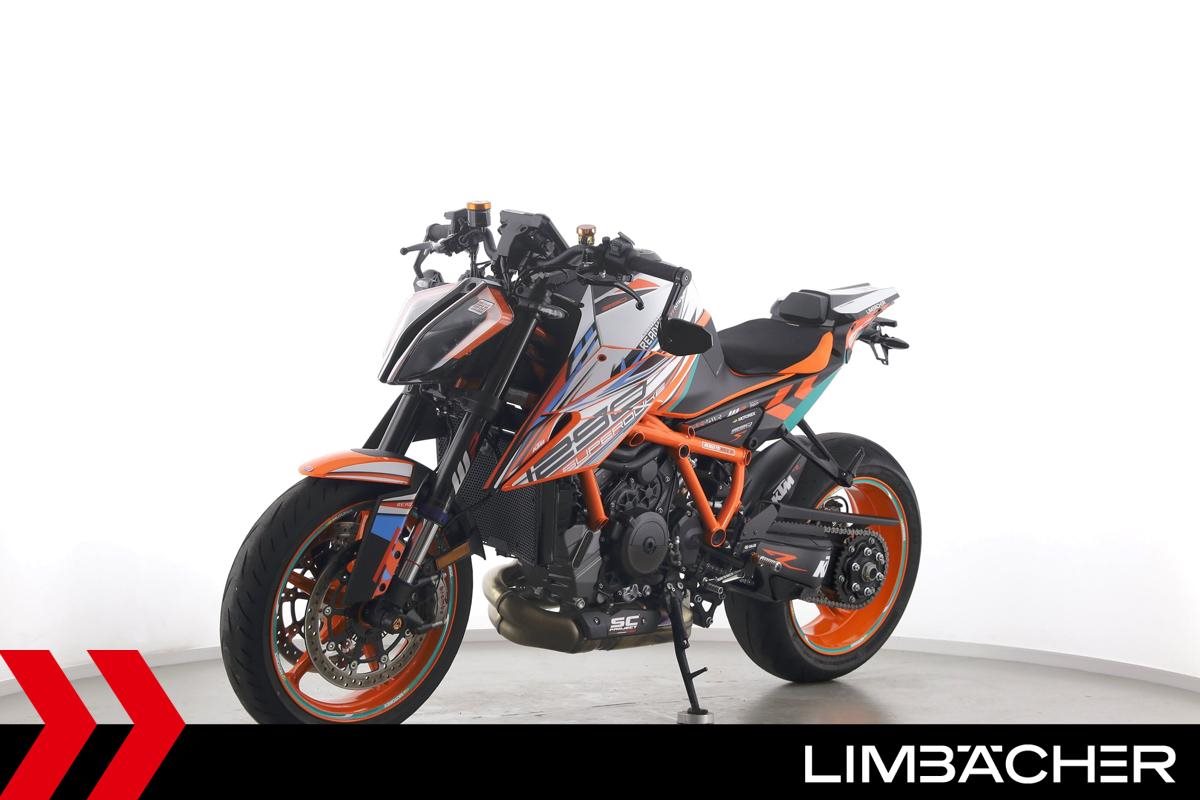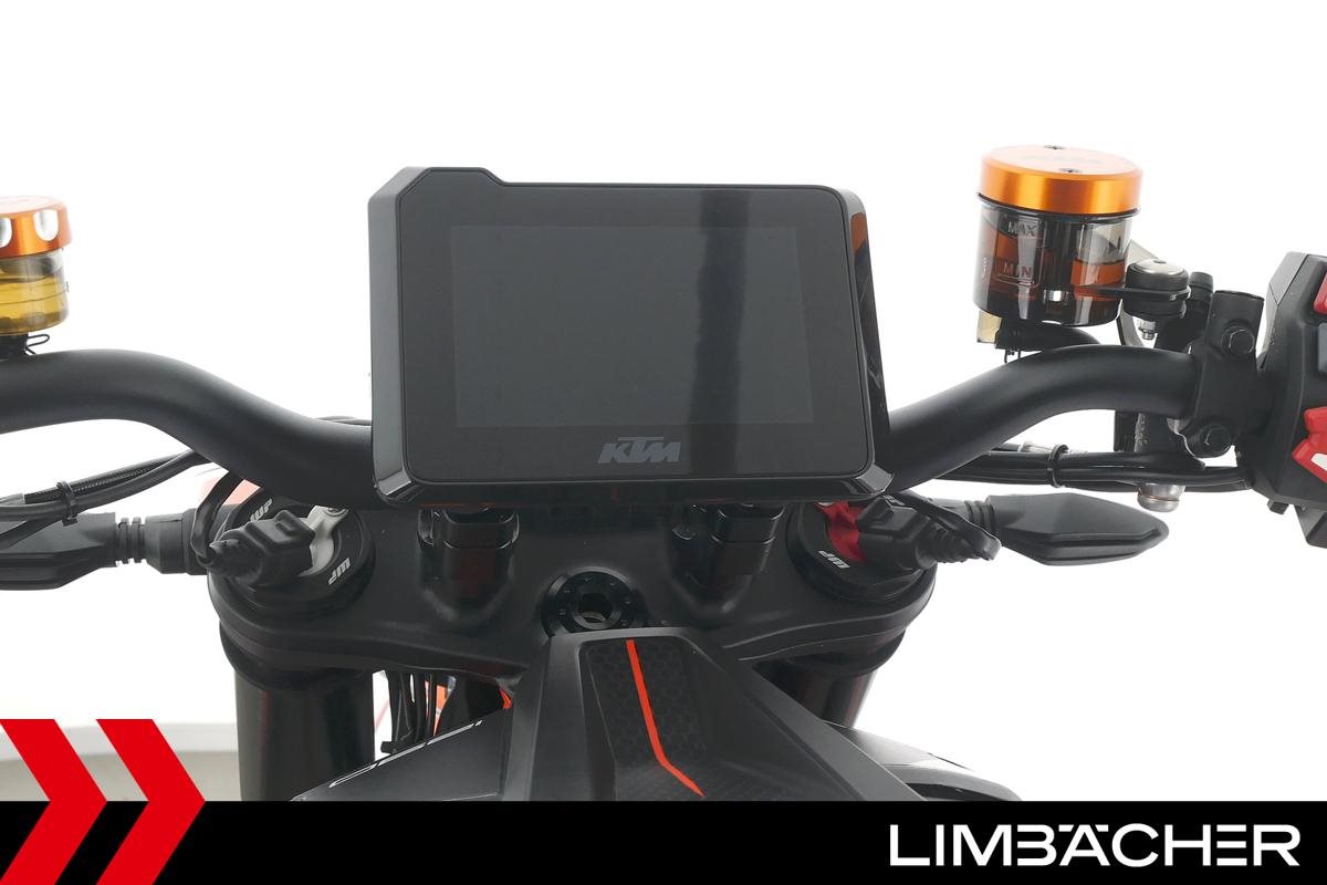 Eine scheckheftgepflegte KTM 1290 Super Duke R EVO aus erster Hand in sehr gepflegtem Zustand u.a. mit SC-Project-Endschalldämpfer sowie kurzem Kennzeichenhalter.