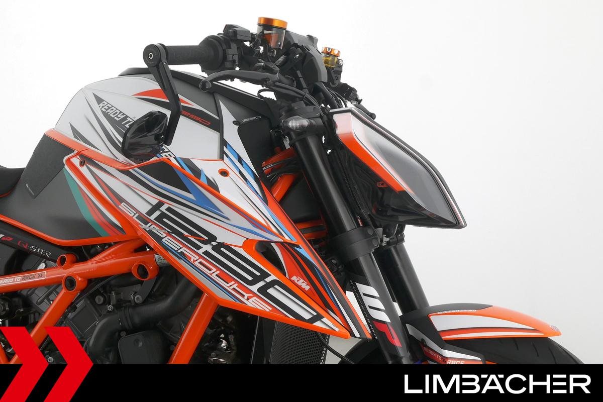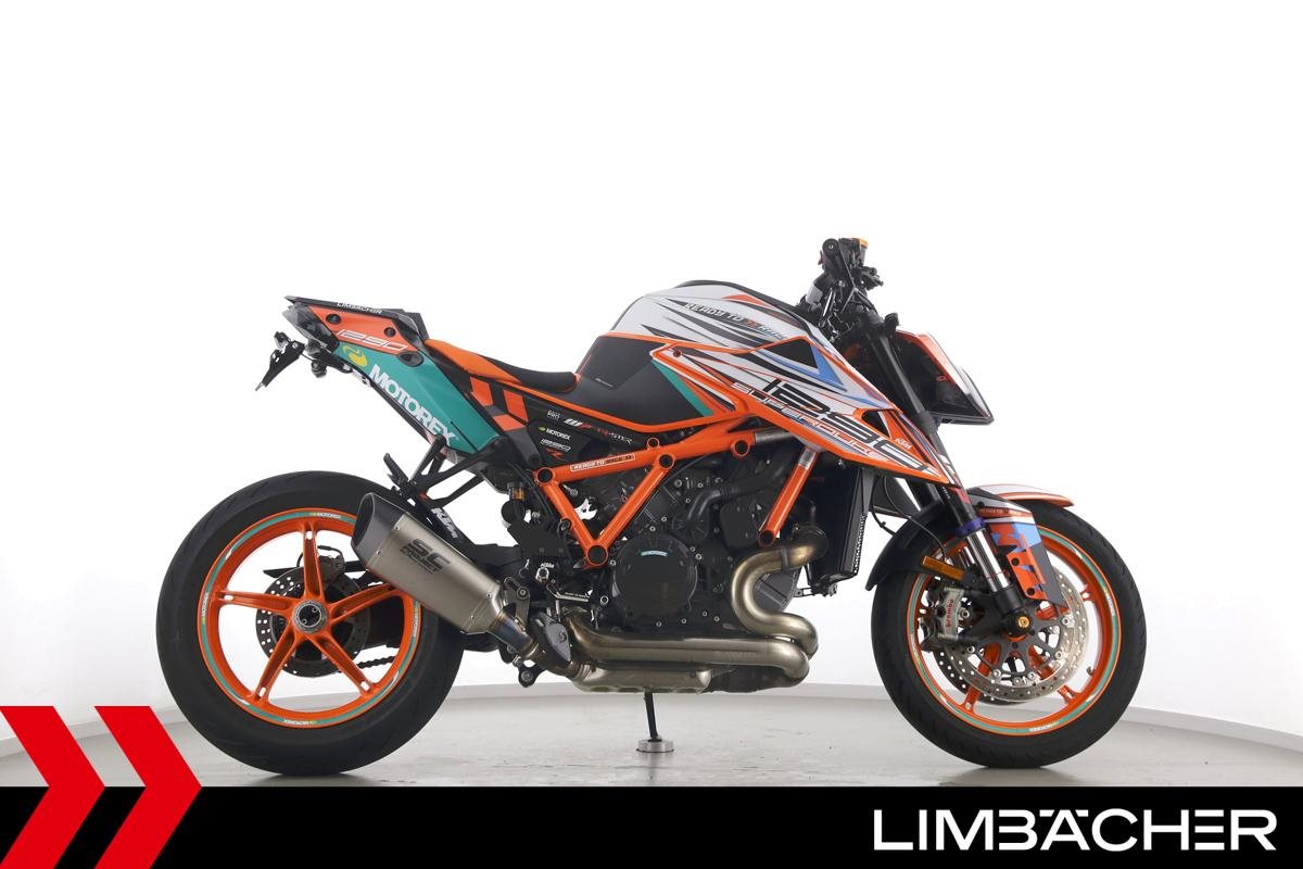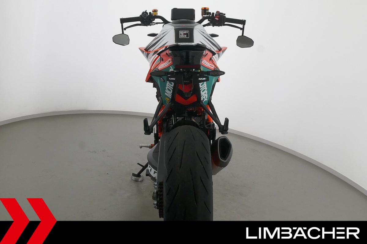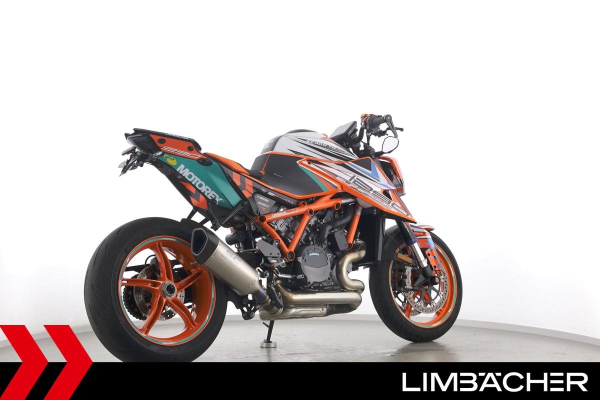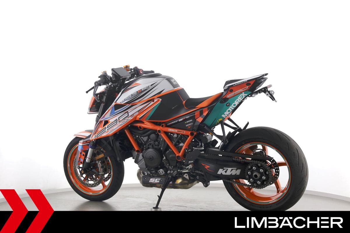 Eine scheckheftgepflegte KTM 1290 Super Duke R EVO aus erster Hand in sehr gepflegtem Zustand u.a. mit SC-Project-Endschalldämpfer sowie kurzem Kennzeichenhalter.