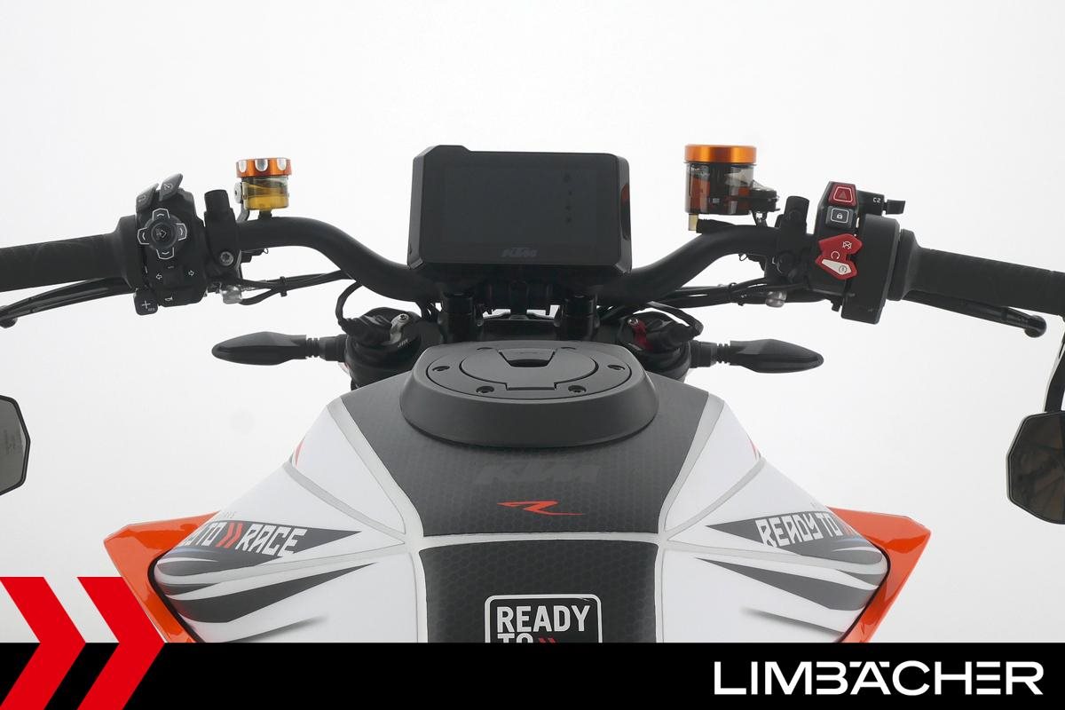 Wir bieten hier eine KTM 1290 Super Duke R EVO mit einer neuen Jahresinspektion inklusive 40-Punkte-Durchsicht. Alle unsere Fahrzeuge werden mit mindestens einem Jahr TÜV übergeben.