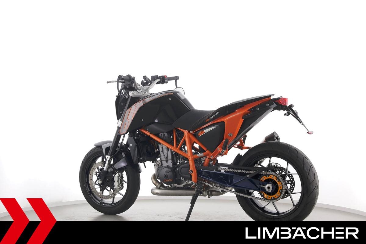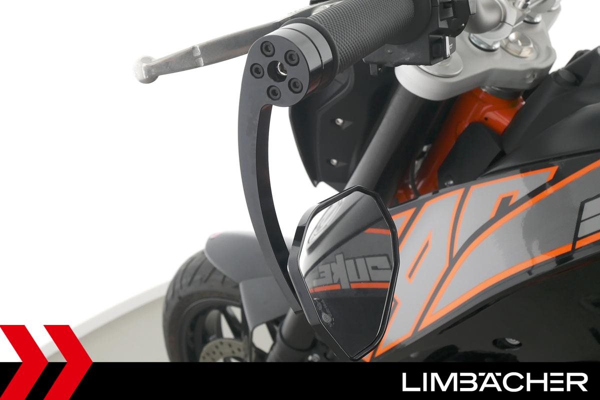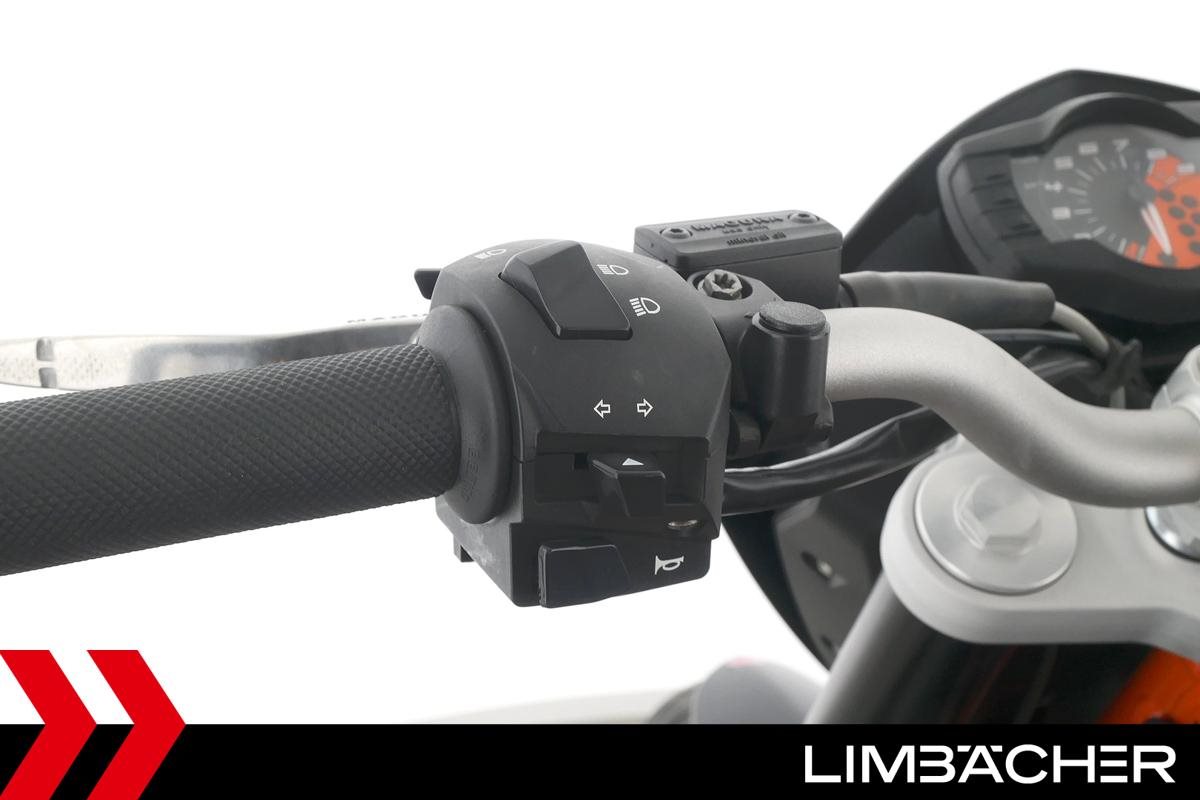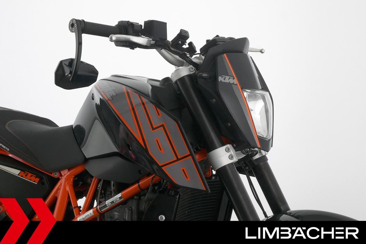 Eine scheckheftgepflegte KTM 690 Duke in gepflegtem Zustand u.a. mit LeoVince-Endschalldämpfer sowie kurzem Kennzeichenhalter.