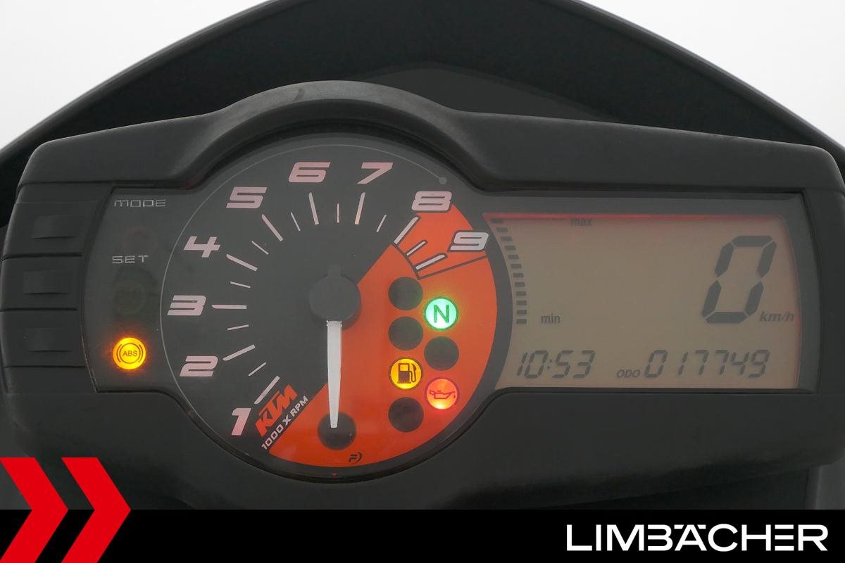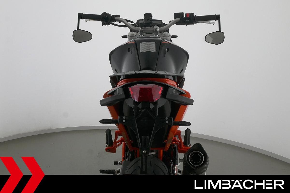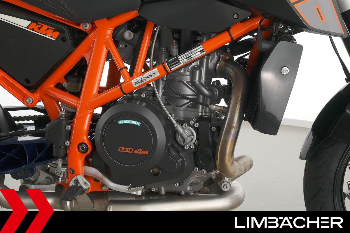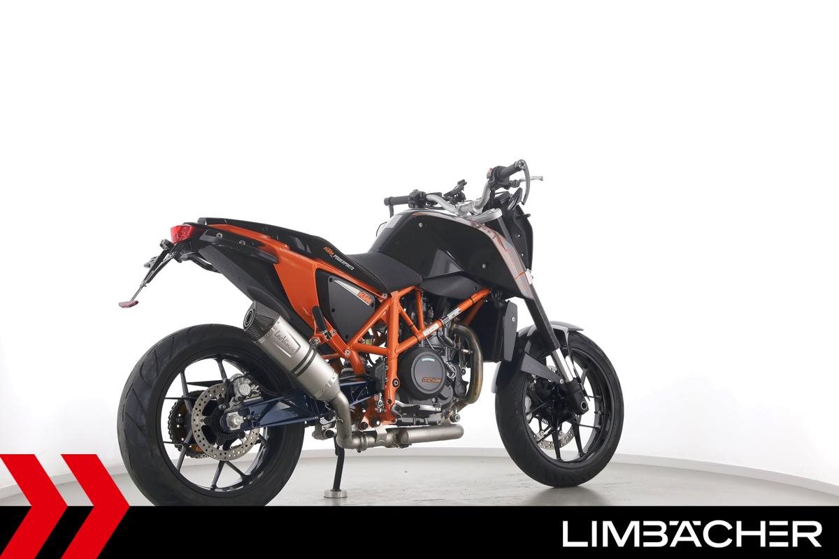 Eine scheckheftgepflegte KTM 690 Duke in gepflegtem Zustand u.a. mit LeoVince-Endschalldämpfer sowie kurzem Kennzeichenhalter.