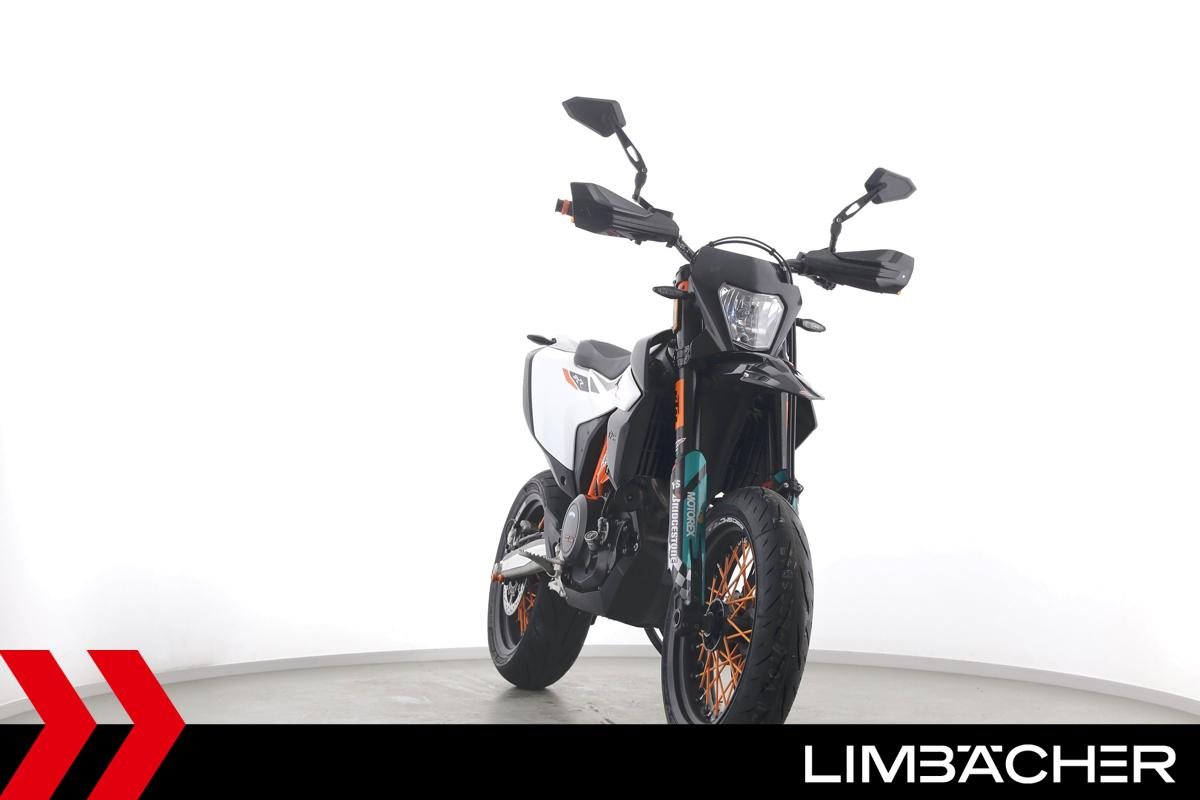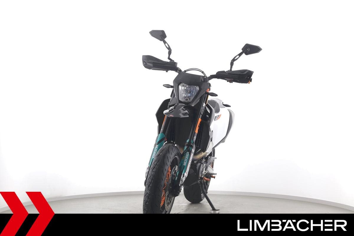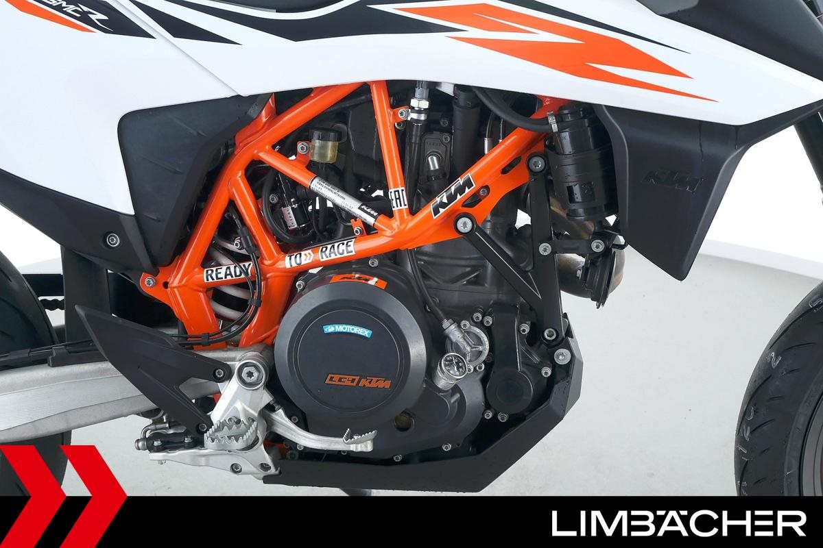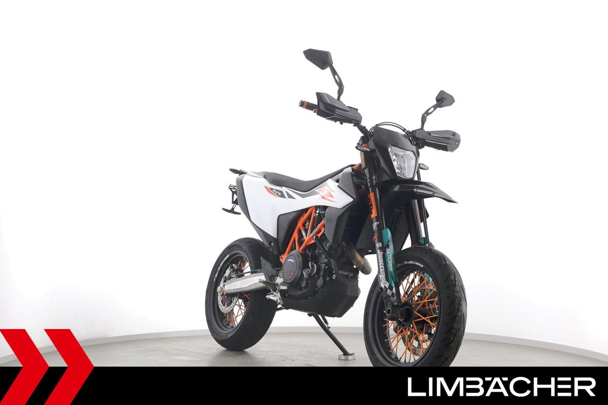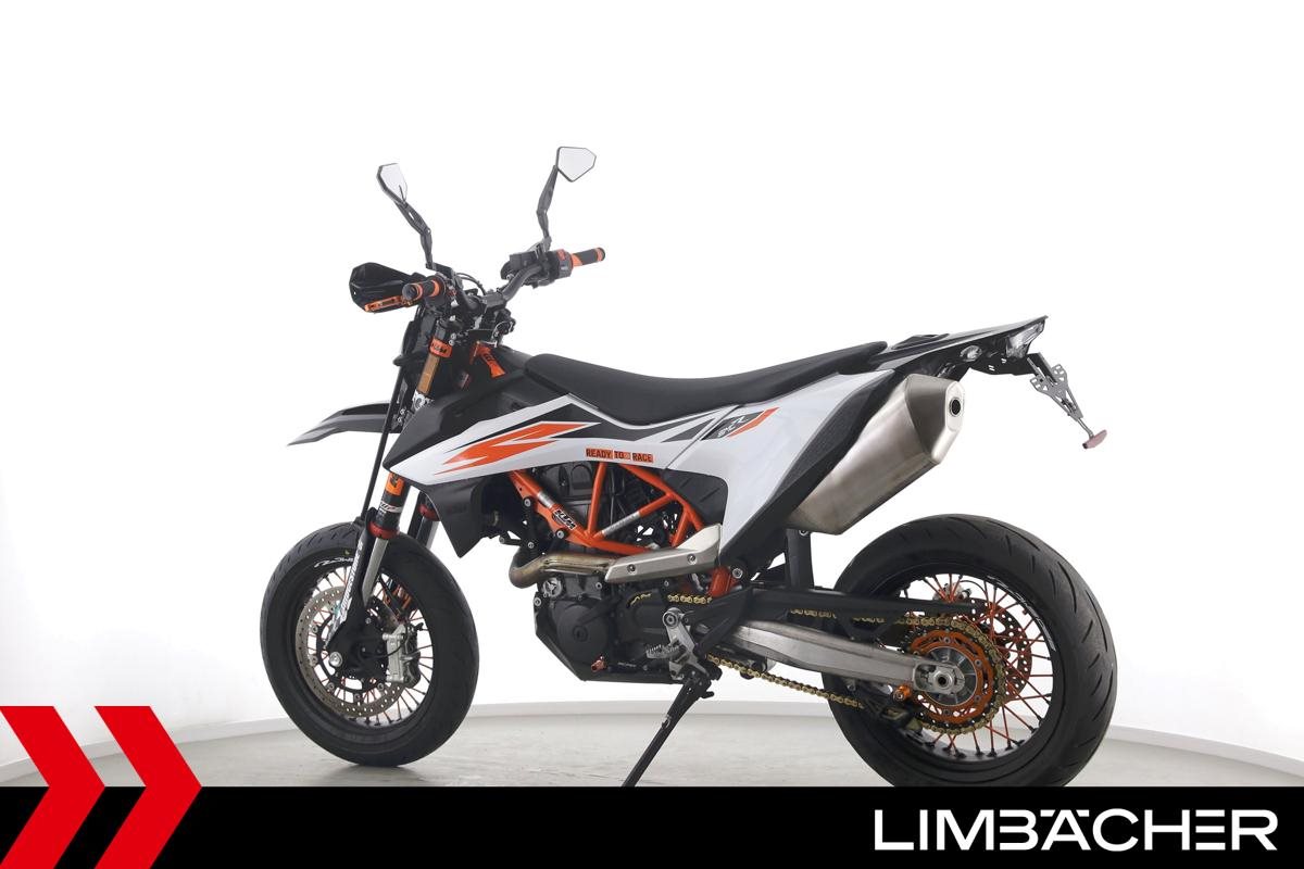 Eine scheckheftgepflegte KTM 690 SMC R aus erster Hand in sehr gepflegtem Zustand u.a. mit kurzem Kennzeichenhalter sowie Raximo-Brems- und -Kupplungshebel.