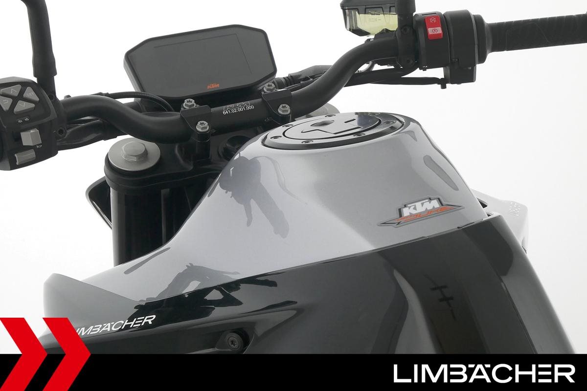 Eine KTM 790 Duke aus zweiter Hand in gepflegtem Zustand u.a. mit kurzem Kennzeichenhalter und Wilbers-Federbein.