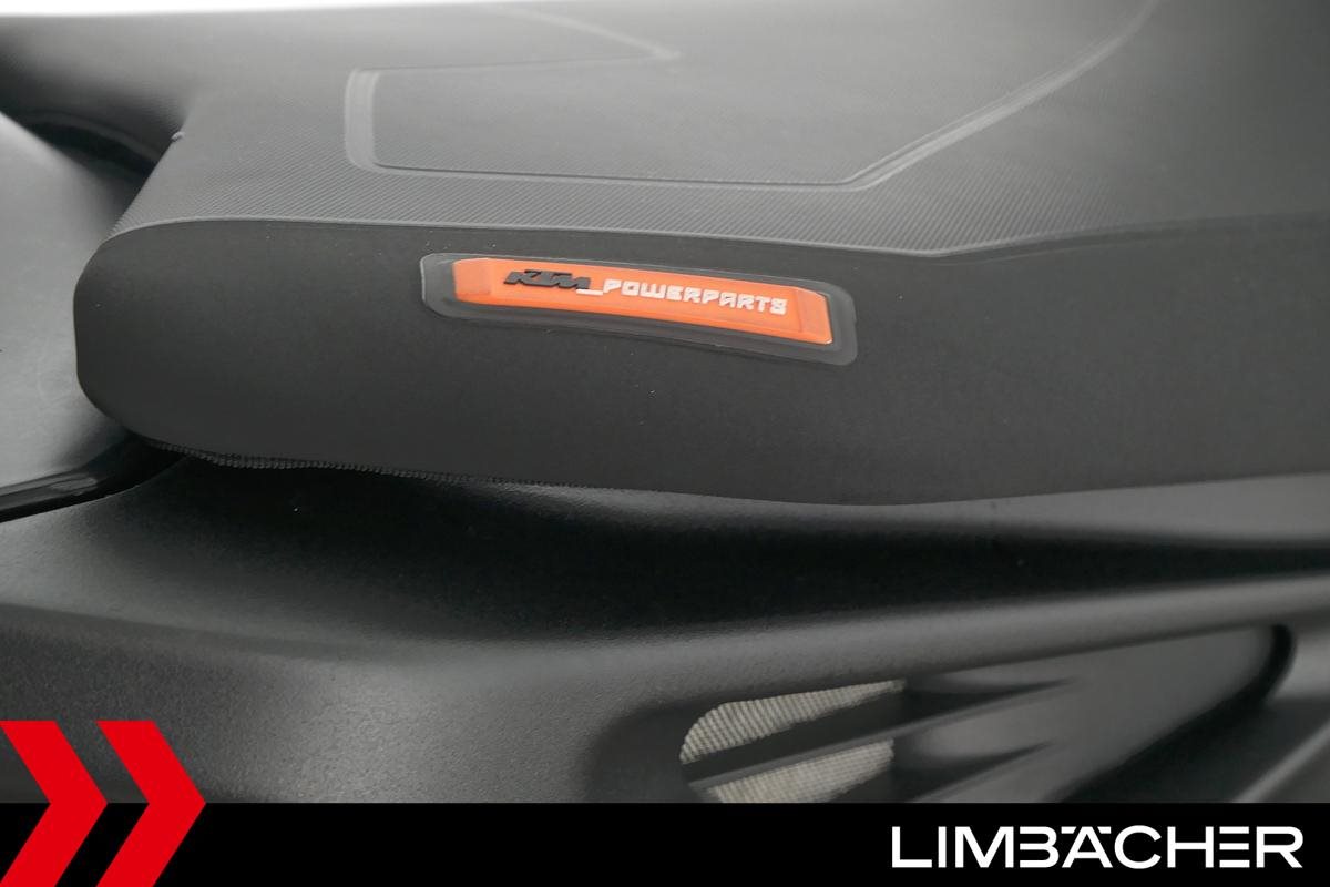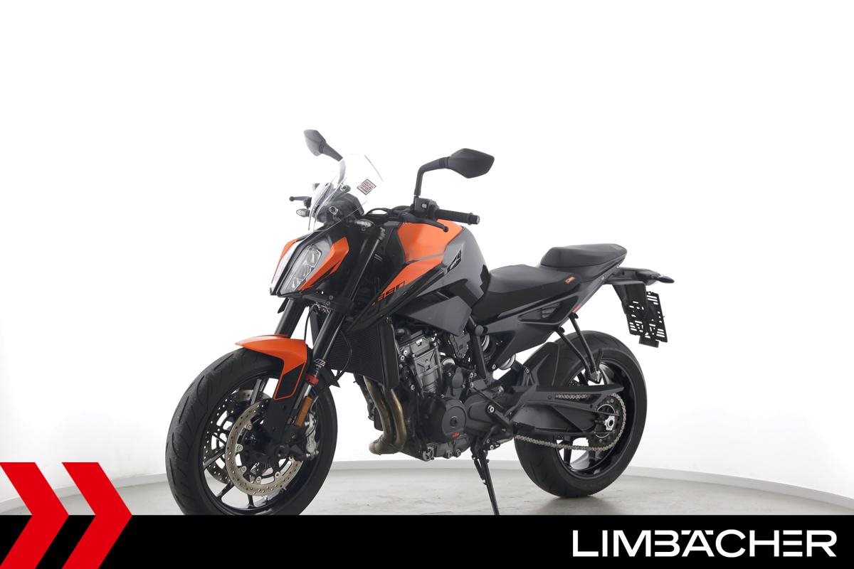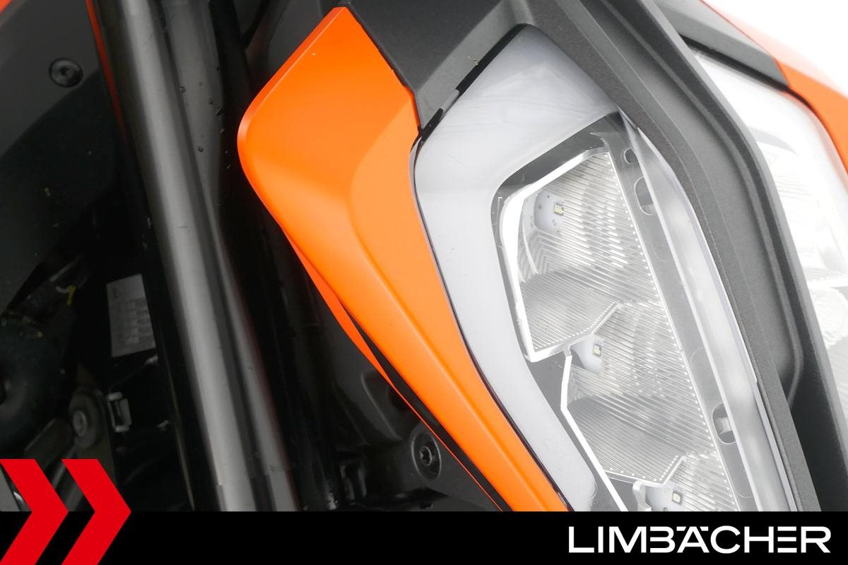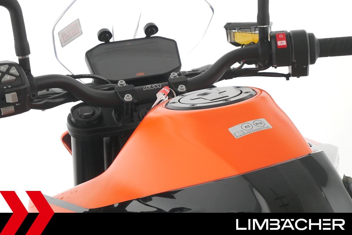 Eine scheckheftgepflegte KTM 890 Duke aus zweiter Hand in sehr gepflegtem Zustand u.a. mit KTM-Windschild und Powerparts-Fahrersitz.