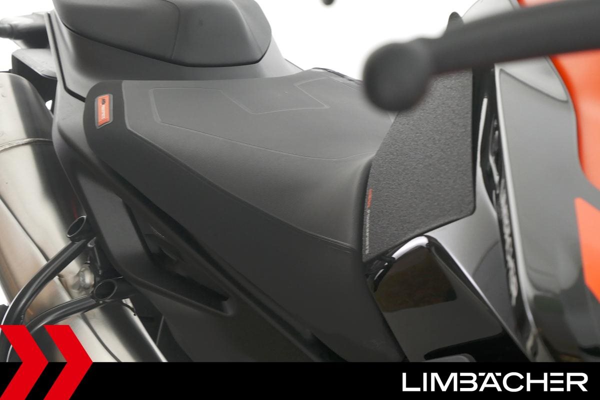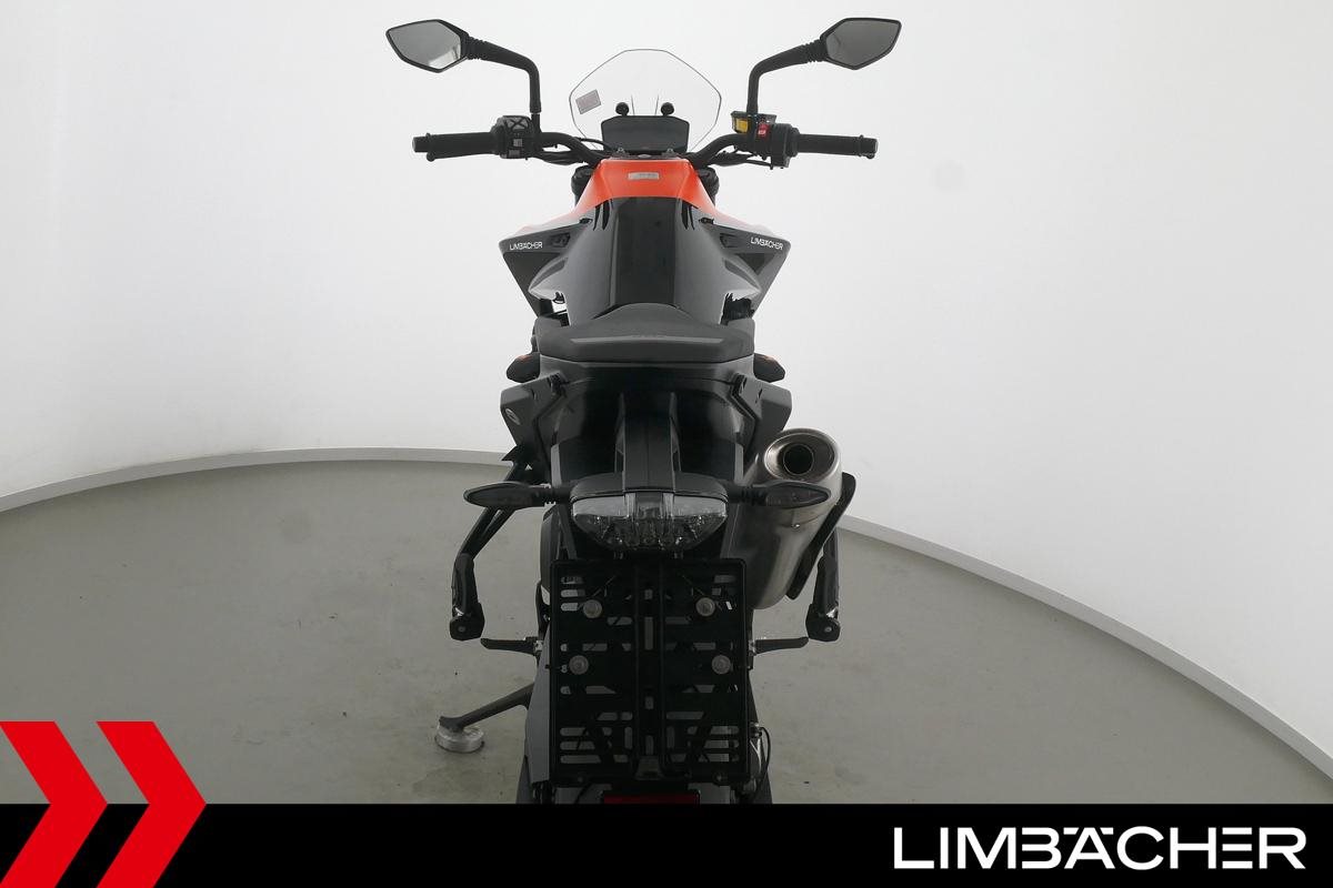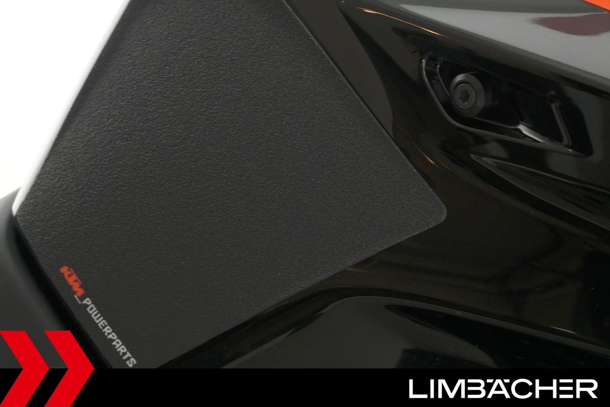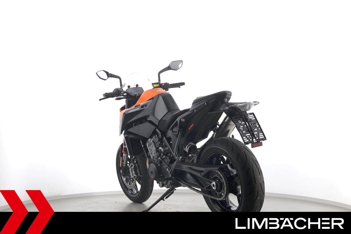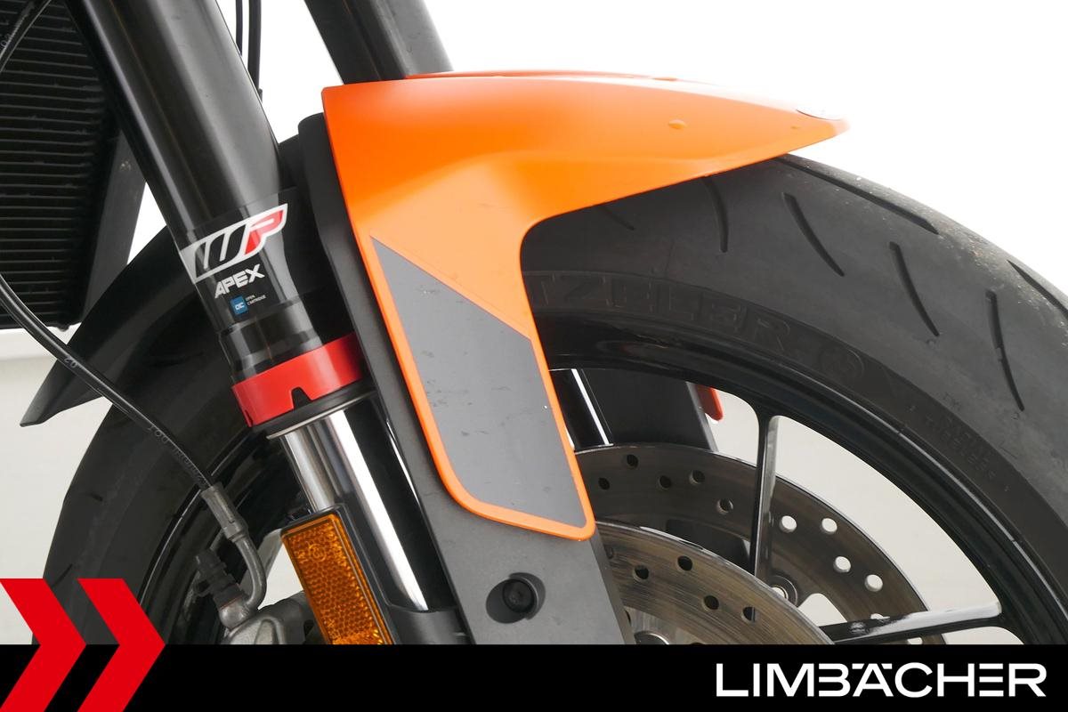 Eine scheckheftgepflegte KTM 890 Duke aus zweiter Hand in sehr gepflegtem Zustand u.a. mit KTM-Windschild und Powerparts-Fahrersitz.