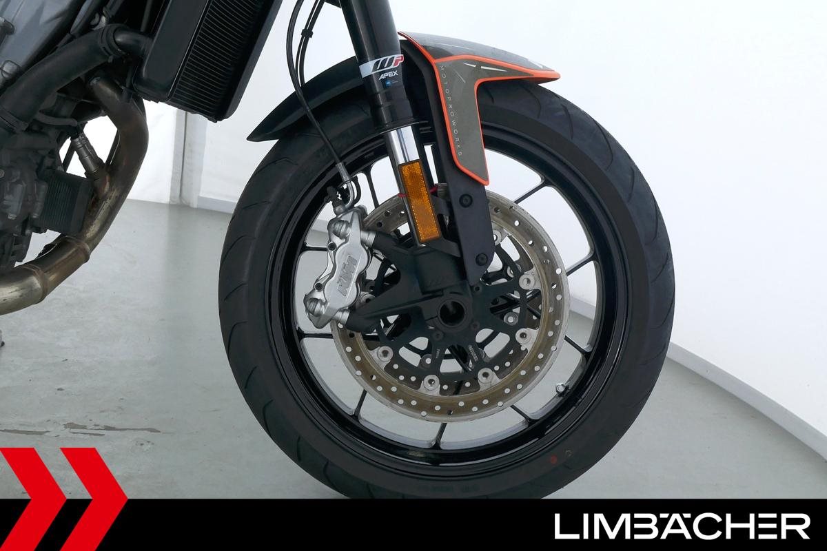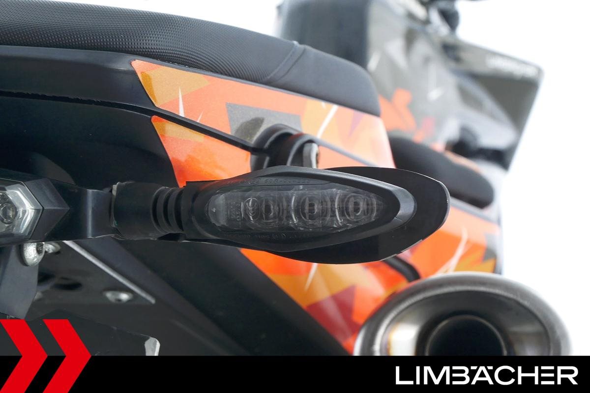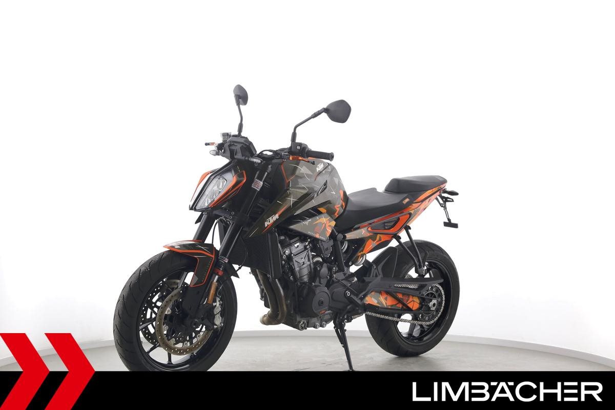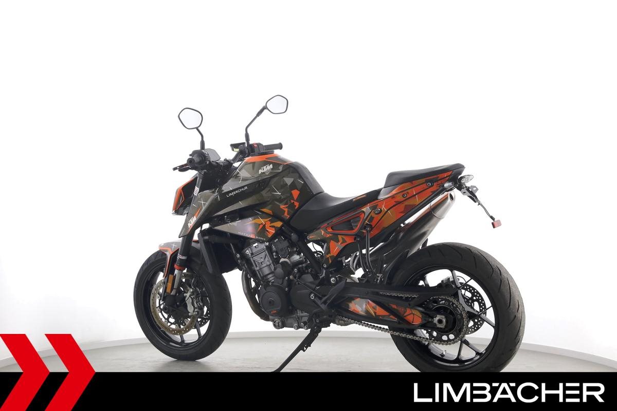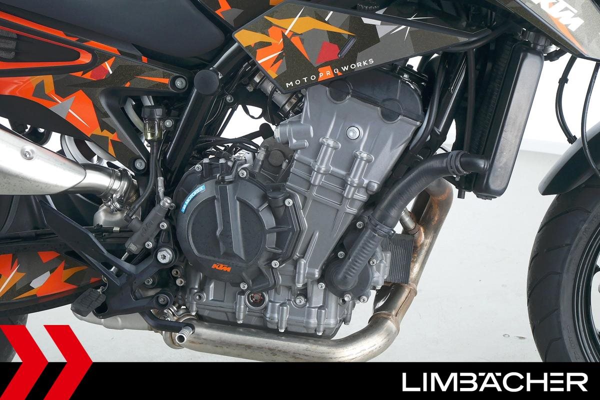 Eine scheckheftgepflegte KTM 890 Duke aus zweiter Hand in gepflegtem Zustand u.a. mit kurzem Kennzeichenhalter sowie einer Powerparts-Sitzbank.