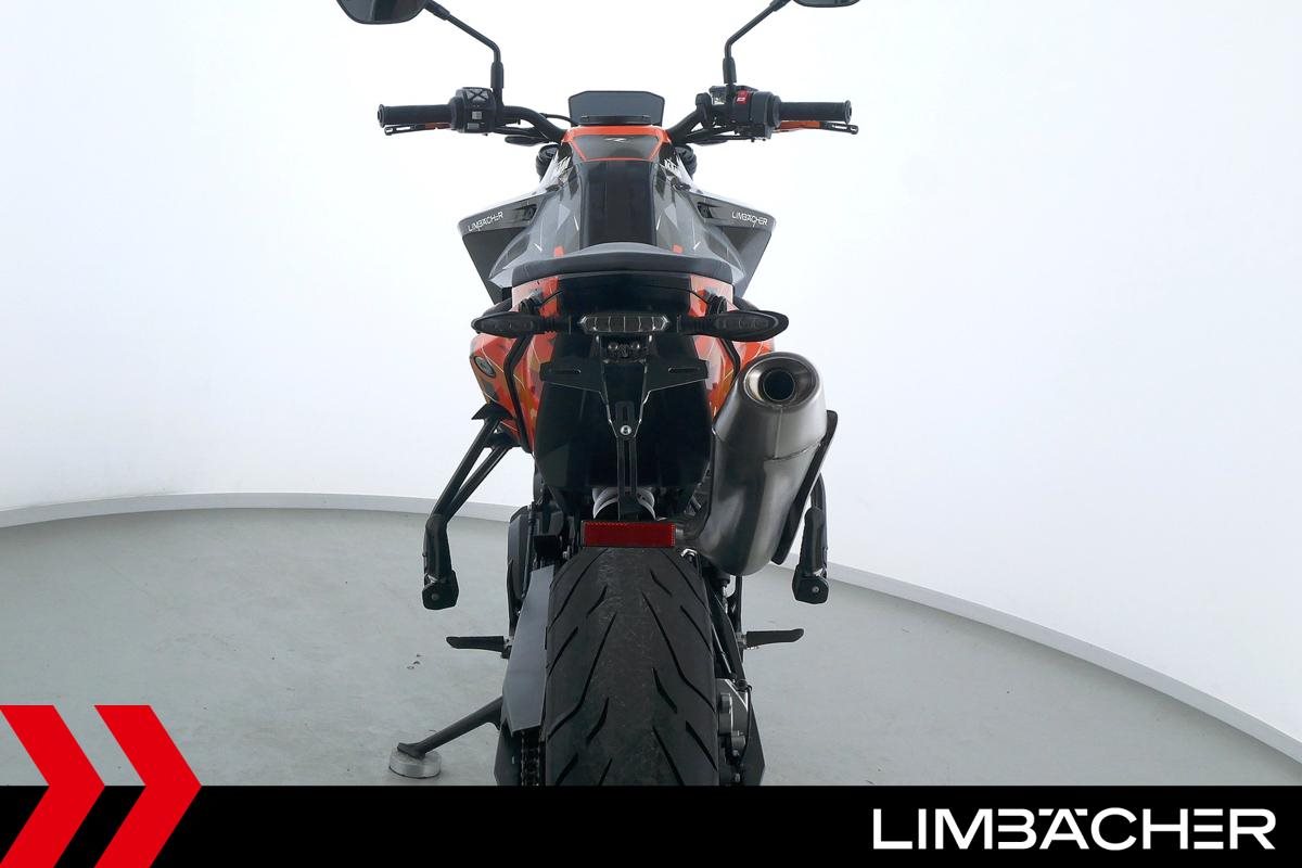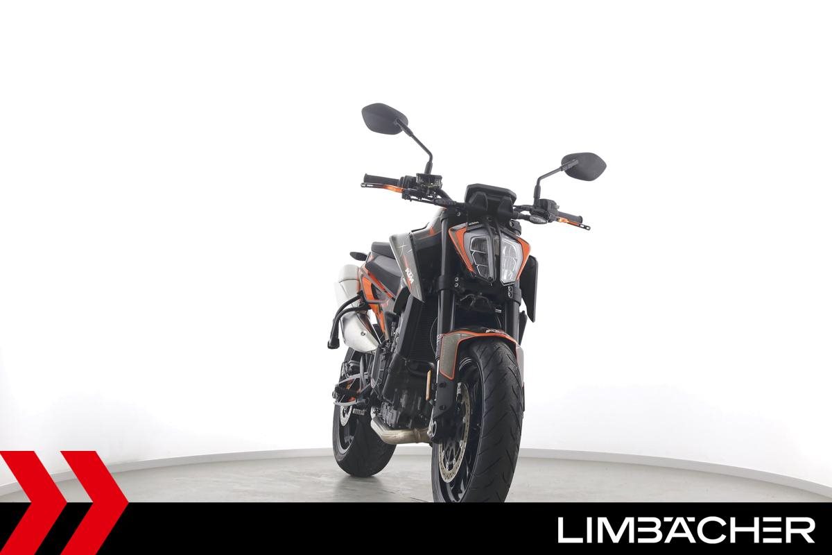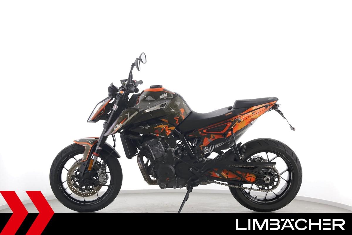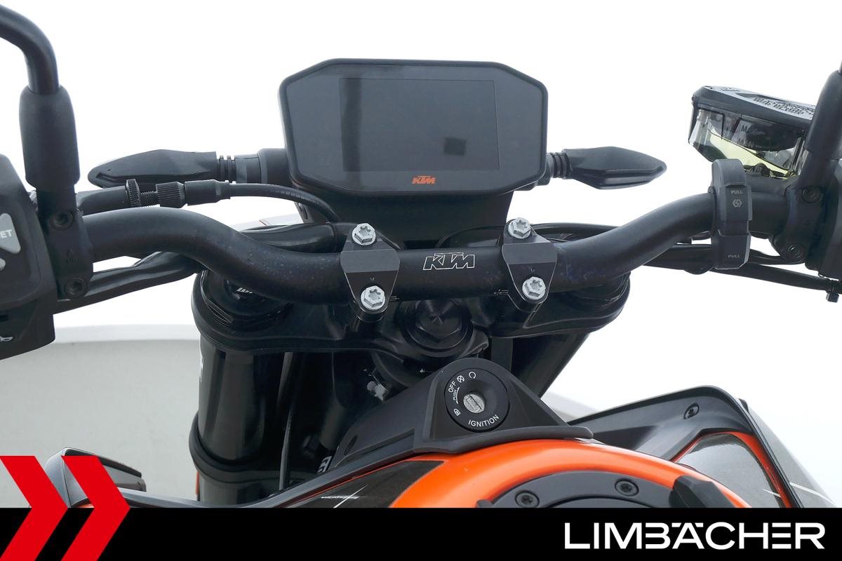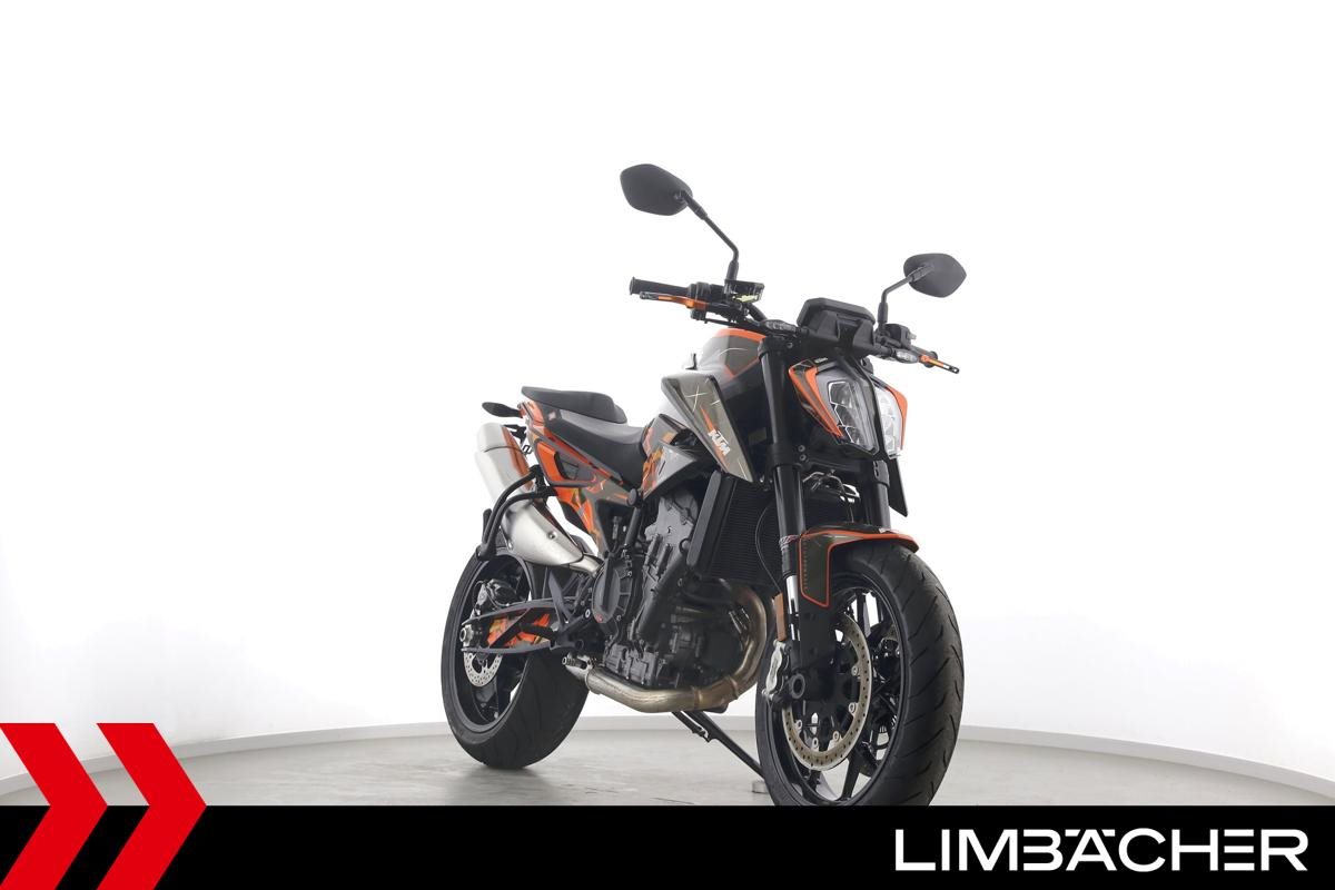 Eine scheckheftgepflegte KTM 890 Duke aus zweiter Hand in gepflegtem Zustand u.a. mit kurzem Kennzeichenhalter sowie einer Powerparts-Sitzbank.