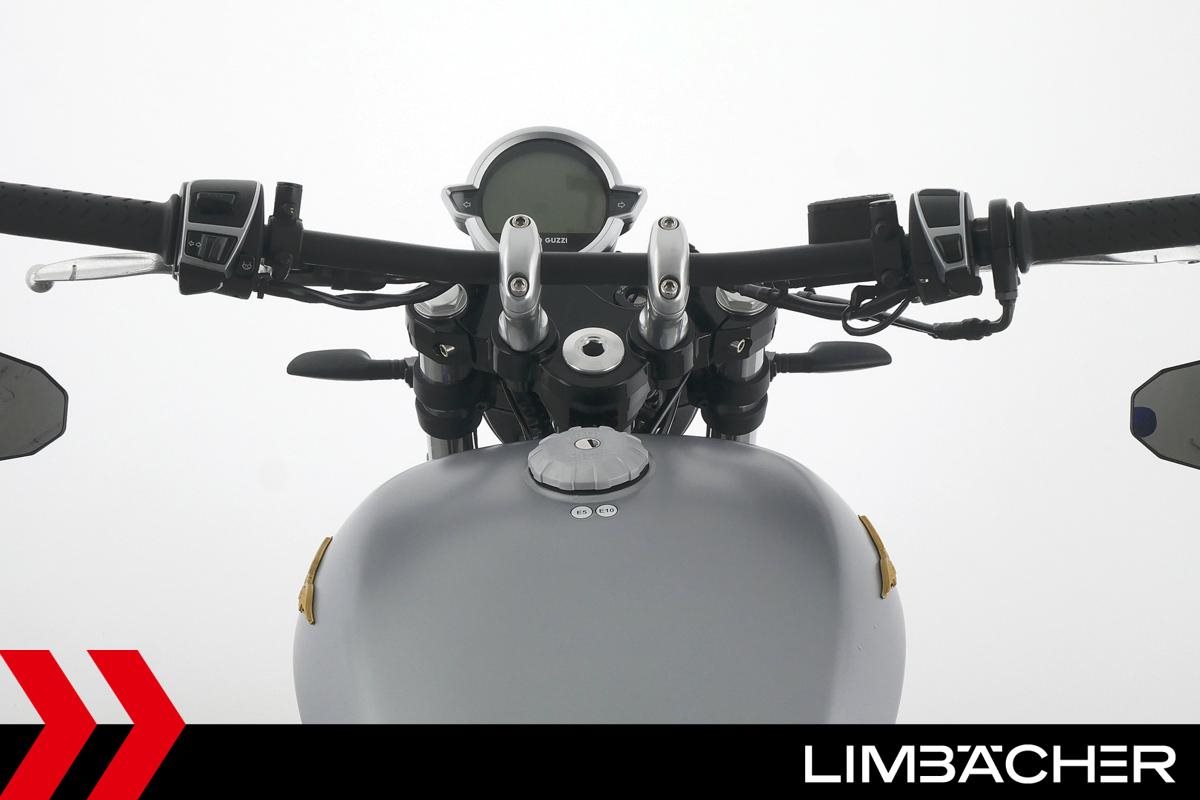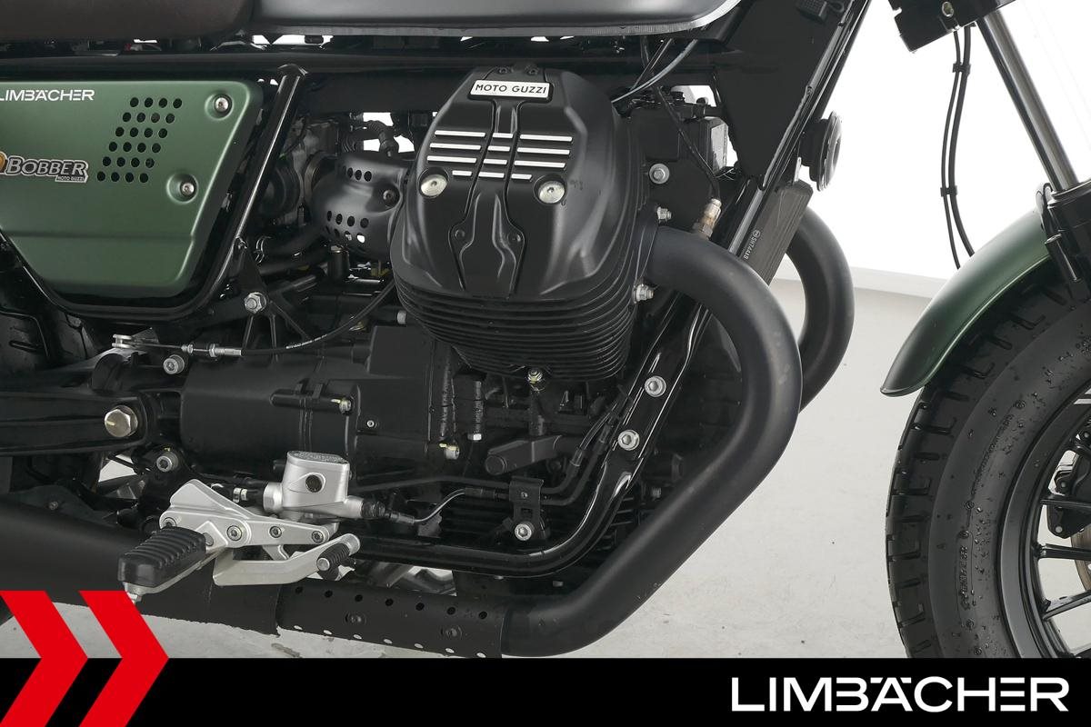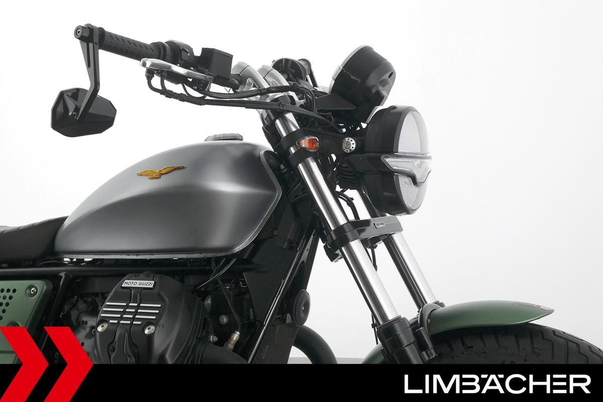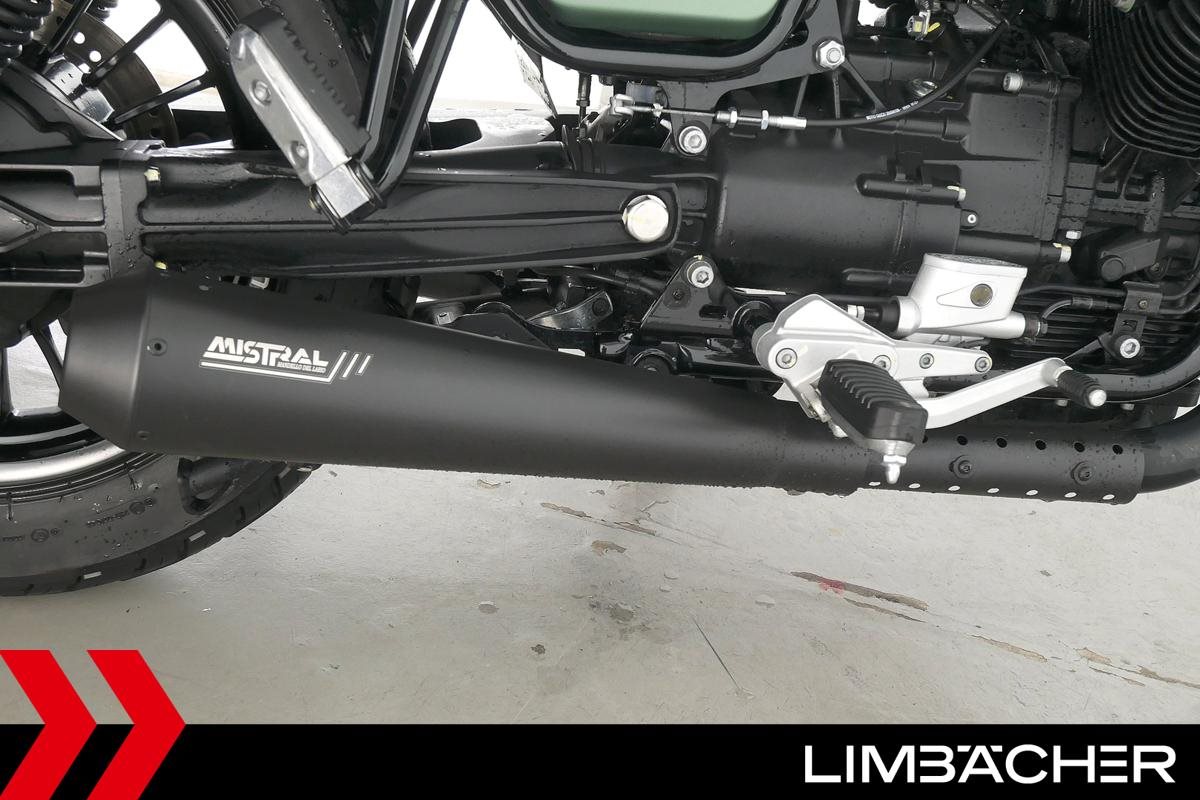 Eine Moto Guzzi V9 Bobber aus zweiter Hand in sehr gepflegtem Zustand u.a. mit Mistral-Endschalldämpfer sowie Traktionskontrolle.