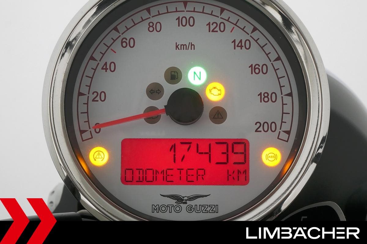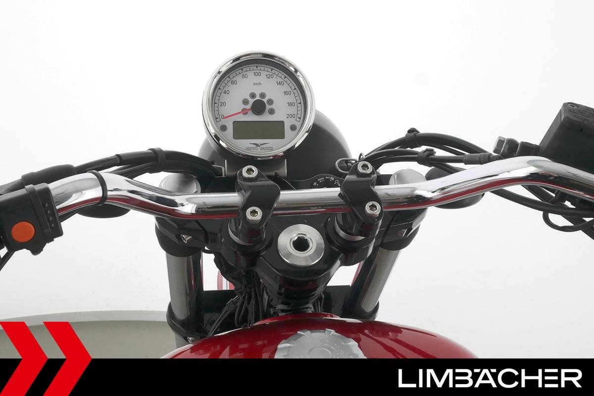 Eine scheckheftgepflegte Moto Guzzi V9 Roamer in sehr gepflegtem Zustand u.a. mit Sturzbügel in schwarz sowie Daytona Heizgriffen.