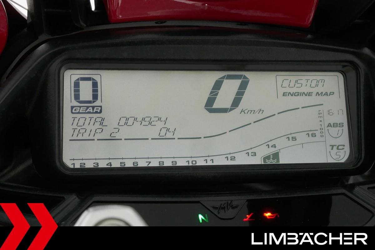 Eine MV Agusta Stradale 800 aus zweiter Hand in gepflegtem Zustand u.a. mit Softkoffer-System und Quickshifter.