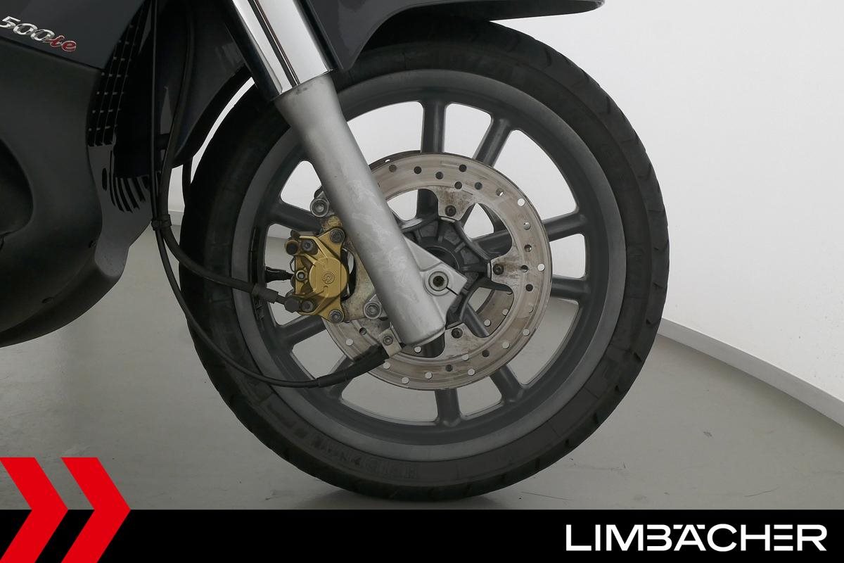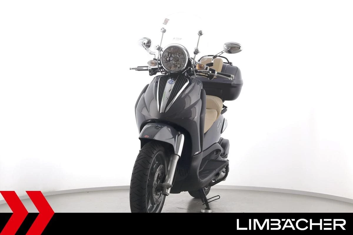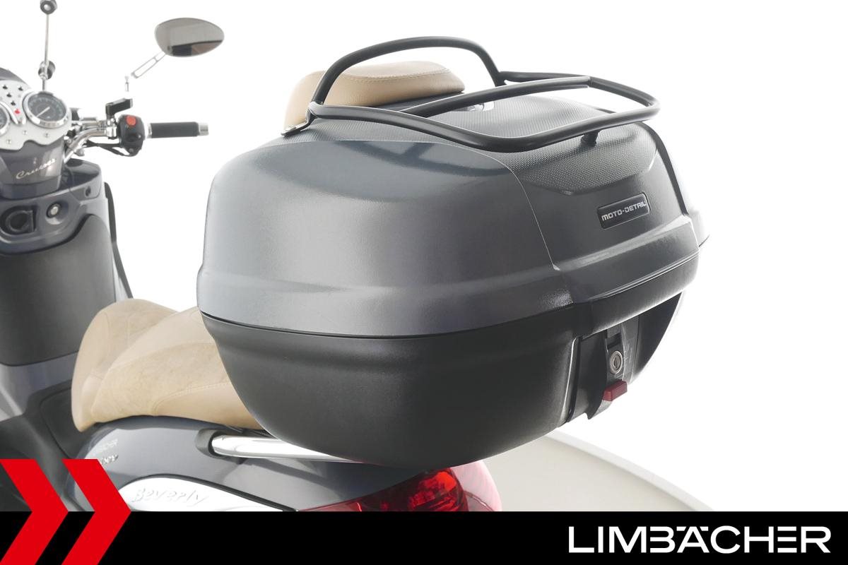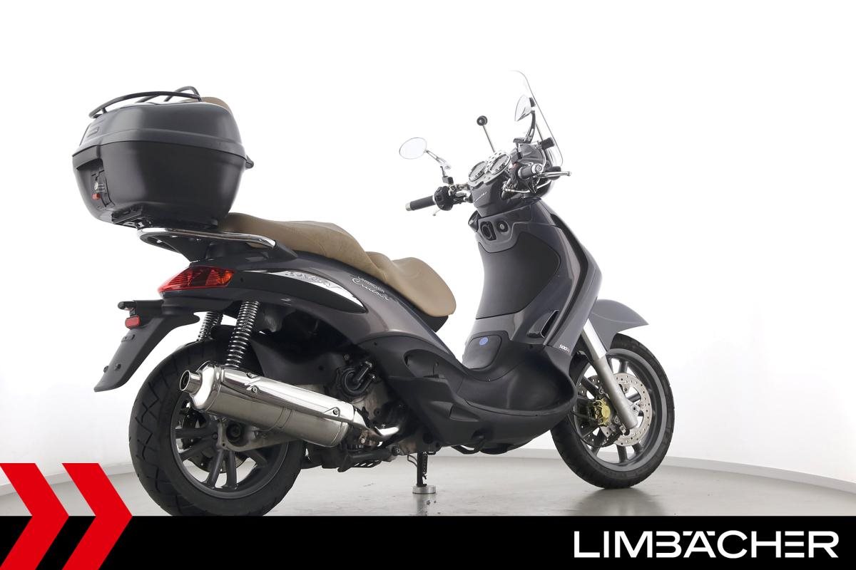 Ein Piaggio Beverly Cruiser 500ie in gepflegtem Zustand u.a. mit grossem Topcase sowie Piaggio-Scheibe.