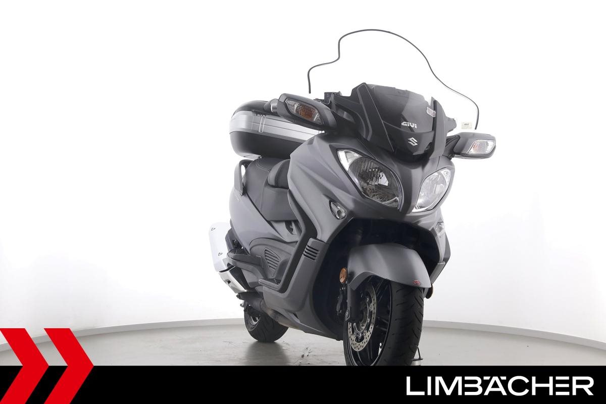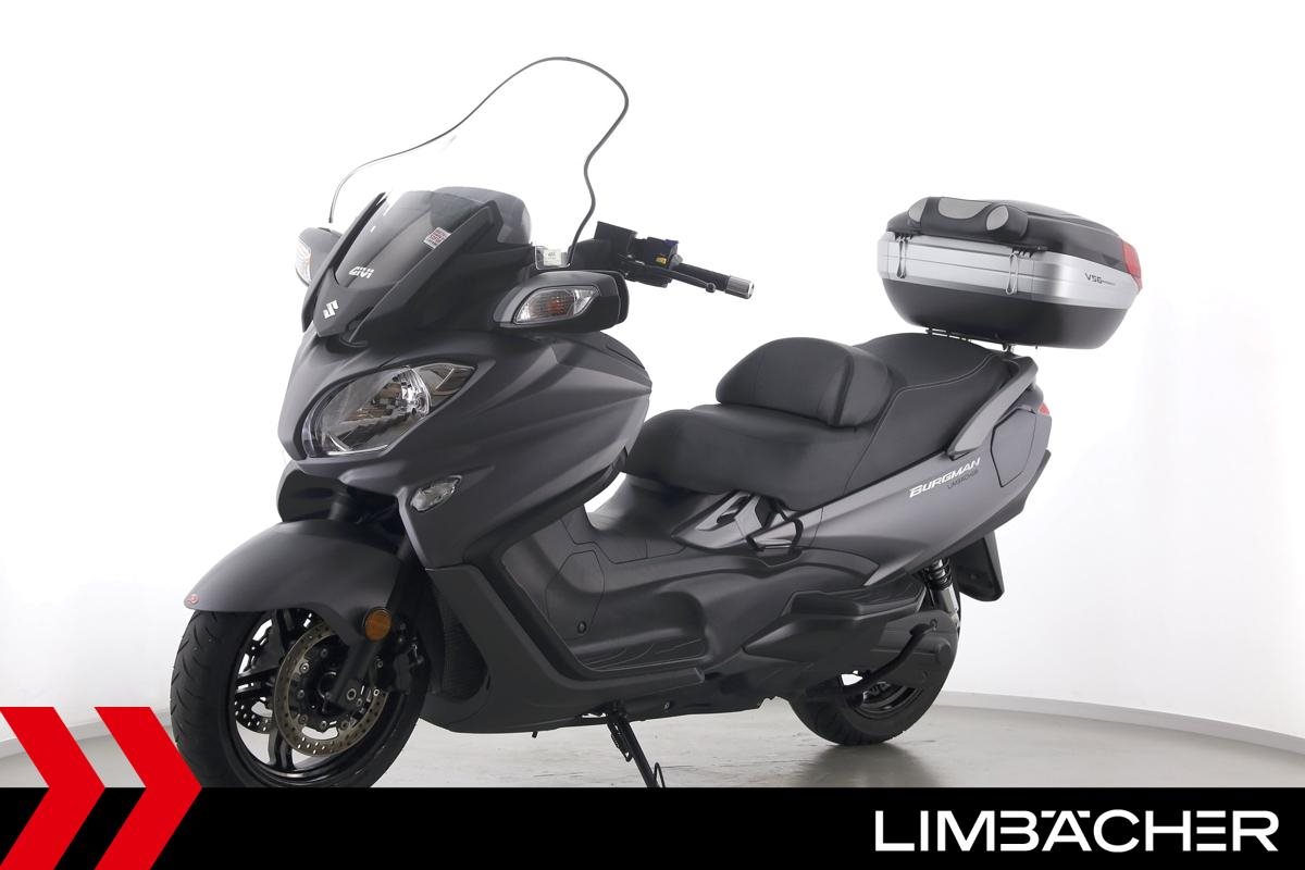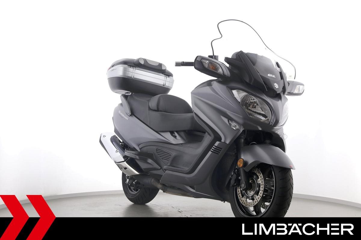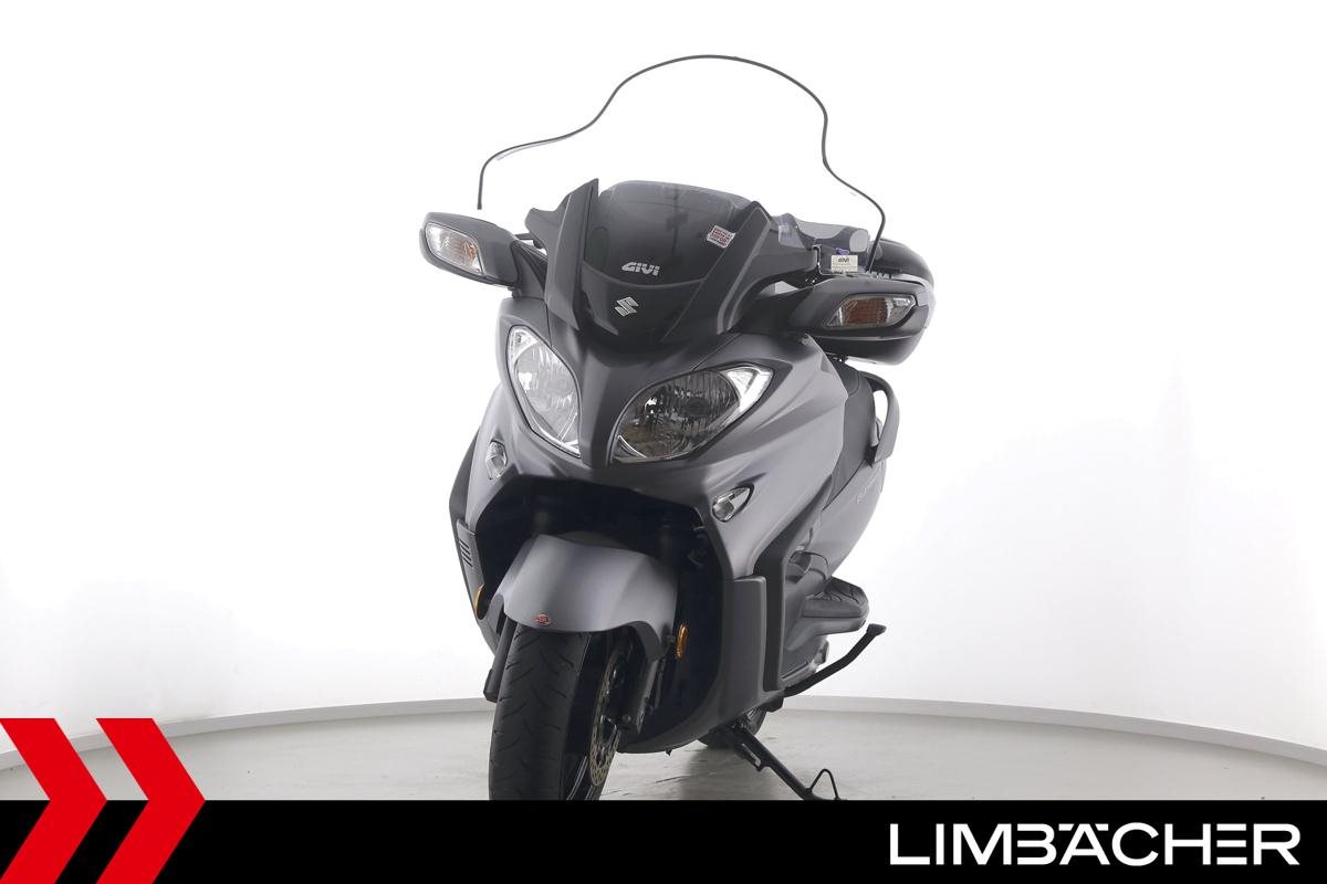 Ein Suzuki AN 650 Burgman Executive aus erster Hand in gepflegtem Zustand u.a. mit grossem Givi-Topcase sowie grossem Givi-Windschild.