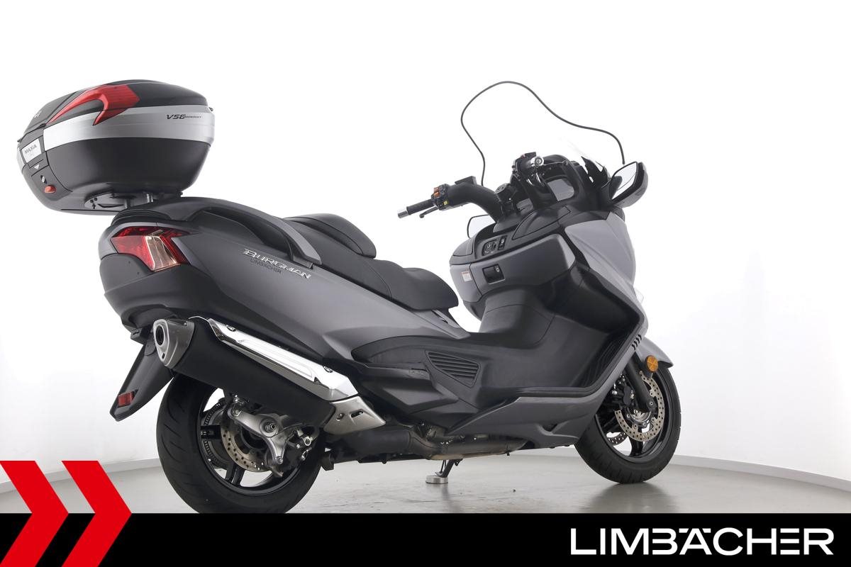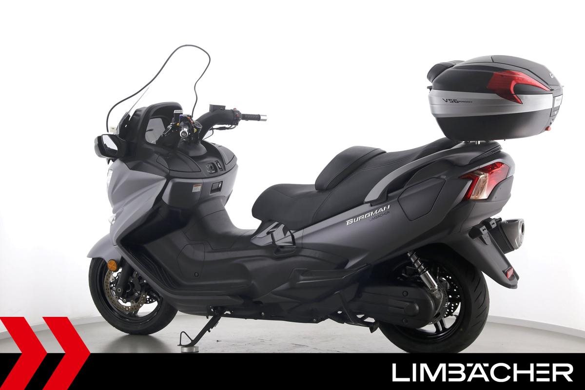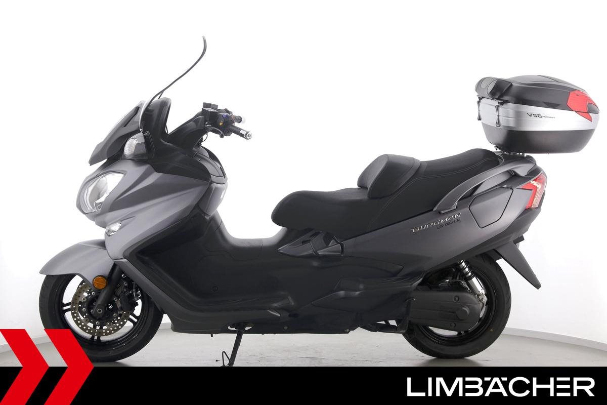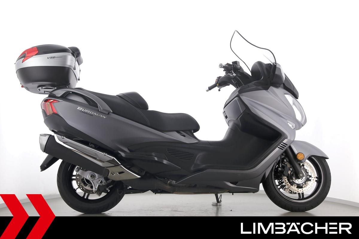 Ein Suzuki AN 650 Burgman Executive aus erster Hand in gepflegtem Zustand u.a. mit grossem Givi-Topcase sowie grossem Givi-Windschild.