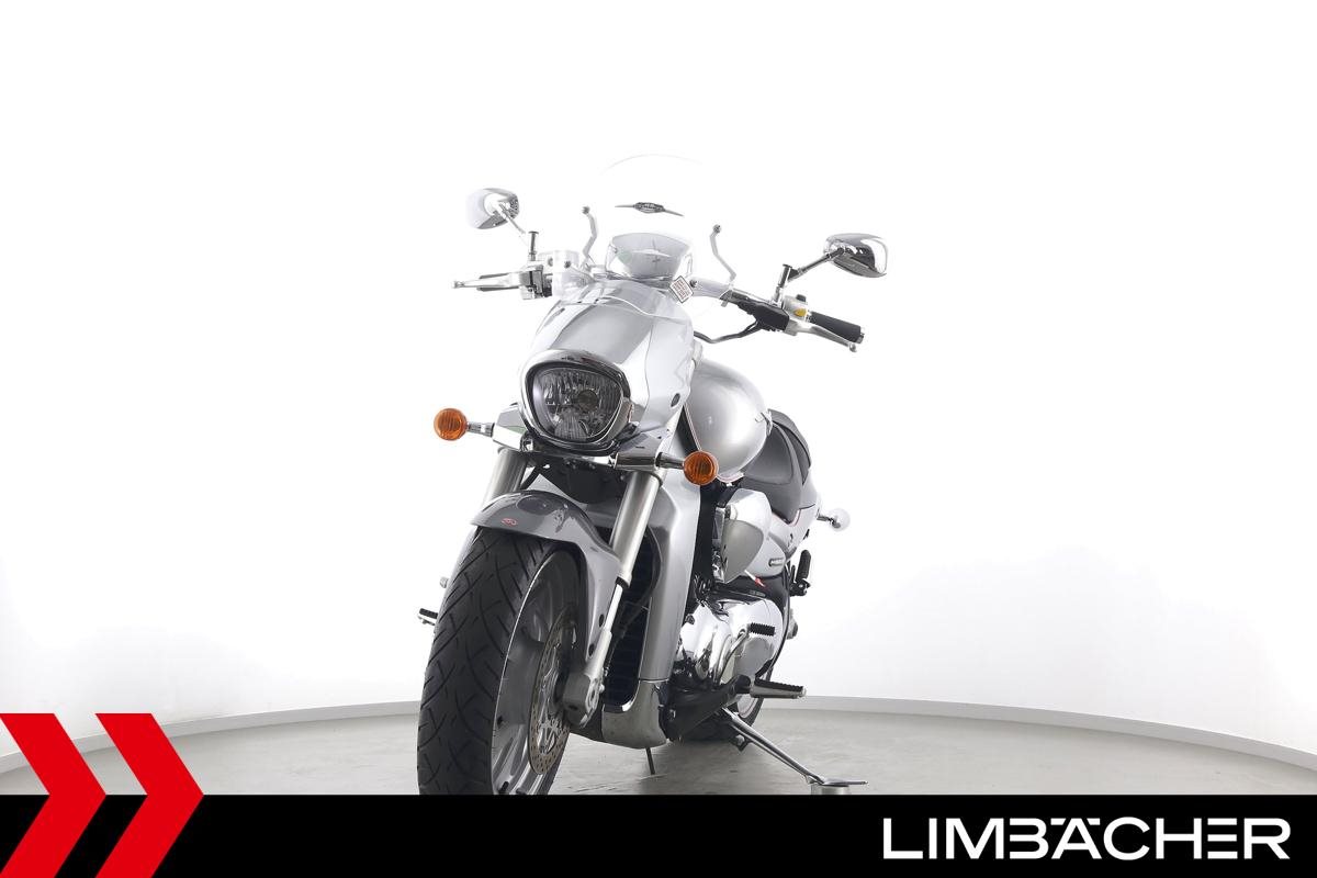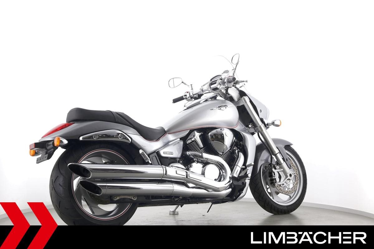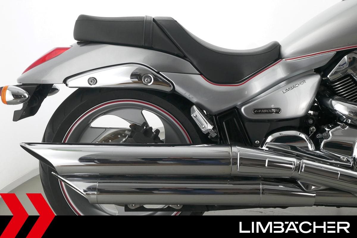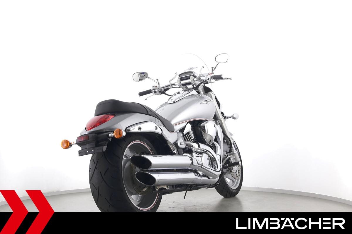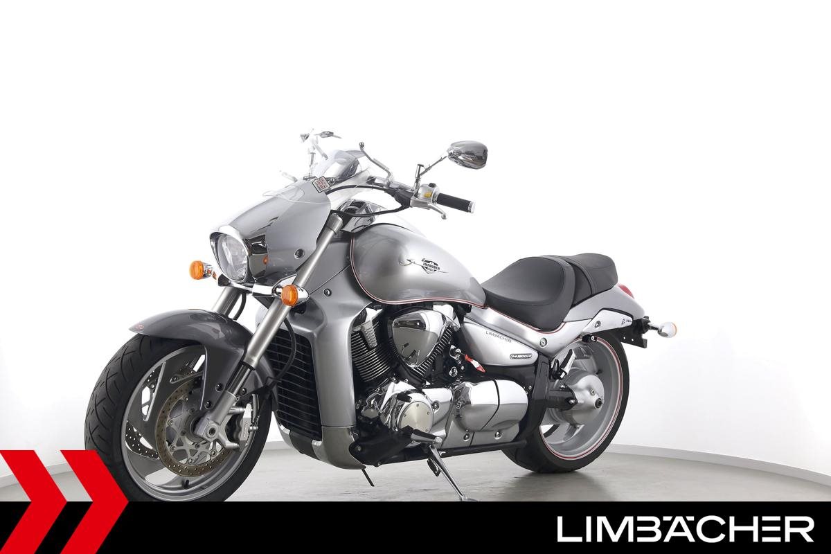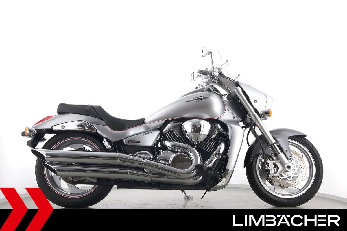 Eine Suzuki VZR M 1800 R Intruder in gebrauchtem Zustand u.a. mit 260er Hinterreifen und Windschild.