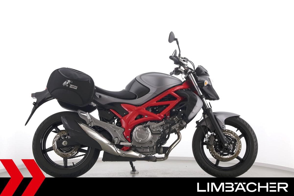 Eine Suzuki SFV 650 Gladius aus erster Hand in gebrauchtem Zustand mit Hepco & Becker-Packtaschensystem.