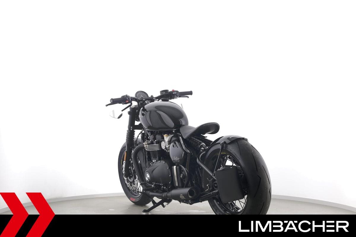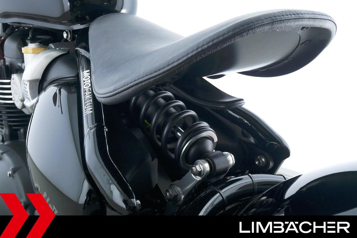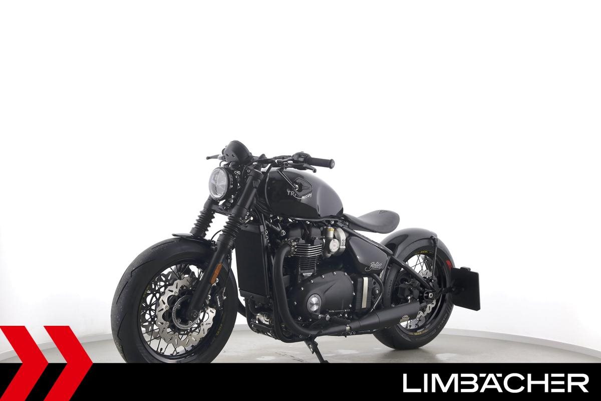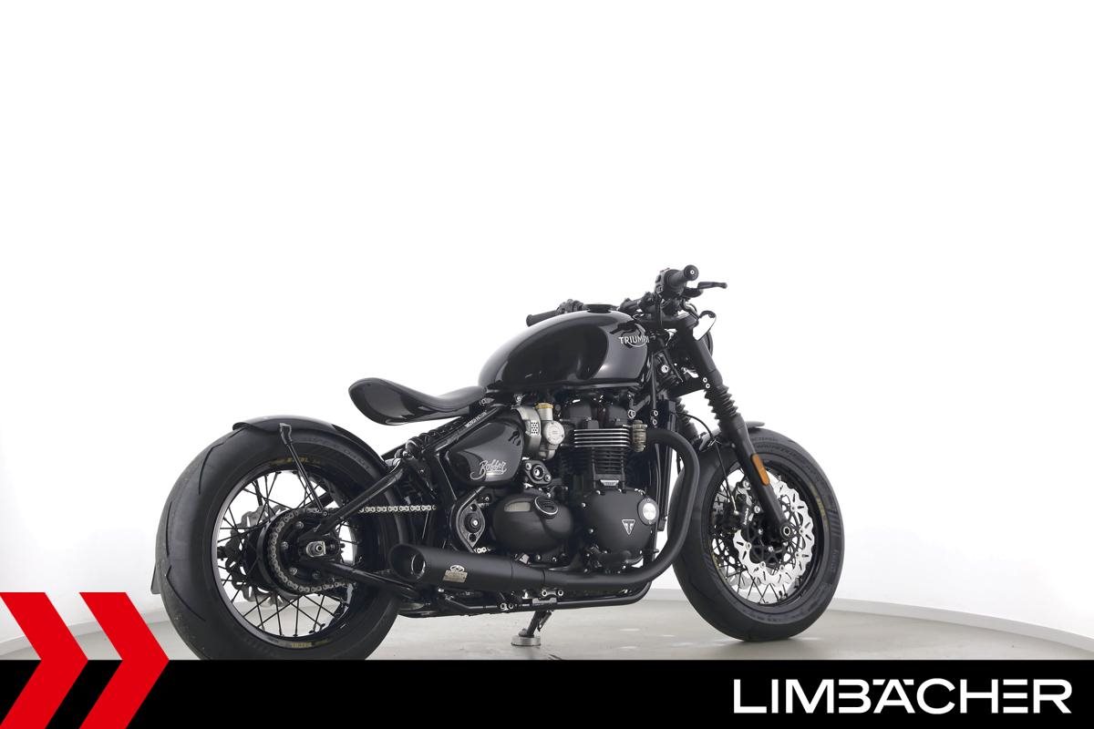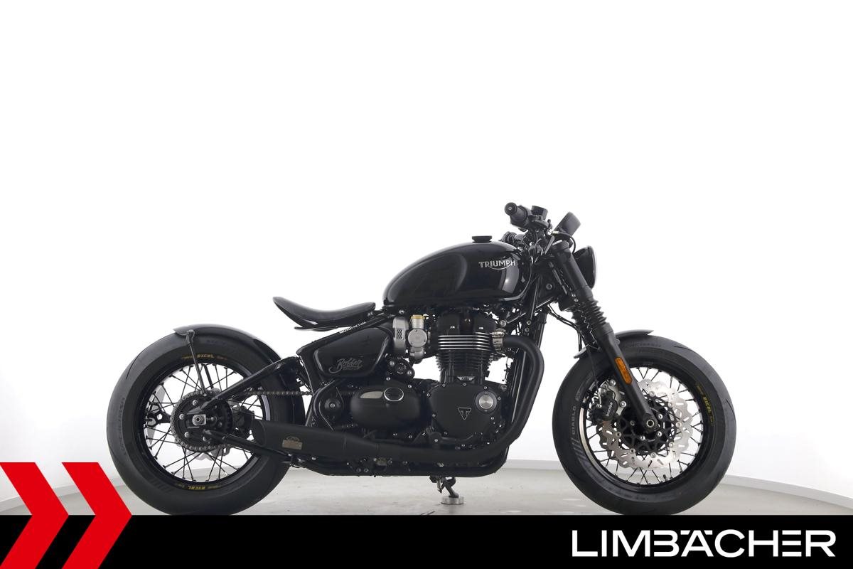 Eine Triumph Bonneville Bobber in Topzustand u.a. mit Jekill&Hyde-Klappenauspuff und Heckumbau Race-Bobber.