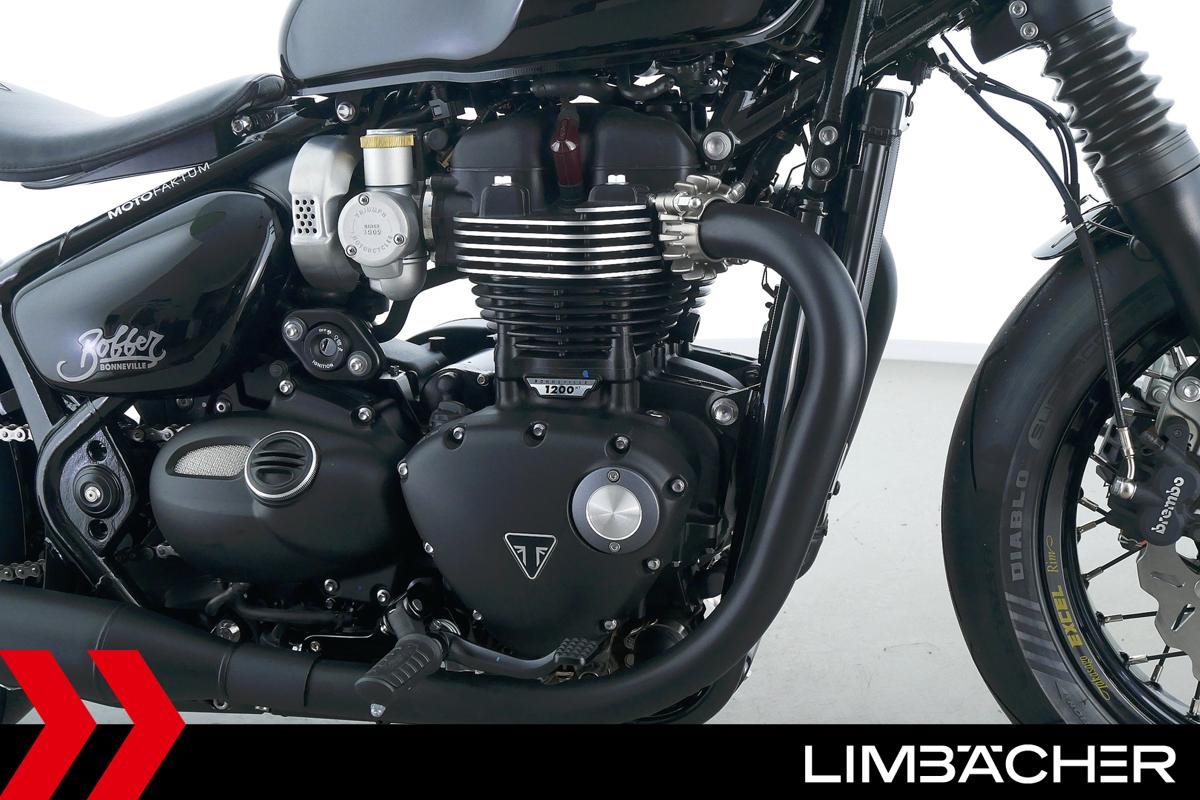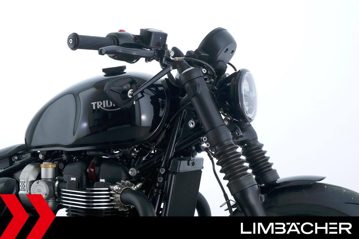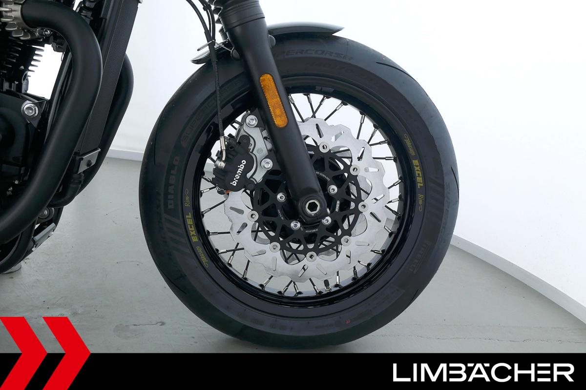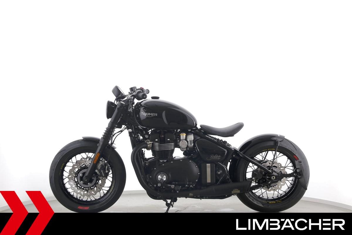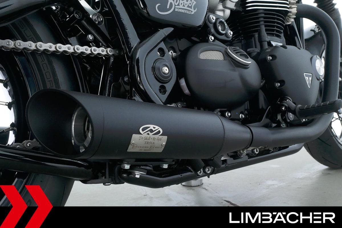 Eine Triumph Bonneville Bobber in Topzustand u.a. mit Jekill&Hyde-Klappenauspuff und Heckumbau Race-Bobber.
