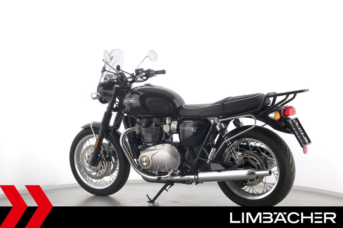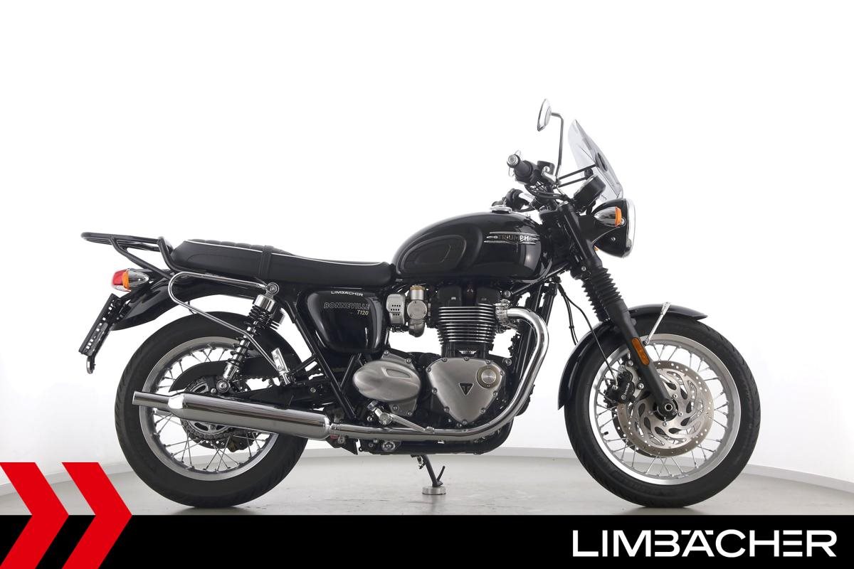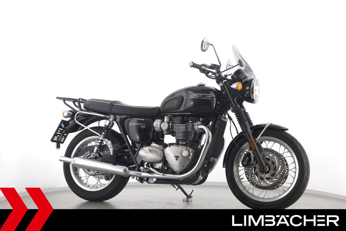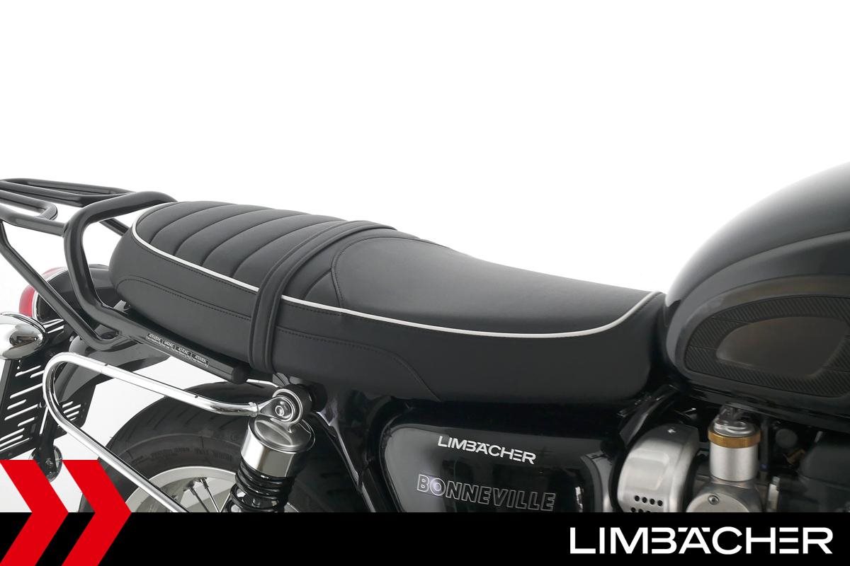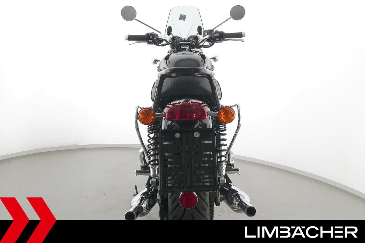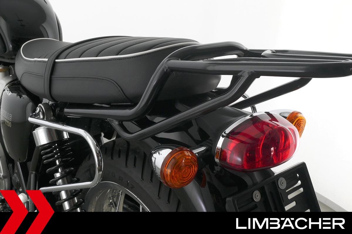 Eine scheckheftgepflegte Triumph Bonneville T120 aus zweiter Hand in sehr gepflegtem Zustand u.a. mit Temporegelung sowie Givi-Gepäckträger.