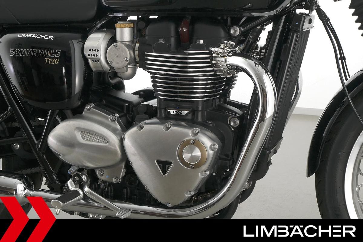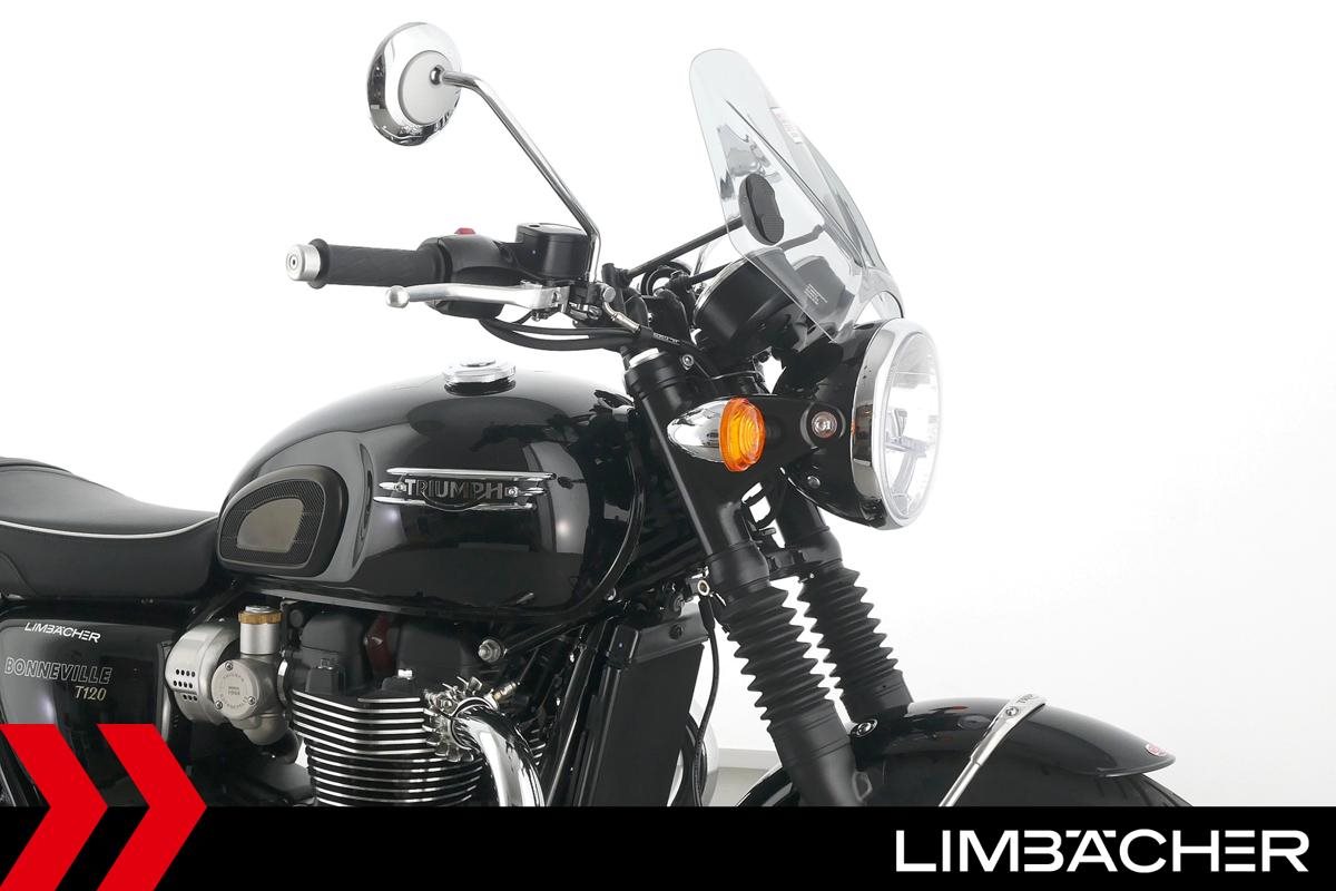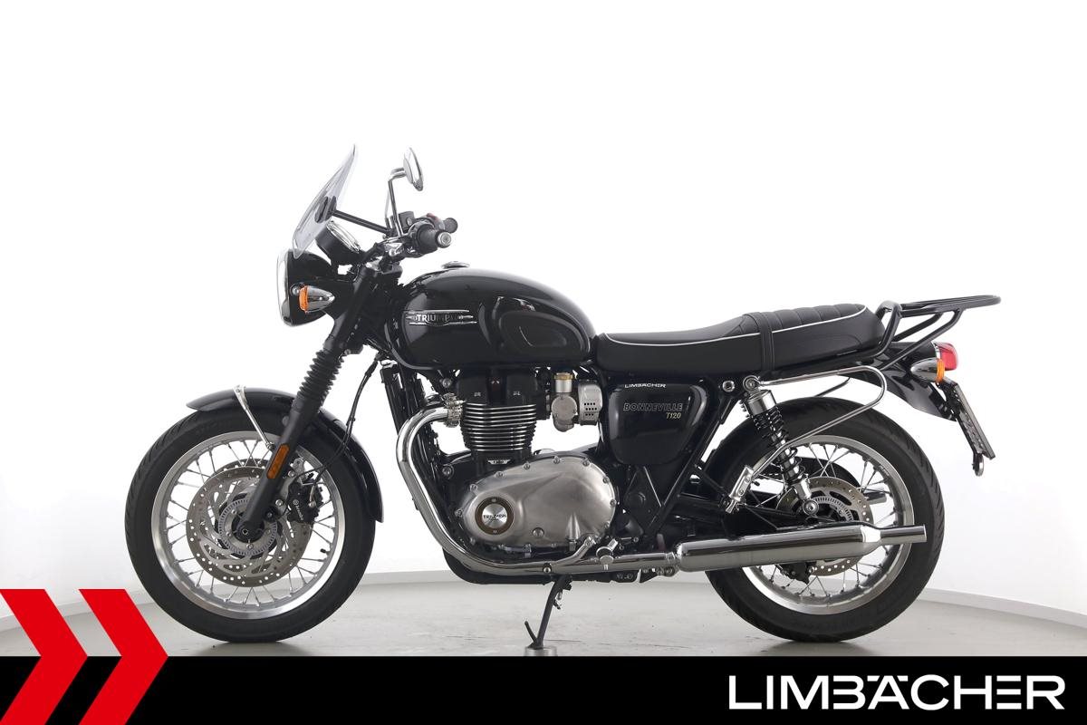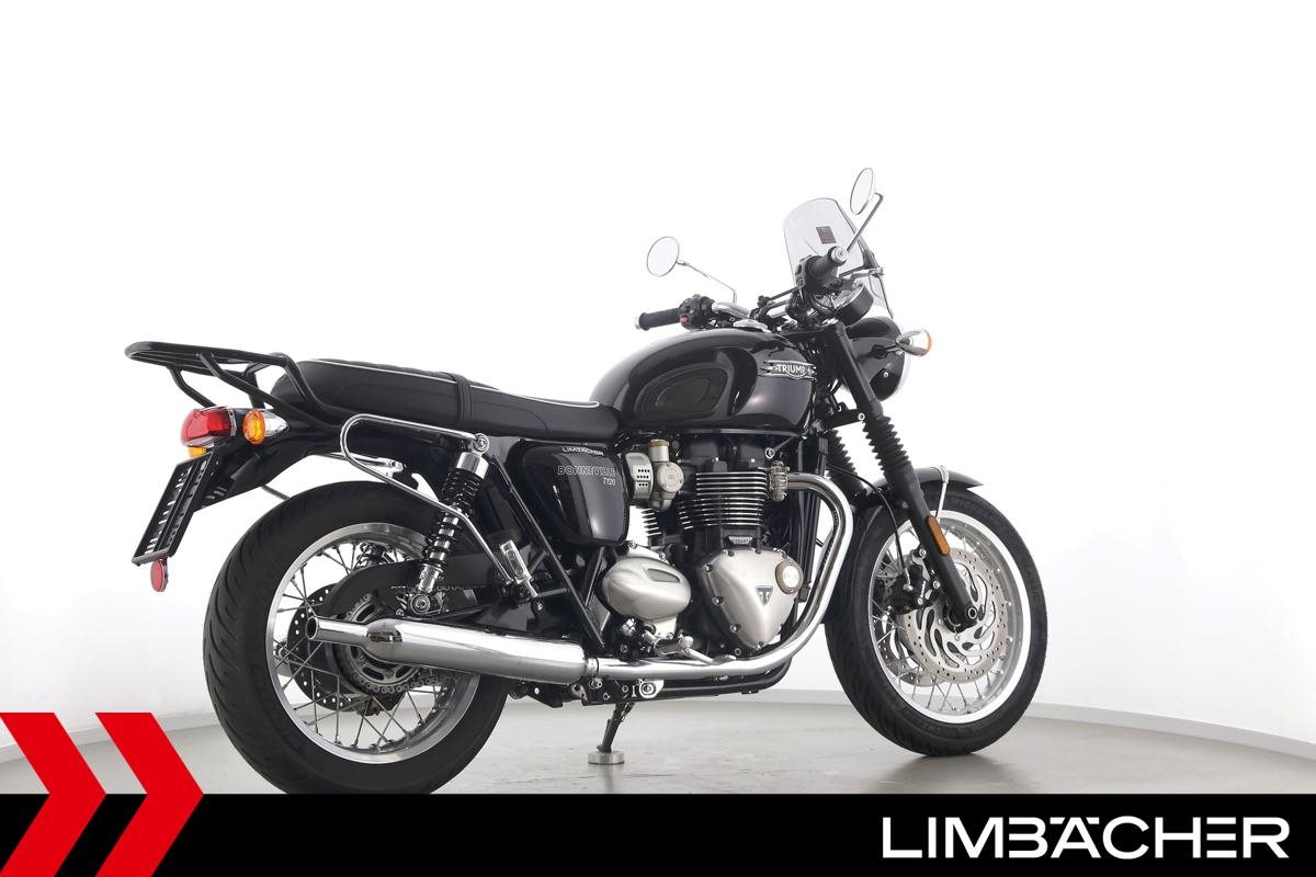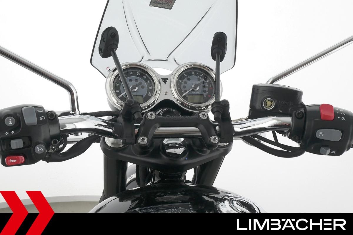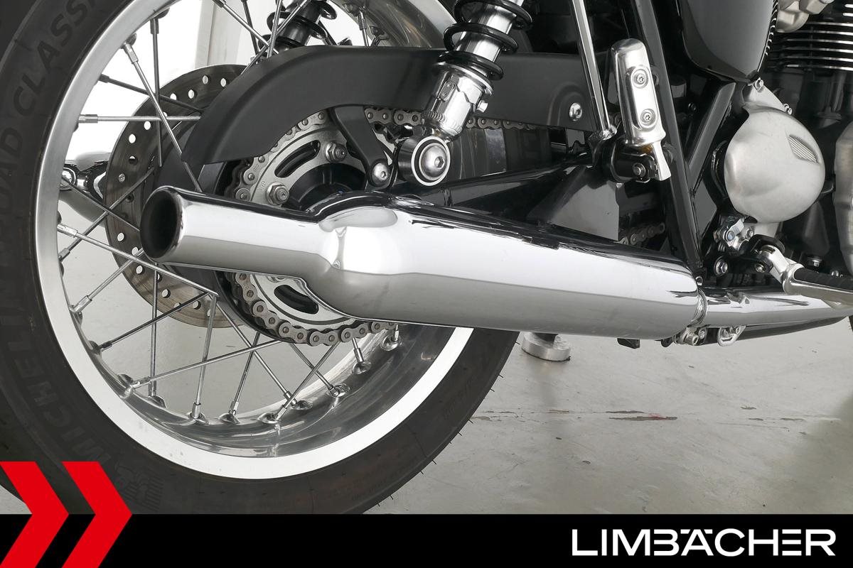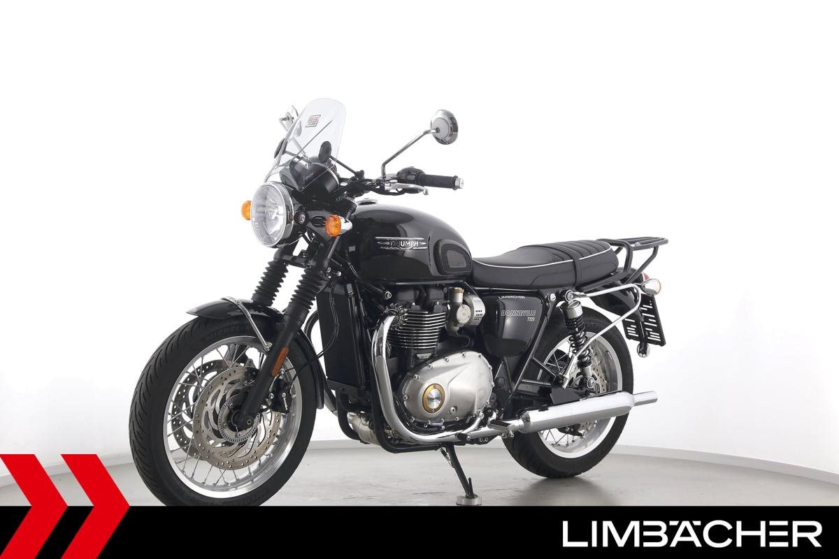 Eine scheckheftgepflegte Triumph Bonneville T120 aus zweiter Hand in sehr gepflegtem Zustand u.a. mit Temporegelung sowie Givi-Gepäckträger.