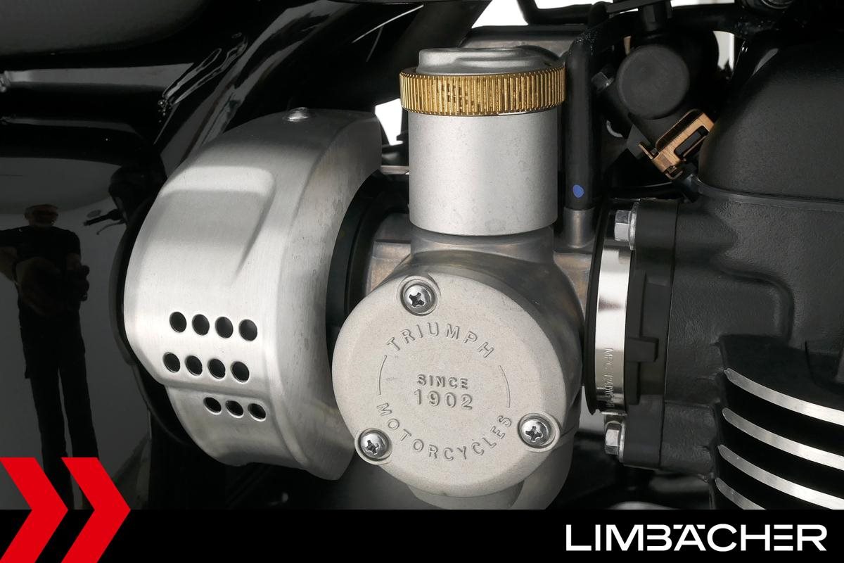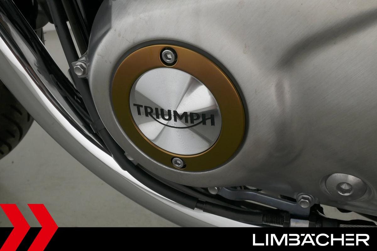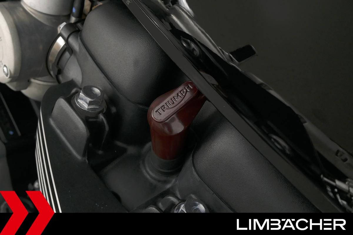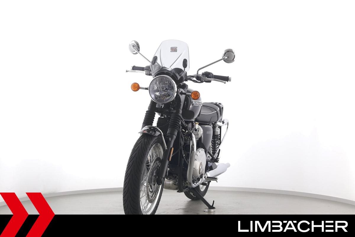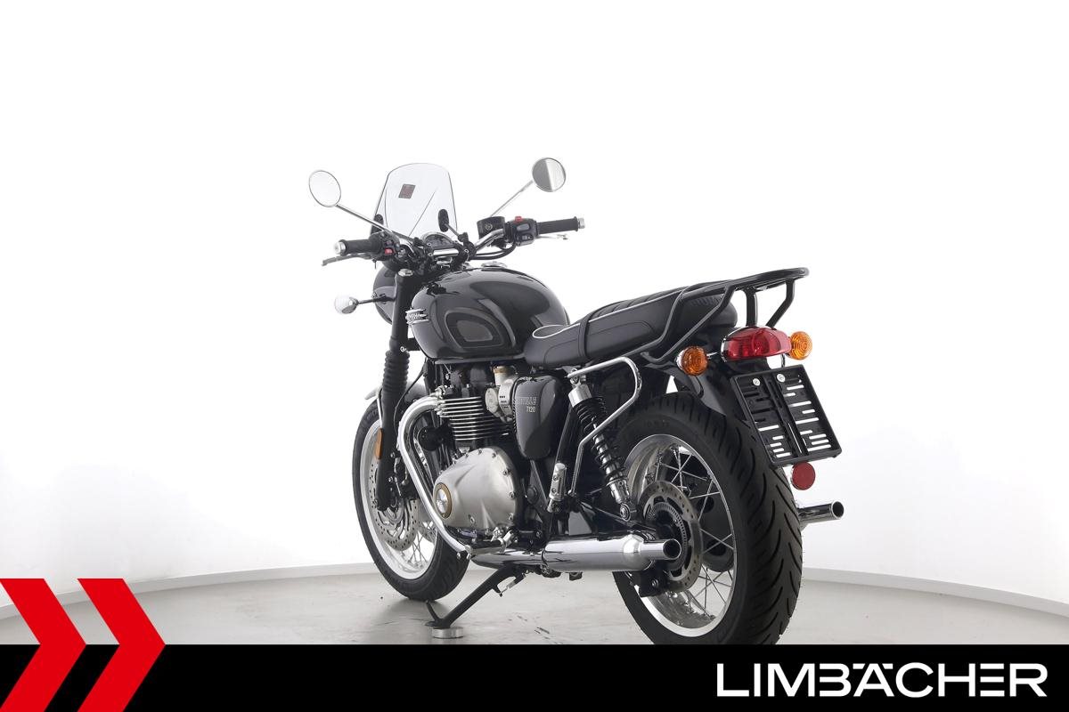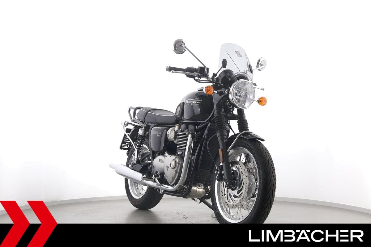 Eine scheckheftgepflegte Triumph Bonneville T120 aus zweiter Hand in sehr gepflegtem Zustand u.a. mit Temporegelung sowie Givi-Gepäckträger.