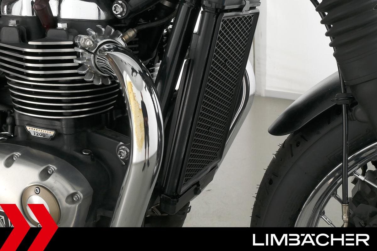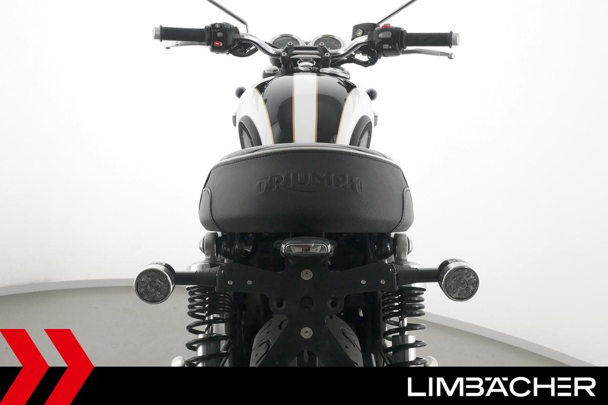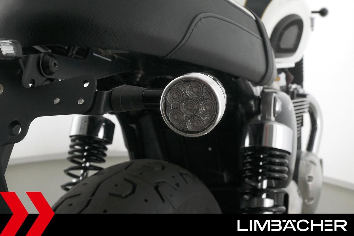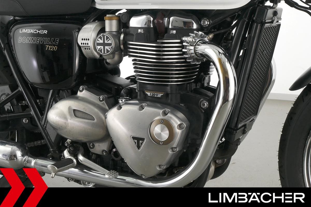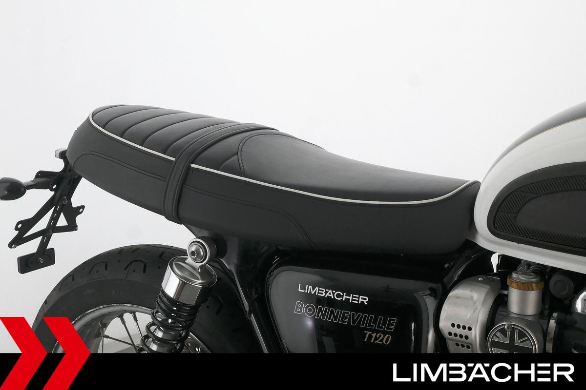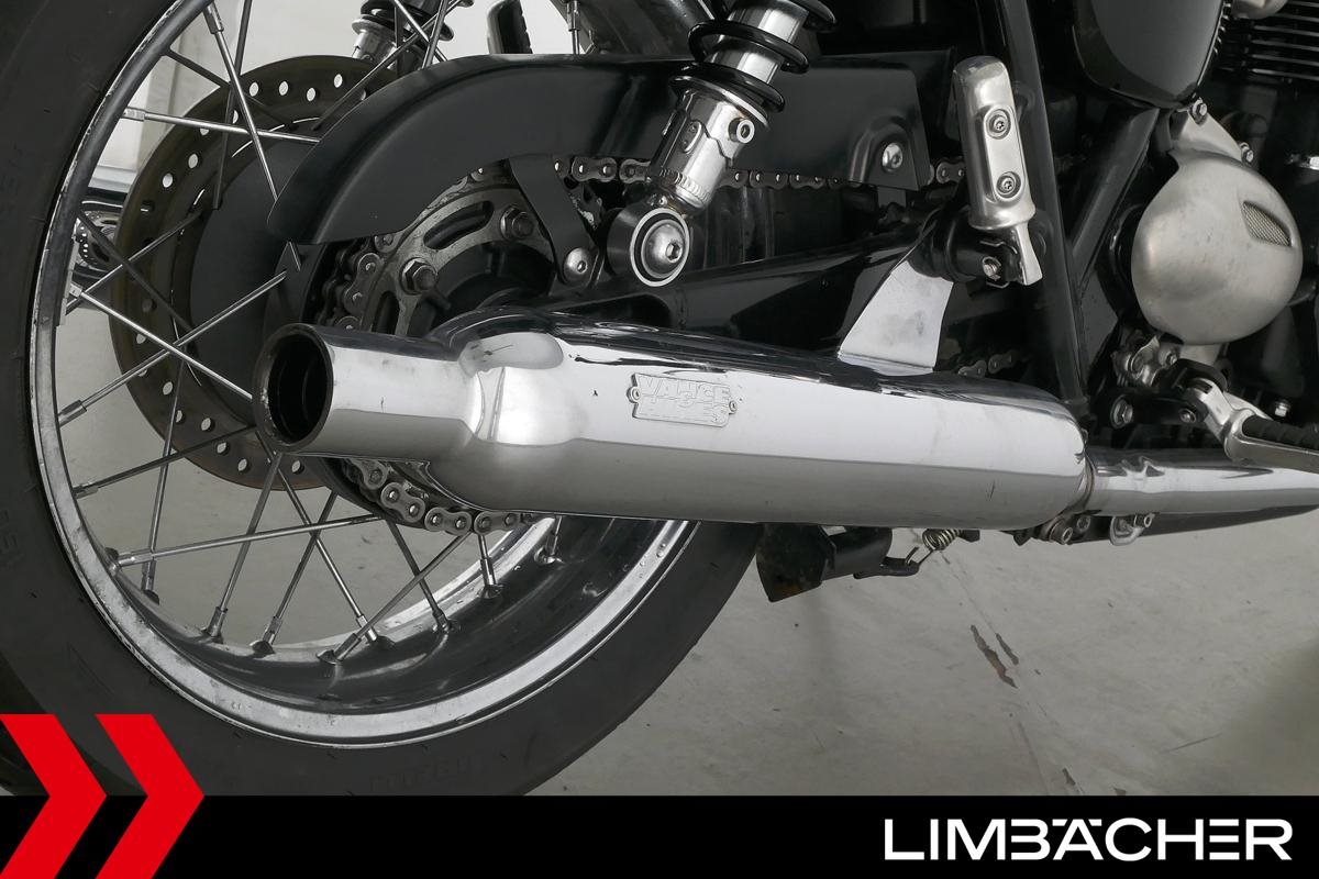 Eine scheckheftgepflegte Triumph Bonneville T120 aus erster Hand in gepflegtem Zustand u.a. mit Vance&Hines-Auspuff sowie kurzem Kennzeichenhalter.