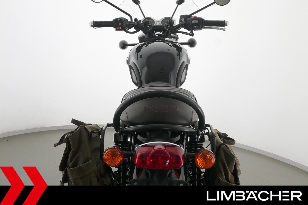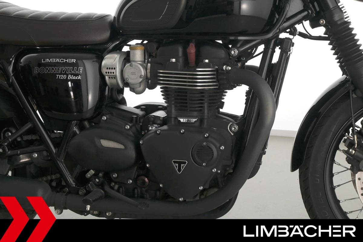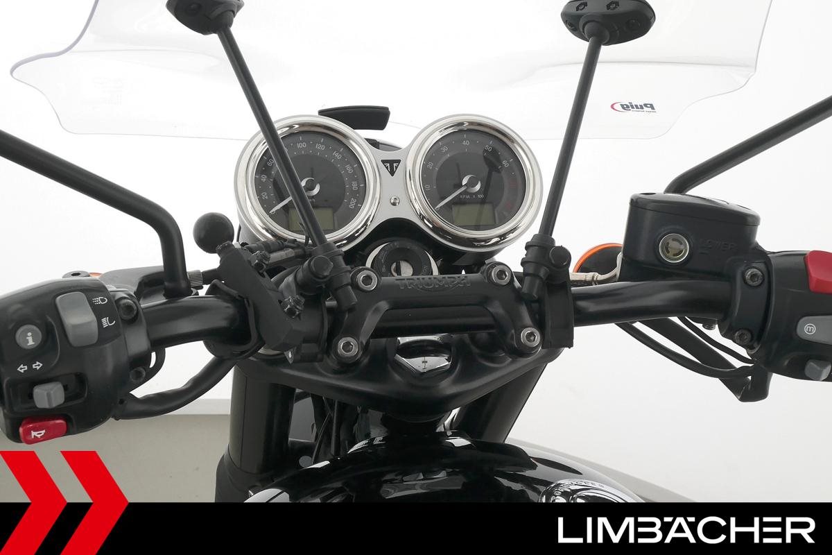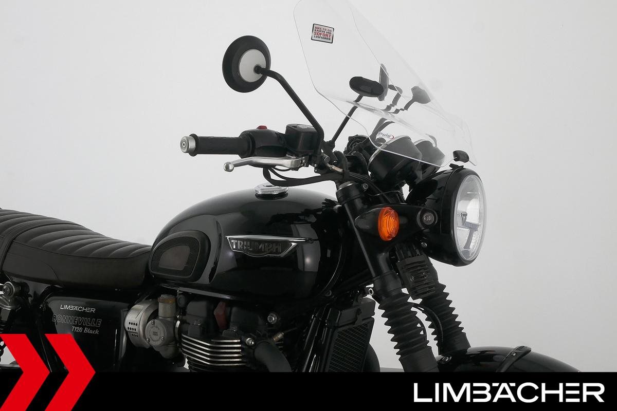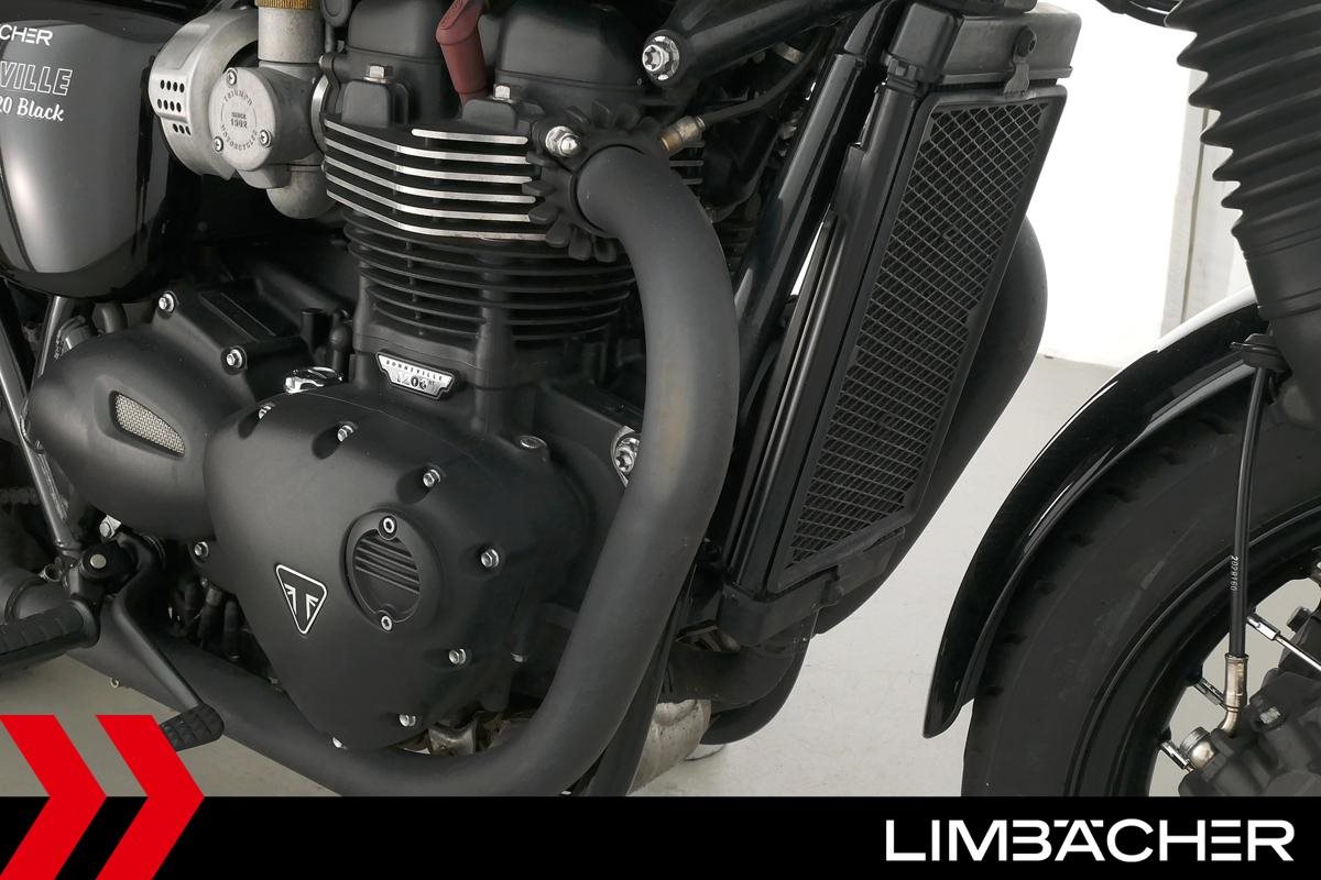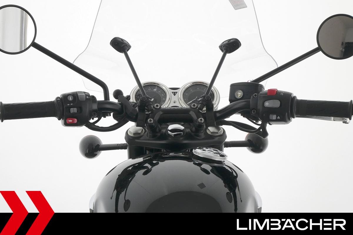 Eine scheckheftgepflegte Triumph Bonneville T120 Black aus erster Hand in gepflegtem Zustand u.a. mit Puig-Touring-Windschild sowie Griffheizung.