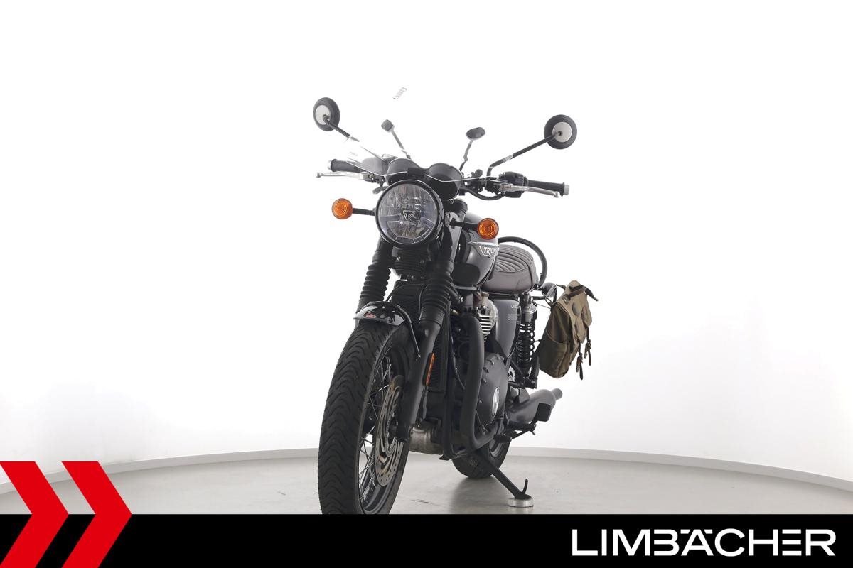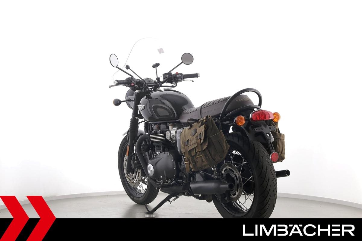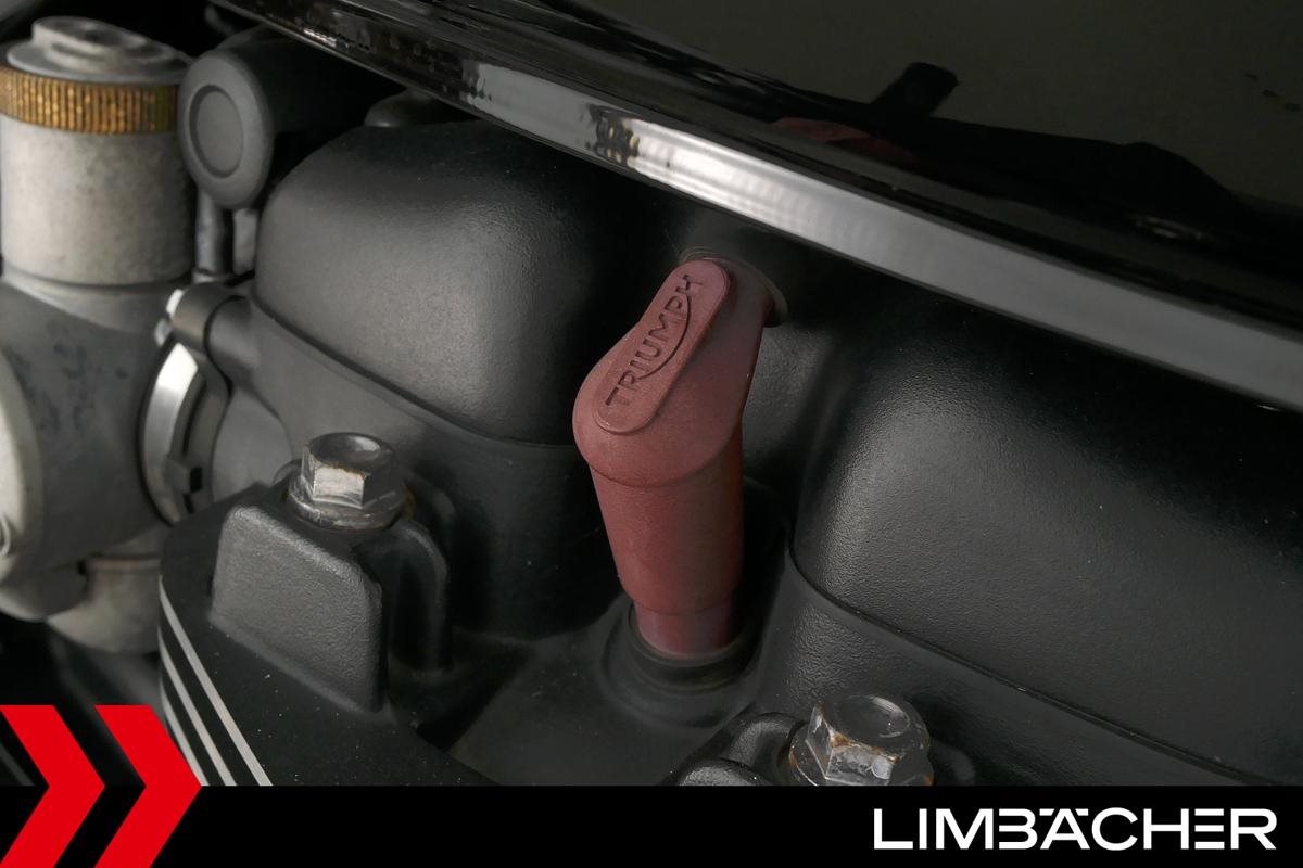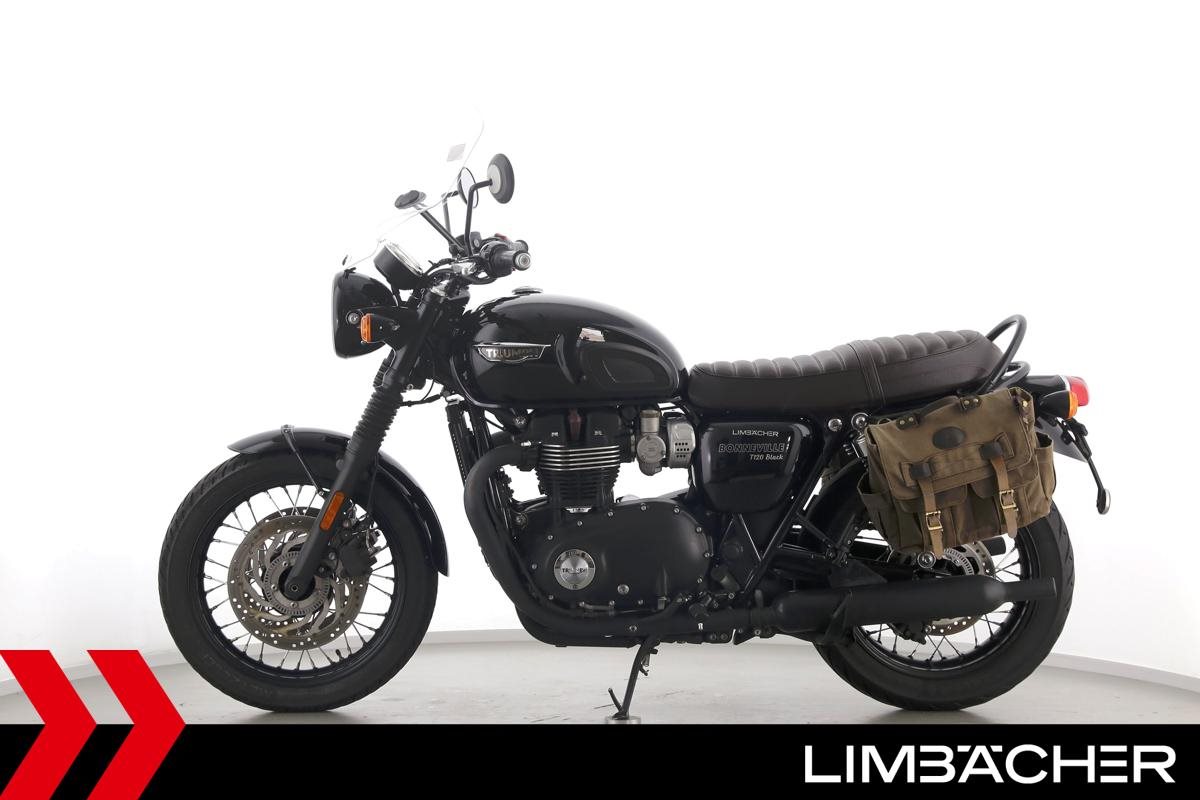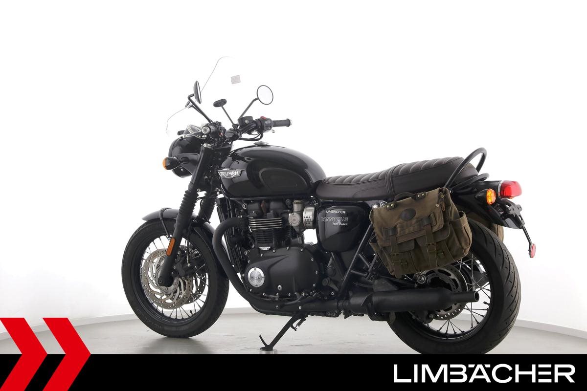 Eine scheckheftgepflegte Triumph Bonneville T120 Black aus erster Hand in gepflegtem Zustand u.a. mit Puig-Touring-Windschild sowie Griffheizung.