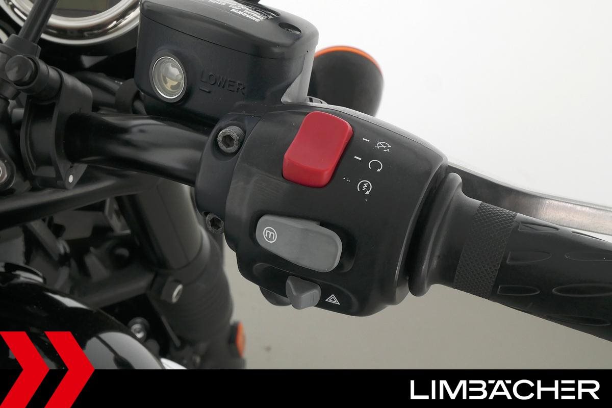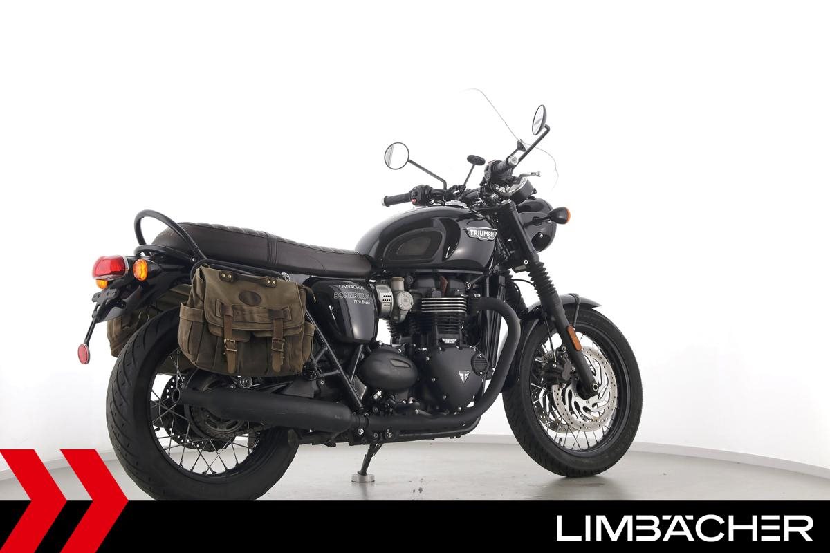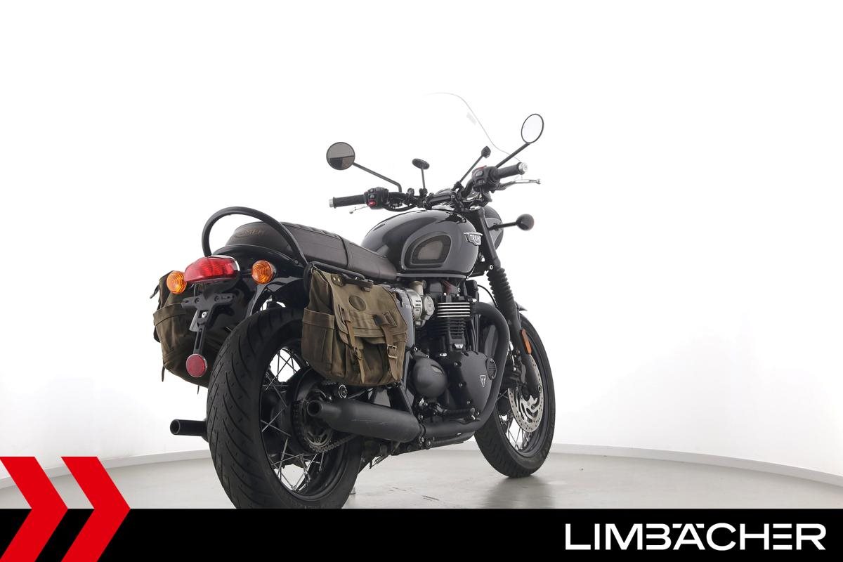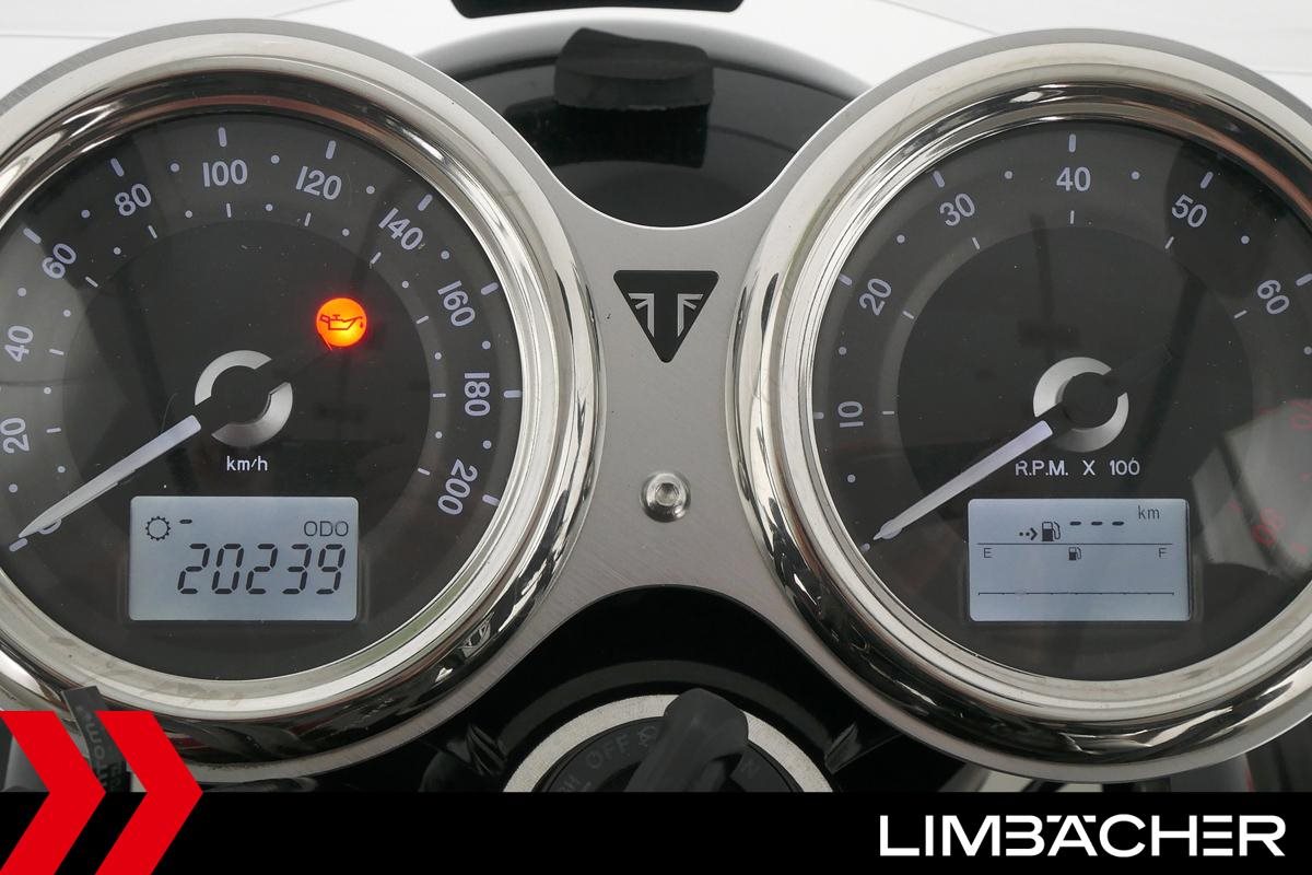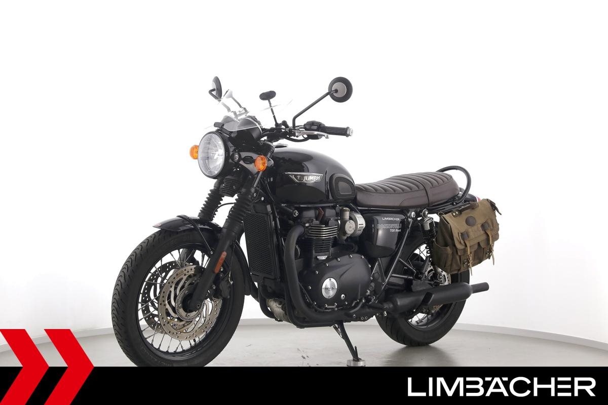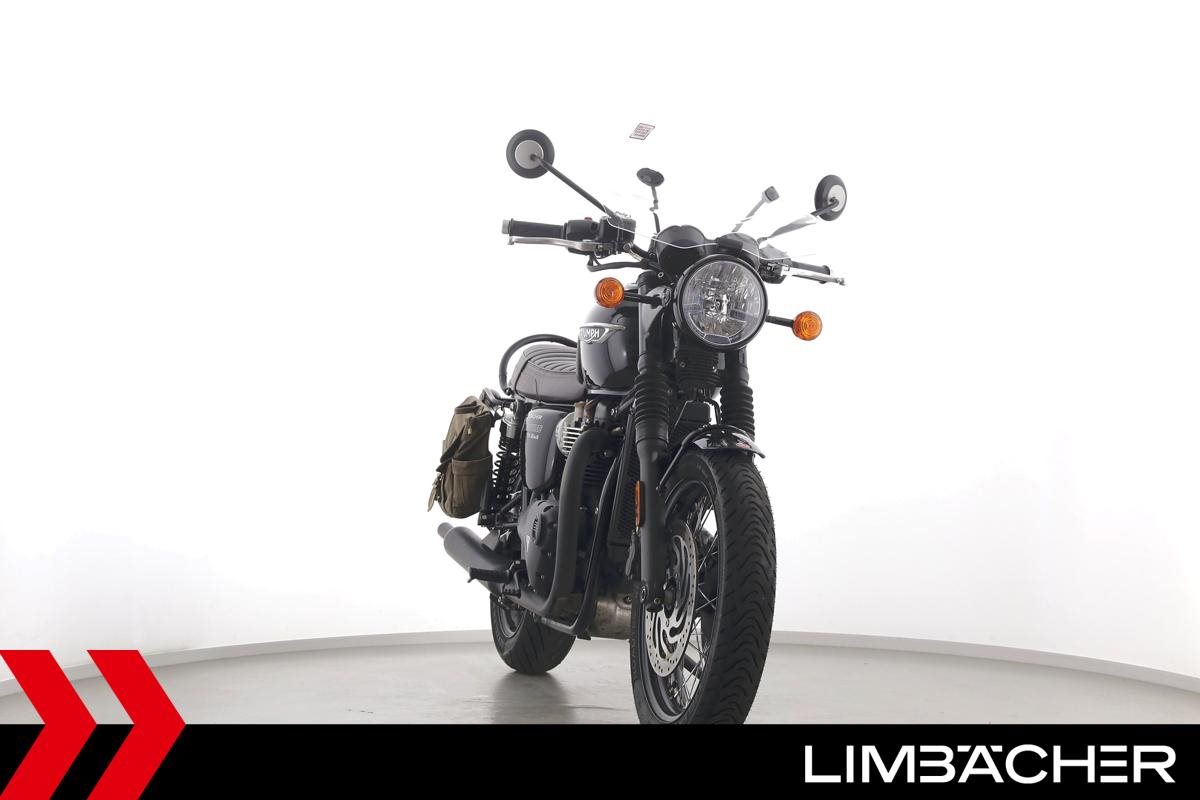 Eine scheckheftgepflegte Triumph Bonneville T120 Black aus erster Hand in gepflegtem Zustand u.a. mit Puig-Touring-Windschild sowie Griffheizung.
