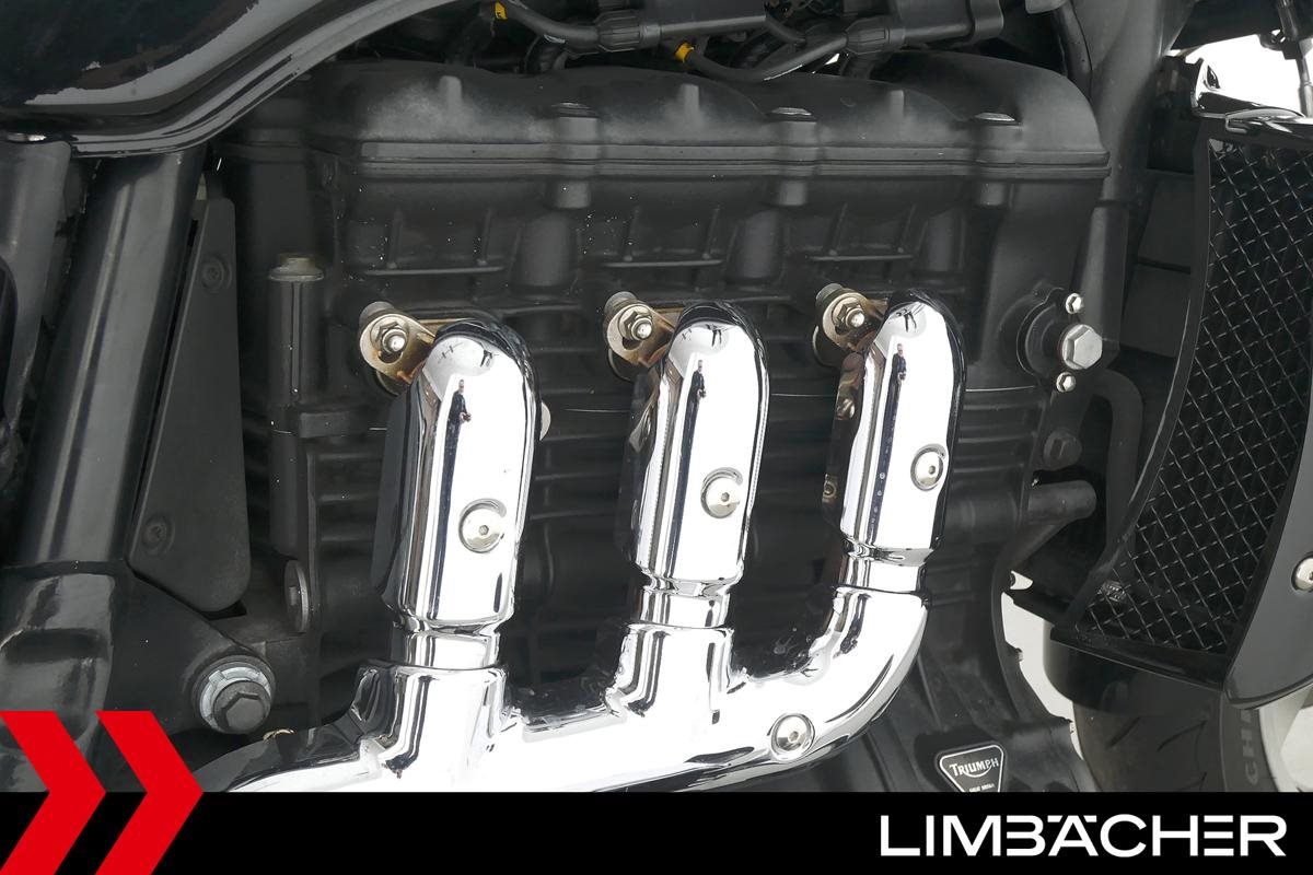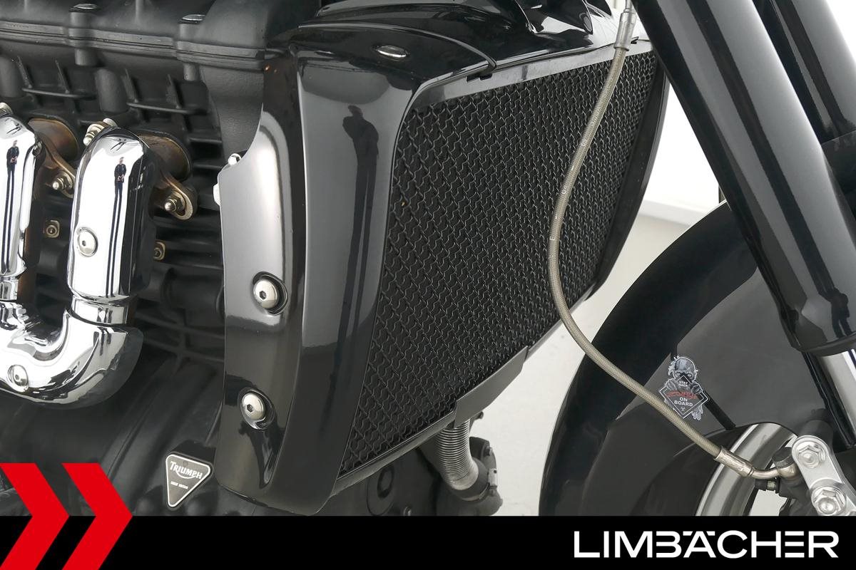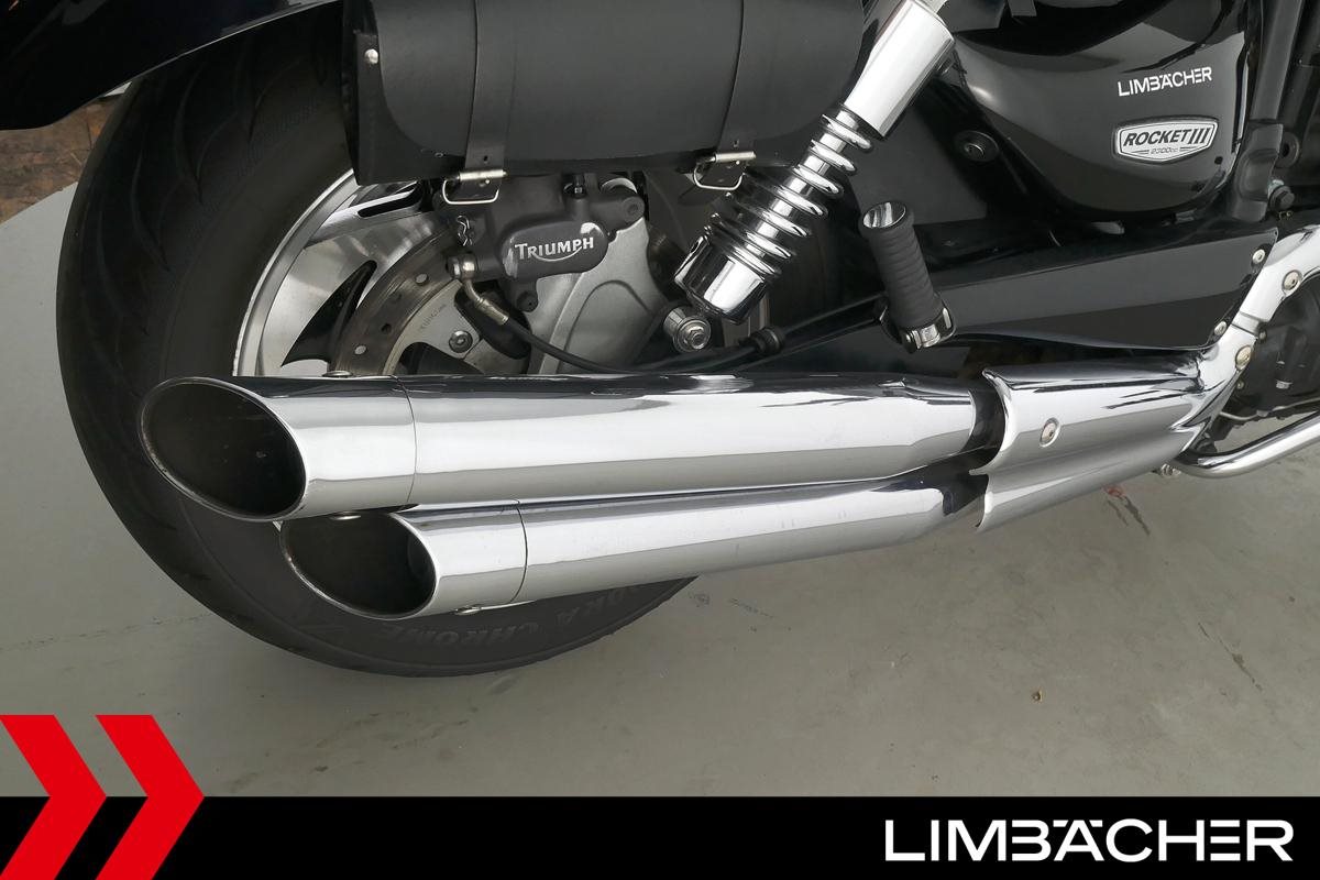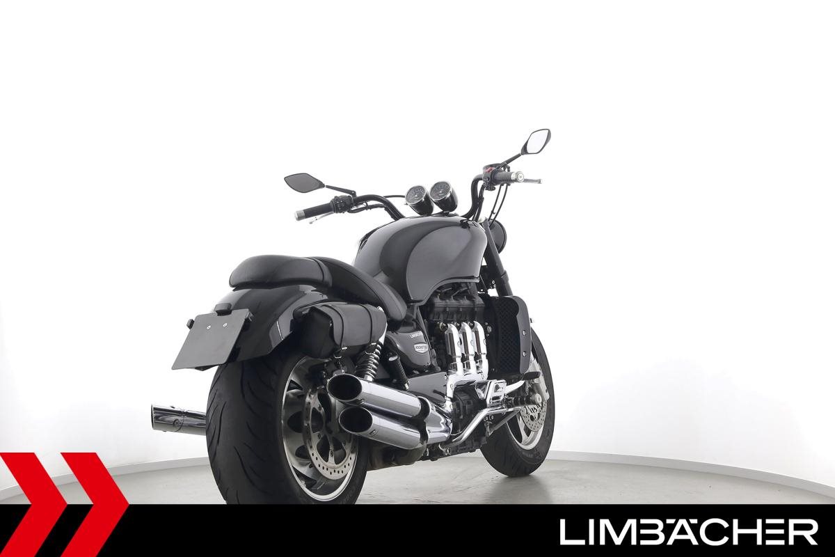 Eine Triumph Rocket III in gepflegtem Zustand u.a. mit kurzem Kennzeichenhalter sowie Highsider-Spiegel.