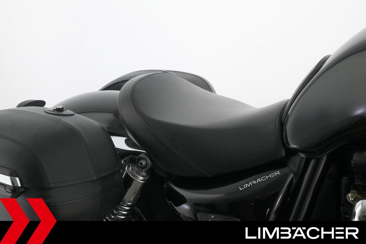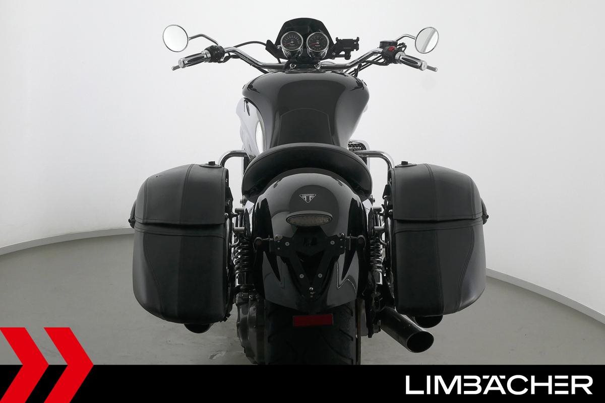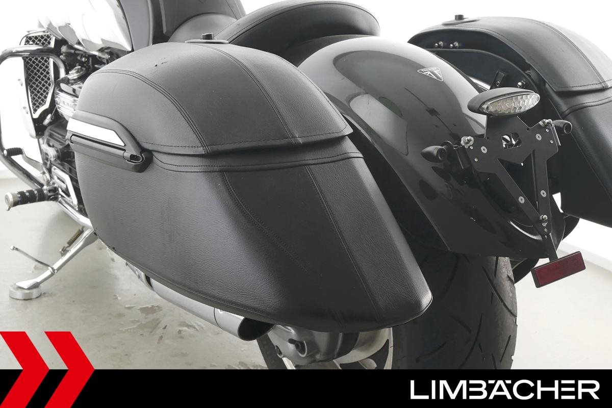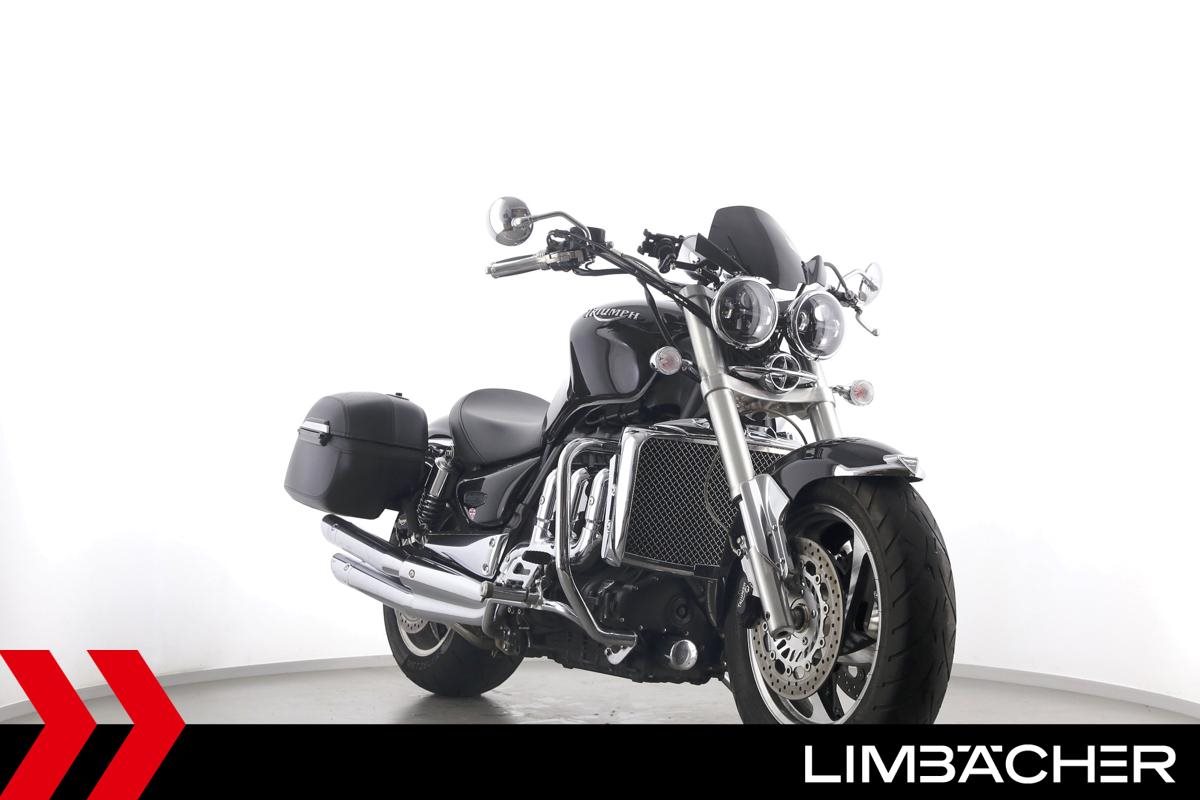 Eine Triumph Rocket III in gepflegtem Zustand u.a. mit Sport-Auspuff sowie Hepco & Becker-Lederkoffer.