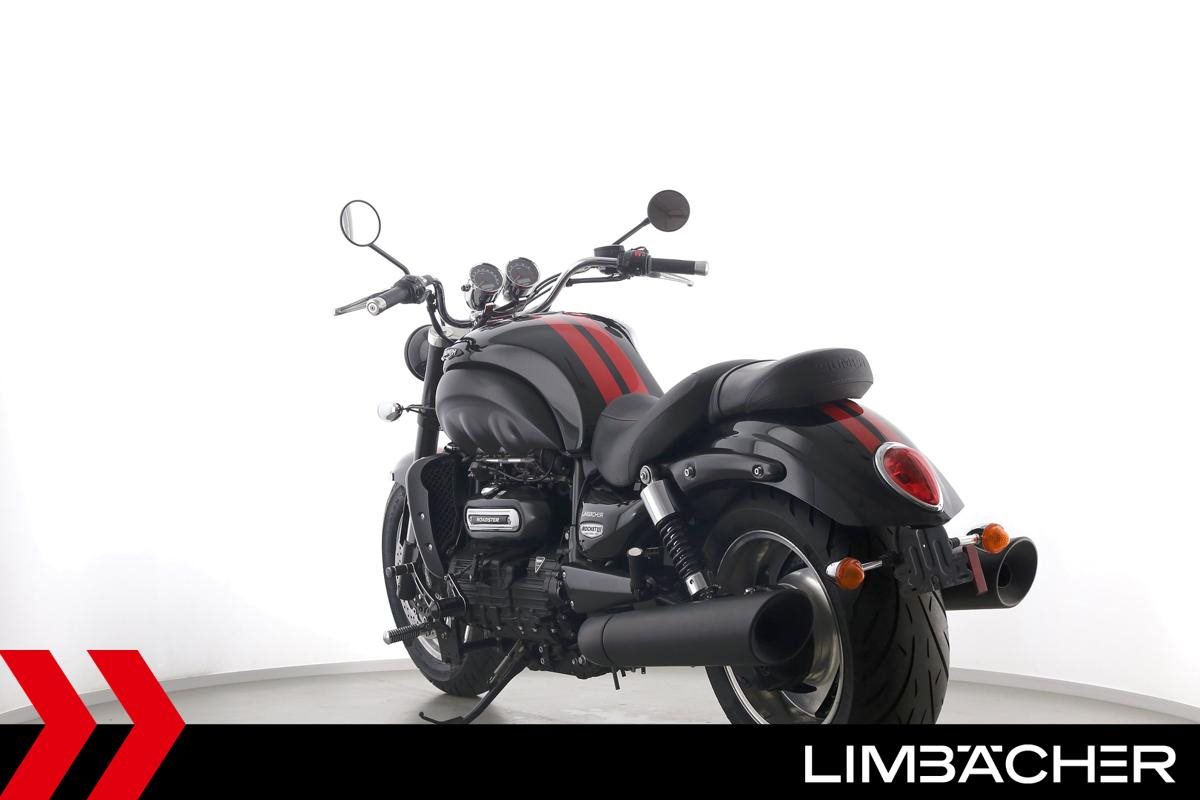 Eine Triumph Rocket III Roadster in gepflegtem Zustand u.a. mit Lottermann-Fussrastenanlage sowie Komfort-Sitzen.