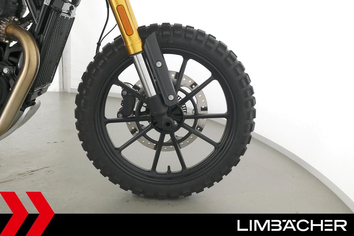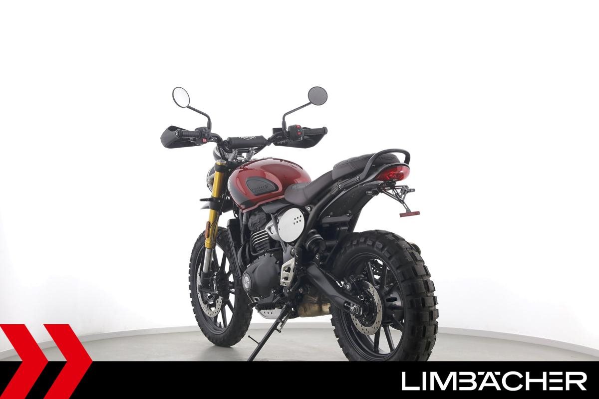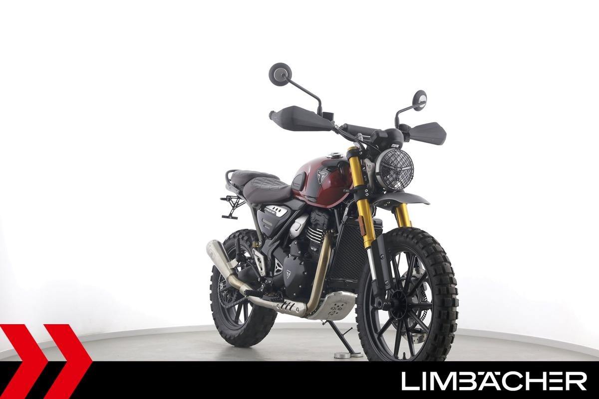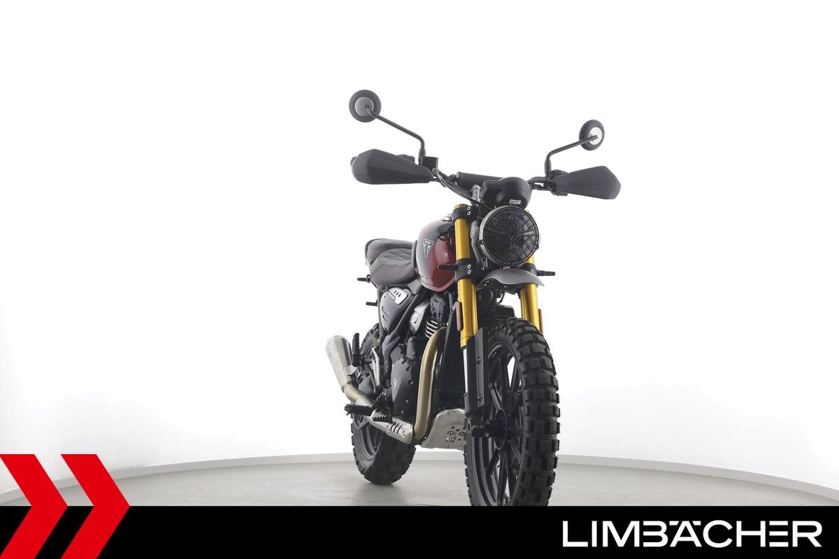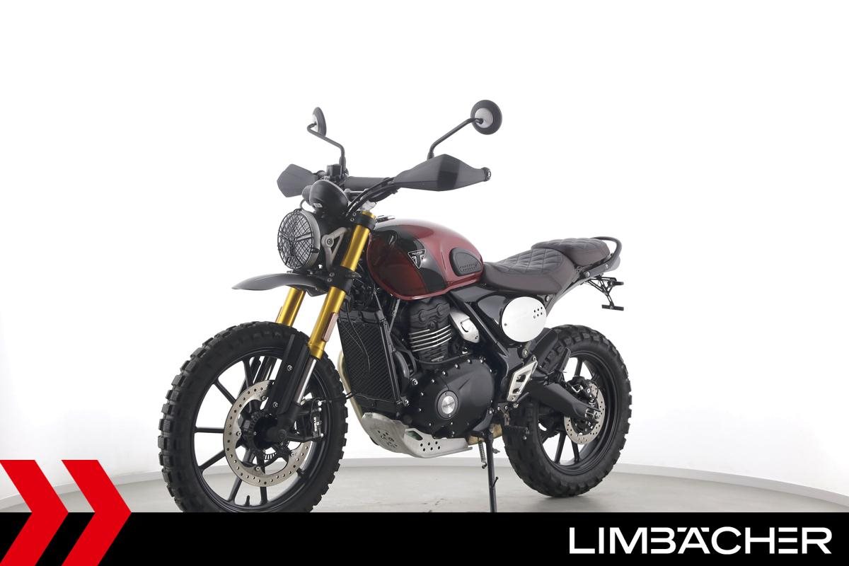 Eine scheckheftgepflegte Triumph Scrambler 400 X aus erster Hand in Topzustand u.a. mit Arrow-Endschalldämpfer sowie kurzem Kennzeichenhalter.