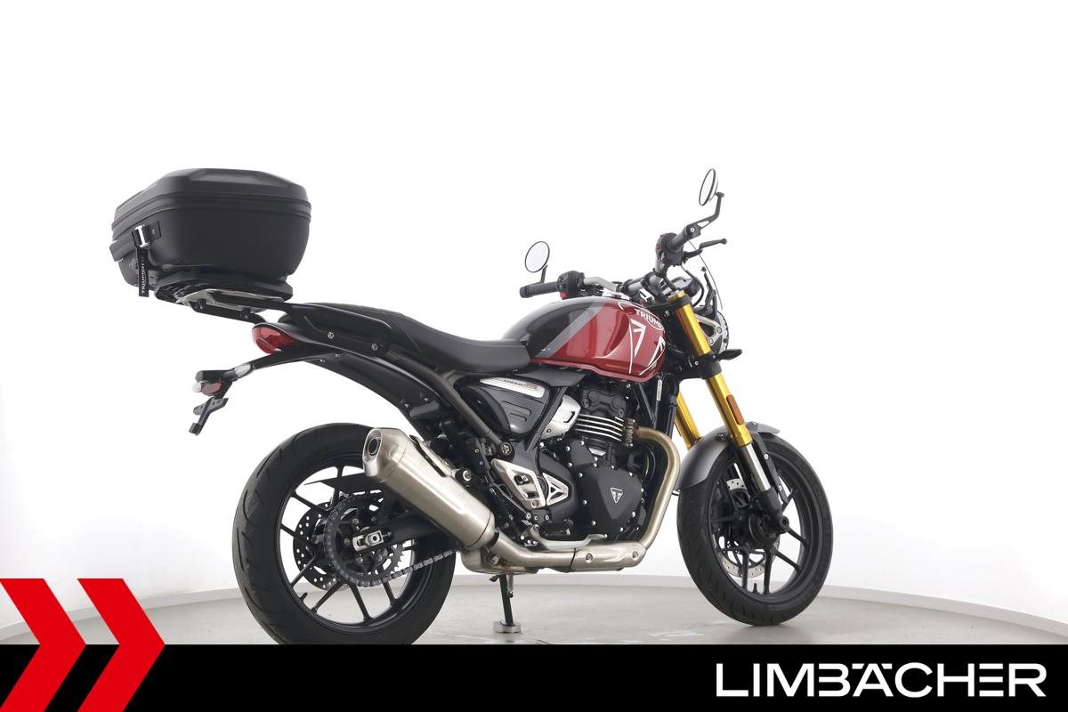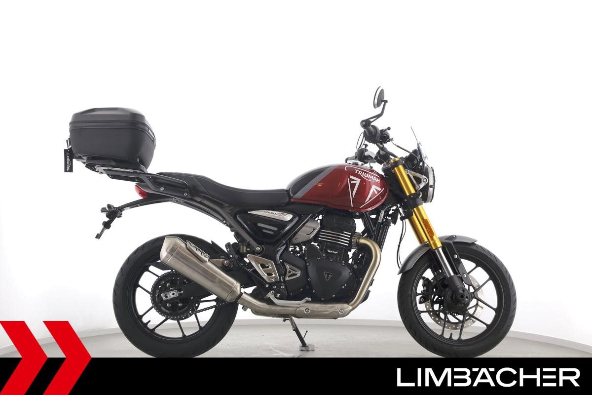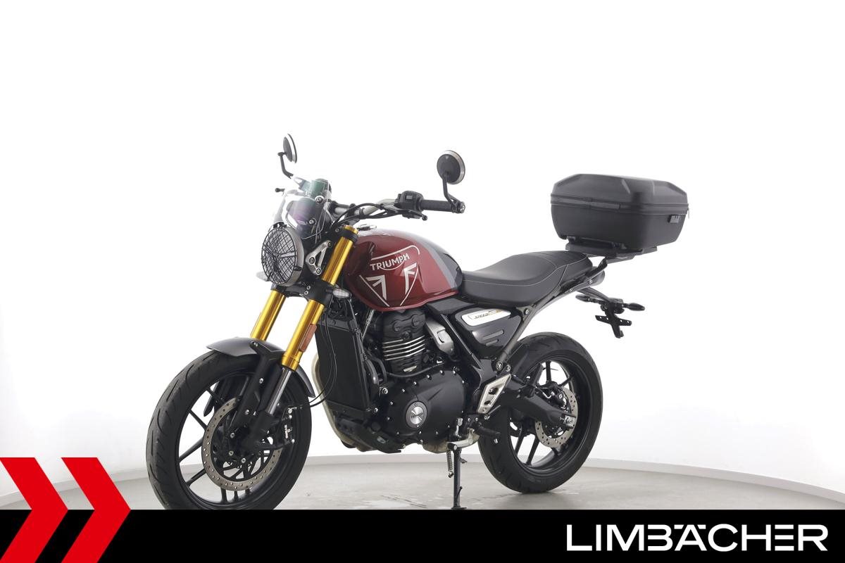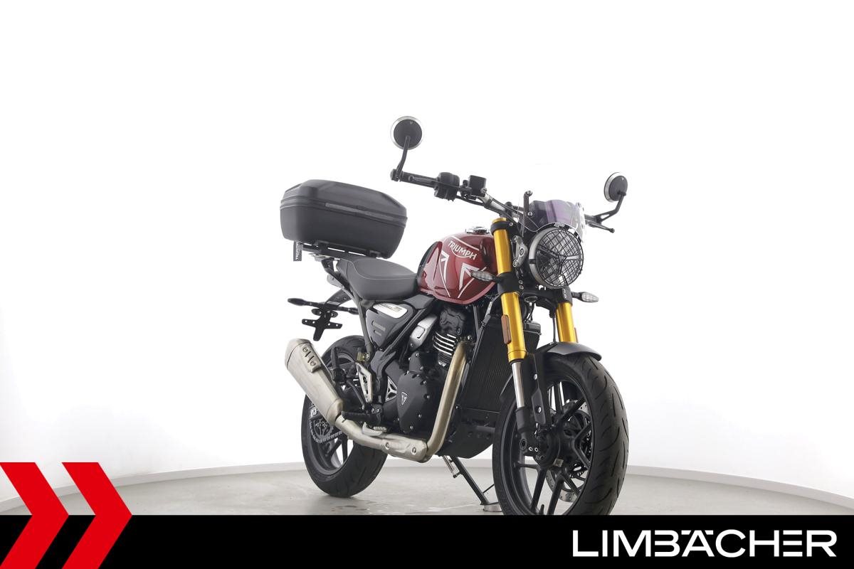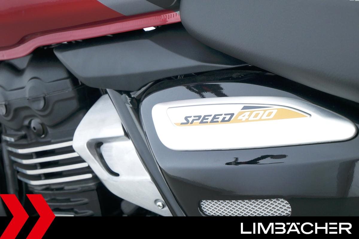 Eine Triumph Speed 400 aus erster Hand als Neufahrzeug u.a. mit Windschild und Topcase.